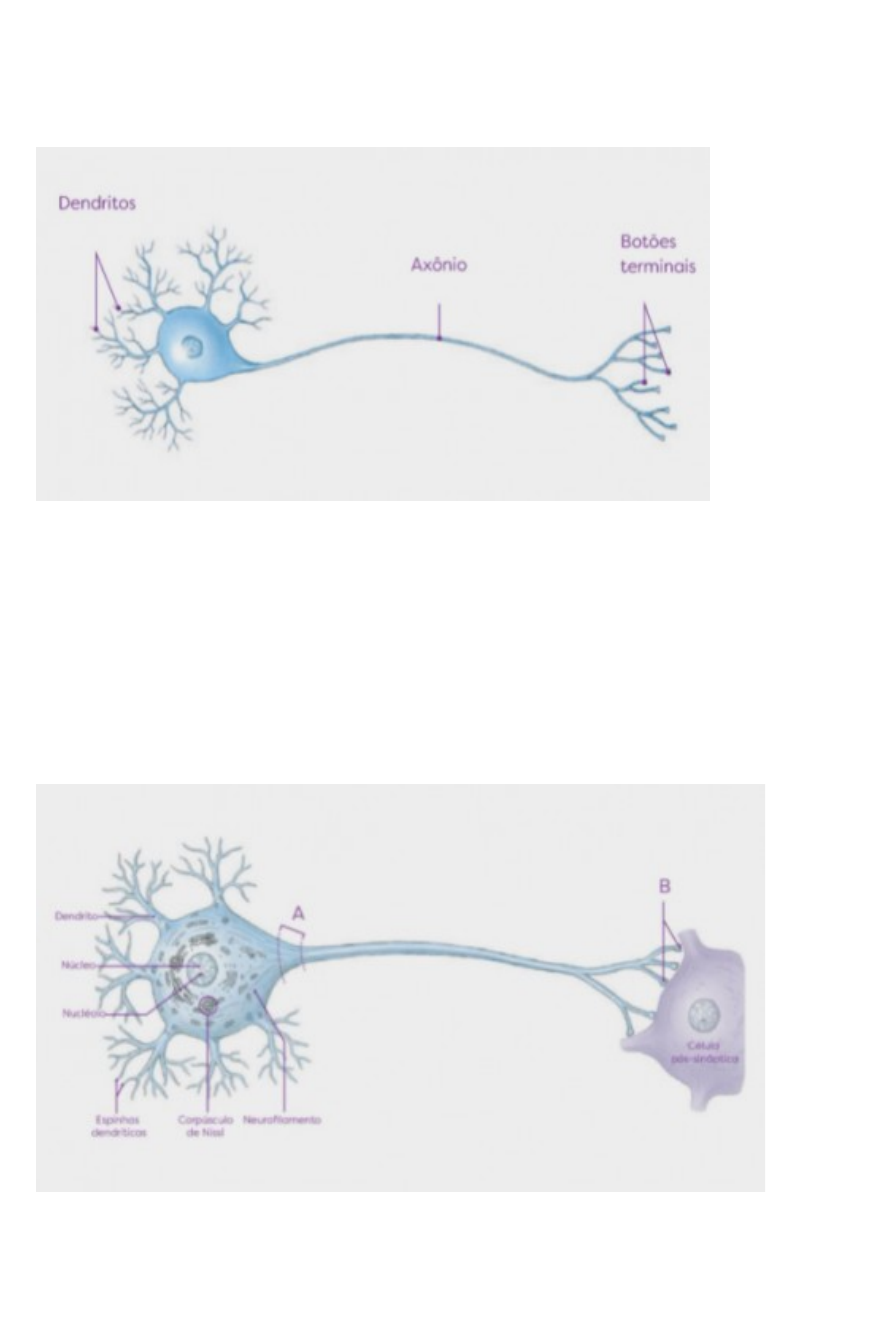 QUESTIONÁRIO 02 – ANATOMIA · Existem vários tipos de células nervosas com características morfológicas distintas que compõem o sistema nervoso. A imagem mostra um neurônio do tipo: Resposta Marcada : Multipolar. PONTUAÇÃO TOTAL: 1PONTUAÇÃO OBTIDA 1 · A imagem mostra um neurônio. O que está sendo indicado pelas letras A e B? Resposta Marcada : A: cone axônico. B: botões sinápticos. PONTUAÇÃO TOTAL: 1PONTUAÇÃO OBTIDA 1 · Assinale a alternativa correta sobre esta imagem, que representa a interação entre os neurônios e as células da glia na medula espinal. Resposta Marcada : Somente as letras A e F indicam neurônios. PONTUAÇÃO TOTAL: 1PONTUAÇÃO OBTIDA 1 · Sobre os neurônios mielínicos, pode-se afirmar que: Resposta Marcada : No sistema nervoso central, estão envolvidos por uma bainha de mielina de oligodendrócitos. PONTUAÇÃO TOTAL: 1PONTUAÇÃO OBTIDA 1 · As células nervosas podem se organizar ou formar arranjos estruturais no sistema nervoso central e no sistema nervoso periférico, como a substância branca, a substância cinzenta, as fibras nervosas e os gânglios. Quanto aos gânglios, pode-se dizer que: Resposta Marcada : São grupos de corpos celulares de neurônios motores ou sensitivos no sistema nervoso periférico. PONTUAÇÃO TOTAL: 1PONTUAÇÃO OBTIDA 1 Total de Pontos5 / 5 image1.png image2.png image3.png