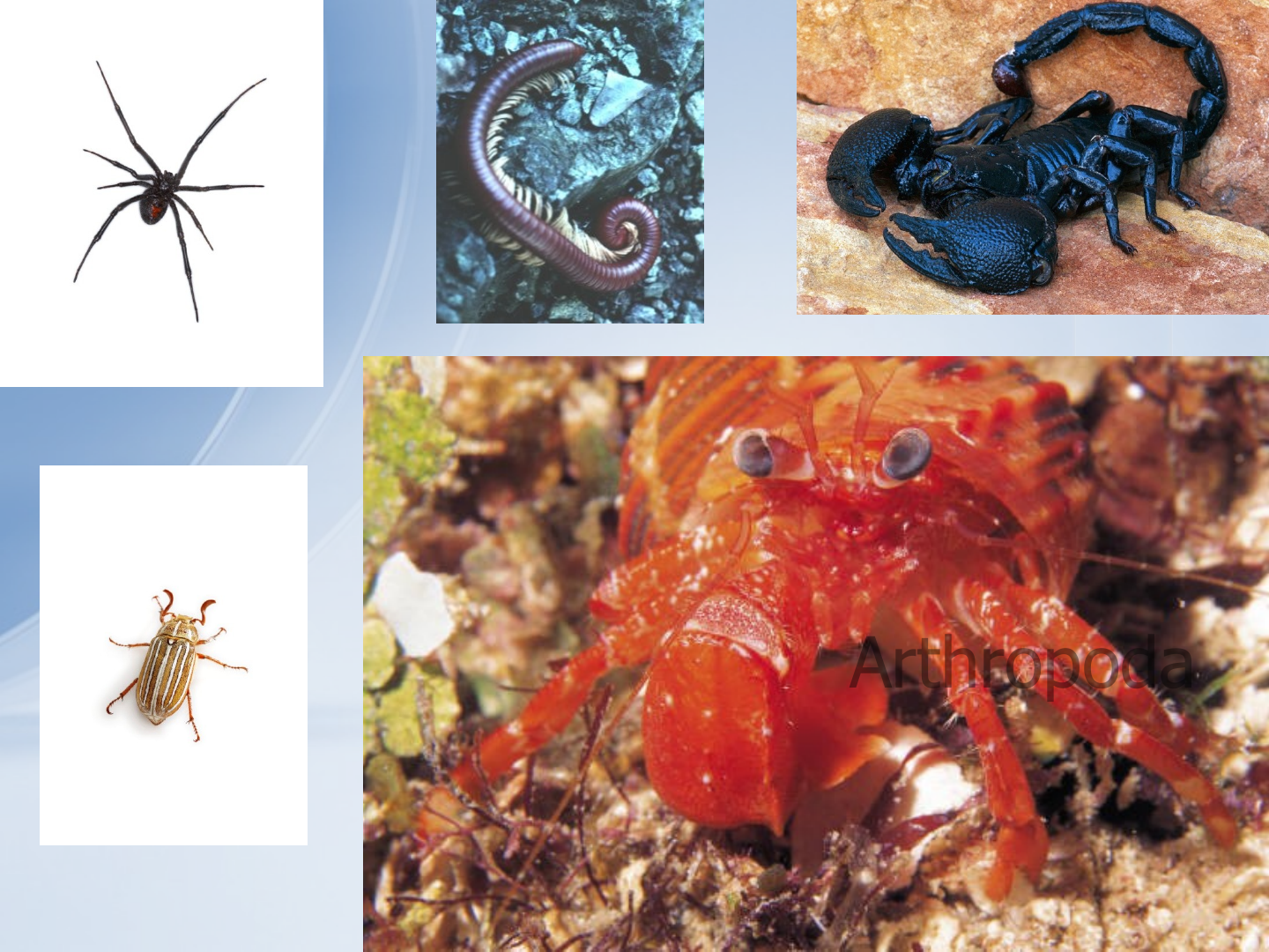 Arthropoda 1 Arthropoda 2 3 4 5 6 7 Mais de 1 milhão de espécies conhecidas Espécies não descritas (a serem descobertas) ? 80% de todas as espécies de animais conhecidas Ambientes Marinhos De água doce Terrestres Arthropoda 8 Animais bilaterais Protostômios Animais segmentados Apêndices seriados pares articulados Exoesqueleto -quitina e proteína Ecdise (muda) Ausência de cílios locomotores Crescimento Adição de novos segmentos Arthropoda 9 Táxons de Arthropoda 10 Trilobitomorpha Chelicerata Mandibulata Crustacea Tracheata Myriapoda Hexapoda Arthropoda (Brusca & Brusca, 2007) 11 Filo Arthropoda Subfilo Trilobitomorpha Subfilo Crustacea Subfilo Hexapoda Subfilo Myriapoda Subfilo Cheliceriformes Arthropoda – animais segmentados (metamerizados) Segmentos (somitos) Série linear de módulos semelhantes Evidente nos táxons primitivos No desenvolvimento embrionário Tendência em alguns táxons Redução ou eliminação dos sinais externos da segmentação (ex: ácaros) Segmentação 12 Apêndices pares Exoesqueleto Dividido em anéis segmentares endurecidos separados por áreas flexíveis Internamente Sistema nervoso, muscular, hemal, excretor Componentes repetidos nos vários segmentos Segmentação - evidências 13 Num mesmo indivíduo Estruturas derivadas dos primórdios embrionários equivalentes Segmentos diferentes que compartilham padrões semelhantes de morfogênese Exemplos: as antenas e as pernas de um gafanhoto Homólogos seriais 14 Condição homônoma Similares ou idênticos em estrutura, forma e função Artrópode ancestral Condição heterônoma Segmentos e apêndices especializados Artrópodes modernos Segmentos do corpo e seus apêndices 15 Extremidade anterior ÁCRON Pré-oral (primeiro segmento verdadeiro contém a boca) Extremidade posterior TÉLSON Pós-anal Não são homólogos seriais dos segmentos que se localizam entre eles Corpo 16 Organização dos segmentos em regiões (TAGMAS) Estrutura Função Apêndices Semelhantes Tagmose 17 Tagmas 18 Hexapoda Cabeça Tórax Abdome Chelicerata Cefalotórax (Prossoma) Abdome (Opistossoma) Crustáceos Arranjos variados de cabeça, tórax e abdome Desenvolvimento de um tagma anterior CABEÇA Recepção sensorial Integração neural Alimentação Cérebro Porção inicial do tubo digestório Apêndices sensoriais e alimentares Cefalização 19 Evolução da cabeça dos artrópodes A = antena, A = ácron, C= quelícera, Ci = quilário, L = perna, Mnd = mandíbula, Mx = maxila, P = pedipalpo e 0 = segmento ausente. Segmentos claros – cabeça, segmentos escuros – tronco. 20 Cutícula EXOESQUELETO Secretada pela epiderme ectodérmica (epitélio) Não viva Composta por -quitina e proteínas Anelídeos Cutícula – colágeno abundante Cerdas - -quitina Parede do corpo 21 Polissacarídeo Monômeros – N-acetilglicosamina Glicosamina – molécula de glicose com um grupo amina Quitina 22 Esclerotinização (-scler = "duro") Quelicerados e hexápodes Exemplo: tanagem Endurece, fortalece e escurece a cutícula Ligações cruzadas covalentes entre as moléculas de proteínas Mineralização Crustáceos e diplópodes Incorporação de sais de cálcio Cutícula 23 Segmentos (somitos) Escleritos Tergito dorsal Pleuritos laterais Esternito ventral Apêndices Artículos (podômeros) cilíndricos Membrana artrodial Porção de cutícula mole, flexível Conexão Exoesqueleto - divisões 24 25 26 Cutícula Epicutícula Camada fina Resistente a água ou impermeável Proteínas, lipoproteínas, lipídios e, as vezes, cera Nunca quitina Procutícula Proteínas e quitina ligadas entre si Glicoproteína Mais espessa que a epicutícula 27 Procutícula Exocutícula – mais externa Endocutícula – mais interna Endocutícula Mais quitina e menos proteína Mineralizada com cabornato de cálcio em crustáceos 28 29 Estruturas cuticulares Variedade morfológica e funcional Projeção quitinosa articulada Forma de pêlo Células tricogênicas (epiderme) – secretam as cerdas Usualmente flexíveis Sólidas ou ocas Cerdas 30 Receptores sensoriais externas Cerdas modificadas Cerdas ramificadas e plumosas Ampliar a área superficial de apêndices para natação Filtros para extrair partículas de alimento da água Cerdas - exemplos 31 Quatro estágios básicos Intermuda Período no qual ocorre o crescimento dos tecidos Pré-muda Fase preparatória Mudanças mais amplas Muda Eliminação do exoesqueleto velho Pós-muda Calcificação e esclerotização do exoesqueleto Intermuda – o organismo neste período é denominado ínstar Ecdise (muda) 32 33 Ecdise Controle endócrino Ecdisona – hormônio esteróide Glândulas protorácicas de insetos Órgão Y dos crustáceos Síntese e liberação de ecdisona Reguladas por neuro-hormônios 34 Ao longo da vida Após a aquisição de maturidade sexual, continuam crescendo e mudando Ex: lagosta e a maioria dos caranguejos Um número mais ou menos fixo de ínstar O animal não muda mais depois de atingir a maturidade sexual Ex: insetos e aranhas Mudas e crescimento 35 Maioria gonocórica Exceções, exemplo: cracas Artrópodes aquáticos – fecundação externa ou interna Artrópodes terrestres – fecundação interna Transferências de espermatozóides Mecanismos diversos Direta Indireta Apêndices modificados Espermatóforos Reprodução 36 Maioria, ovos grandes e com muito vitelo (macrolécitos) Núcleo e uma pequena porção de citoplasma no centro do ovo, envoltos por uma massa de vitelo (centrolécitos) Clivagem superficial meroblástica O ovo não é dividido completamente Desenvolvimento 37 Formação de um tipo de "estereoblástula" Núcleos na periferia Córtex externo de citoplasma Massa central de vitelo As linhas de clivagem aparecem na superfície, mas não aprofundam no vitelo central Blastômeros se formam na superfície 38 Células superficiais blastodisco inicial na superfície da blástula Células do blastodisco endoderme, ectoderme e mesoderme Um par de áreas de teloblasto (o