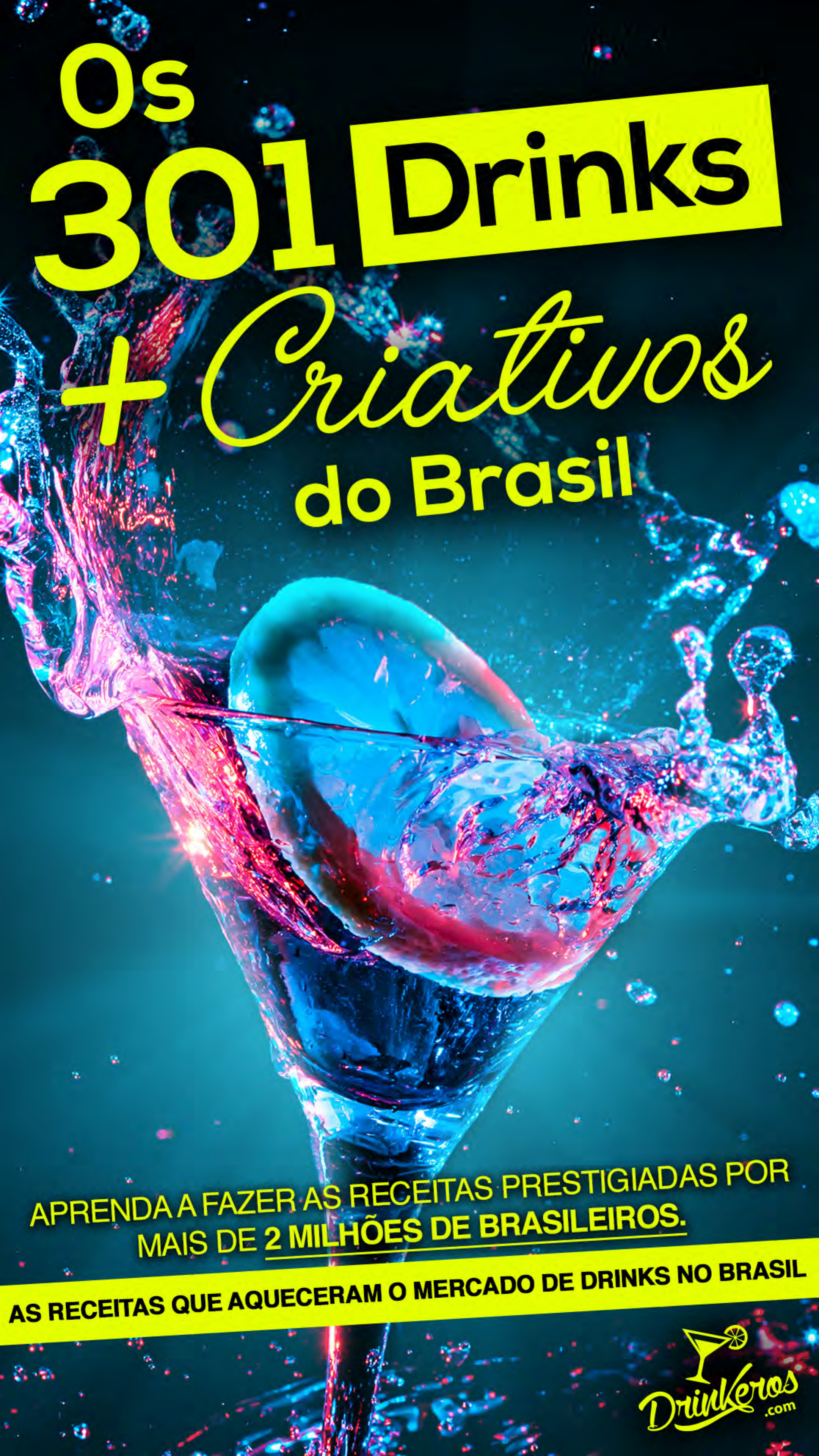 ÍNDICE CLIQUE NA CATEGORIA PARA NAVEGAR • Introdução • Caipirinhas • Batidas • Clássicos & Variações • Drinks Criativos • Drinks com Café • Drinks com Cerveja • Frozens • Drinks na Fruta • Drinks com Sorvete • Drinks para Galera • Sobremesas Alcoólicas • Shots Introdução A Drinkeros começou como uma página no Facebook ensinando receitas de drinks em vídeos rápidos. Chegamos rapidamente aos 2 milhões de seguidores e hoje somos quase 4 milhões. Experimentamos as mais diversas combinações de bebidas, frutas, sucos, sorve- tes, cervejas, refrigerantes e os mais diversos ingredientes para encontrar os melhores sabores e criar várias receitas. Nossa proposta é ensinar, mostrando que é possível fa- zer drinks incríveis utilizando ingredientes que você en- contra facilmente, em qualquer mercado perto da sua casa. Vamos ensinar novas possibilidades, com com- binações de sabores que vai surpreender você e seus amigos. O brasileiro é conhecido no mundo todo por ser muito criativo e agora você também vai fazer parte dessa his- tória, aprendendo todos os tipos de drinks. Suas festas vão ficar muito mais divertidas. Descobrimos que ser um Drinkero é mais do que saber fazer bons drinks, é entender o universo das bebidas, é ser ousado e arriscar novos sabores, e claro, sempre mantendo o drink bem equilibrado. E para isso sepa- ramos as 301 receitas que mais gostamos neste ebook que você nem precisa estar conectado na internet para fazer suas receitas. Por que você deve se tornar um(a) Drinkero(a) ? Na correria do dia a dia acabamos optando pela prati- cidade das bebidas prontas: Refrigerante, cerveja, sucos ou misturando vodka com energético pelo simples fato de estarem prontas. Percebemos que para a maioria das pessoas, falta ape- nas um pequeno empurrão para ativar a criatividade e fazerem seus próprios drinks. A missão dos Drinkeros é ensinar como misturar todo tipo de ingrediente de forma que a receita fique boni- ta e saborosa. E isso serve para drinks alcoólicos como: Caipirinhas, batidas, drinks clássicos e contemporâneos. E também para drinks não alcoólicos como: Milkshakes, frappucci- nos, smoothies, sucos verdes, e tudo mais que sua ima- ginação permitir. Um Drinkero criativo pode fazer: Sobremesas alcoóli- cas, shots estilizados para tomar antes da balada, caipirinha gourmet e aquele clássico martini que nem o James Bond conseguiria resistir. Além disso, aprender a fazer drinks é uma excelente maneira de enriquecer o seu marketing pessoal conhecendo pessoas. Quem sabe fa- zer drinks sempre é lembrado para festas e eventos. Uma coisa é certa, sua agenda vai ficar cheia. Ser um Drinkero ou uma Drinkera é ter conhecimento e liberdade de ser como um alquimista, capaz de mistu- rar qualquer ingrediente e transformá-los em algo com- pletamente novo e saboroso. Está pronto para se tornar • No liquidificador: • Meio copo de gelo picado • 1 banana prata • 1 limão espremido • 1 dose de Cachaça • 2 colheres de açúcar • Bater no liquidificador • Em uma taça grande: • Passe limão na borda e açúcar com canela • Encha de gelo e metade de um limão picado • Decore com banana na borda ou na lateral com casca pra dar um contraste http://www.drinkeros.com/receitas/receita-de-como-fazer-o-drink-caipirinha-de-banana/ • Em um copo largo: • 1 mexerica inteira • 2 colheres de sopa de açúcar • Macerar • 1 dose de cachaça ouro • Completar com gelo • Mexer • Decorar com 1 pimenta dedo de moça em 4 fatias http://www.drinkeros.com/receitas/receita-de-como-fazer-um-drink-caipirinha-de-mexerica-com-pimenta/ • Em uma Taça de Vinho: • Gelo até encher • 1 Limão Tahiti fatiado • 1 Limão Tahiti espremido • 2 colheres de sopa de Açúcar • 4 doses de Vinho tinto seco • 1 dose de Cachaça ou Pinga • mexer • decorar com casca de limão cortada em espiral http://www.drinkeros.com/receitas/como-fazer-uma-caipirinha-de-vinho/ • Em uma panela: • 1 caixa de Morango picado • 1 caixa de Mirtilo • 1 caixa de Amora • 1 xícara de Açúcar Mascavo • Esquentar em fogo baixo até virar uma calda • Despejar mistura na Jarra 2 L • 3 limões espremidos • 1 copo de Vodka • Misturar • Intercalar Gelo e Morango https://www.drinkeros.com/receita/caipijarra-de-frutas-vermelhas/ • Em uma Caneca: • Meia Manga picada • 4 fatias de Carambola • Meia polpa de Maracujá • 2 colheres de Açúcar • Macerar • 1 dose de Cachaça • Misturar • Completar com gelo triturado • Decorar usando: • 1 Carambola na borda • 1 ramo de Hortelã • Canudo https://www.drinkeros.com/receita/caipirinha-de-frutas-amarelas-2/ • Em um copo de Caipirinha: • 6 cubos de Melancia • 2 colheres de sopa de Açúcar • Macerar • 1 colher de chá de Gengibre ralado na peneira • Meio Limão espremido no Gengibre • Pressionar o Gengibre com uma colher de chá • Gelo até em cima • 1 dose de Cachaça • Misturar • Decorar usando: • 1 rodela de Limão na borda • 1 ramo de Hortelã http://www.drinkeros.com/receitas/caipimelancia-com-gengibre/ • Num Pratinho: • Misturar partes iguais de Café solúvel com Açúcar • Passar Limão na borda de um copo Baixo e depois na mistura • 1 Limão picado • 1 Colher de sopa de Açúcar • Macerar • 3 pedras de Gelo • 1 dose de Cachaça • 1 dose de Café adoçado • Mais Gelo • Mexer https://www.drinkeros.com/receita/como-fazer-uma-caipirinha-de-cafe/ • Passe Limão na borda • Passe Sal na borda • Em uma caneca alta: • 1 Limão cortado sem miolo • 2 colheres de sopa de Açúcar • Macerar • 1 dose de Cachaça • Misturar • Gelo até em cima • Completar com a Cerveja Ipa • Pronto! Bora beber https://www.drinkeros.com/receita/caipi-de-ipa/ • Em um copo médio: • 1 Limão picado sem miolo • 2 colheres (sopa) de Açúcar • Macerar • 1 dose de Cachaça • Mexer • 2 bolas de Açaí • Mist