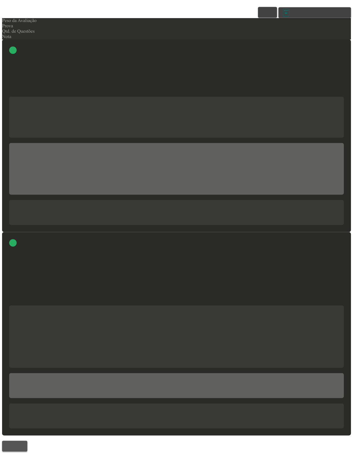 Prova Impressa GABARITO | Avaliação Final (Discursiva) - Individual (Cod.:959534) Peso da Avaliação 2,00 Prova 77262927 Qtd. de Questões 2 Nota 10,00 A identificação e o estabelecimento claro de um propósito desempenham um papel fundamental no desenvolvimento pessoal e profissional. Esse propósito funciona como um farol orientador, servindo como alicerce para a definição de metas e objetivos que, por sua vez, conduzem ao sucesso e à realização de aspirações. Contudo, é uma ocorrência comum que, ao longo do tempo, as pessoas se desviem do caminho originalmente traçado, perdendo o foco em seus objetivos declarados. O texto destaca a importância do estabelecimento do propósito como um alvo fundamental para definir objetivos e metas que levem ao sucesso. Também enfatiza a tendência das pessoas em perder o foco ao longo do tempo e a necessidade de lembrar regularmente desses propósitos. Fonte: adaptado de: MULLER, C. et al. Perspectivas Profissionais. Indaial: Arqué, 2023. Com base no texto fornecido, descreva a importância do estabelecimento de propósito no desenvolvimento pessoal e profissional. Explique como o propósito pode servir como um guia para a definição de objetivos e metas e discuta por que é essencial lembrar regularmente desses propósitos. Resposta esperada A resposta esperada deve abordar a importância do estabelecimento de propósito no desenvolvimento pessoal e profissional, explicando como o propósito atua como um guia para a definição de objetivos e metas. Além disso, a resposta deve discutir por que é essencial lembrar regularmente desses propósitos, destacando como isso ajuda as pessoas a permanecerem alinhadas com seus objetivos de vida e a evitar desvios do caminho desejado. A resposta deve ser clara, bem estruturada e demonstrar compreensão do texto-base. MULLER, C. et al. Perspectivas Profissionais. Indaial: Arqué, 2023. A importância de lembrar os propósitos estabelecidos. [Inicie a sua Jornada]. Minha resposta O estabelecimento claro de um propósito é fundamental para o desenvolvimento pessoal e profissional, pois funciona como um farol orientador que ajuda a definir metas e objetivos que levam ao sucesso e à realização de aspirações. Quando se tem um propósito bem definido, é mais fácil tomar decisões e escolher caminhos que estejam alinhados com esse propósito, o que aumenta as chances de sucesso. O propósito pode servir como um guia para a definição de objetivos e metas, pois ajuda a identificar o que é realmente importante e valioso para a pessoa. Com base nisso, é possível estabelecer metas que estejam alinhadas com o propósito e que sejam relevantes para o desenvolvimento pessoal e profissional. No entanto, é comum que as pessoas se desviem do caminho originalmente traçado e percam o foco em seus objetivos declarados. Por isso, é essencial lembrar regularmente desses propósitos, para que se possa manter o foco e a motivação para alcançar as metas estabelecidas. É importante revisitar o propósito com frequência, para garantir que as metas e objetivos estejam alinhados com ele e para fazer ajustes, se necessário. Retorno da correção Parabéns, acadêmico, sua resposta atingiu os objetivos da questão e você contemplou o esperado, demonstrando a competência da análise e síntese do assunto abordado, apresentando excelentes argumentos próprios, com base nos materiais disponibilizados. A autorresponsabilidade é um conceito que destaca a importância de assumir a responsabilidade por nossos atos, decisões e resultados na vida. Trata-se de reconhecer que somos os principais agentes de mudança em nossa jornada e que temos a capacidade de influenciar diretamente o curso de nossas vidas. Esse conceito está intrinsecamente ligado à autonomia e ao controle sobre nossos destinos. Autorresponsabilidade implica em não culpar fatores externos, como circunstâncias ou outras pessoas, por nossos resultados. Em vez disso, significa olhar para dentro de nós mesmos e reconhecer que somos os responsáveis por nossas escolhas e ações. É a consciência de que, mesmo diante de desafios e obstáculos, temos o poder de redirecionar nossa trajetória e fazer escolhas que nos aproximem de nossos objetivos. Fonte: adaptado de: AUTORRESPONSABILIDADE: como você cuida de si mesmo? MAG Seguros, 2023. Disponível em: https://blog.mag.com.br/longevidade/comportamento/autorresponsabilidade/#:~:text=A%20autorresponsabilidade%20se%20refere%20%C3%A0,toma%20ao%20longo%20do%20c Acesso em: 26 jan. 2024. Explique como a capacidade de assumir a responsabilidade por nossos atos e decisões, juntamente à habilidade de fazer escolhas conscientes, influencia o controle sobre o próprio destino e o caminho em direção à realização dos objetivos pessoais, destacando sobre a importância da autorresponsabilidade e da tomada de decisão na busca por uma vida mais autônoma e no direcionamento de seu projeto de vida. Resposta esperada Os estudantes devem dissertar sobre como o conceito de autorresponsabilidade, abordado no texto-base, é fundamental para assumir o controle da própria vida e direcionar o projeto de vida. Eles devem explicar que assumir a responsabilidade por nossos atos e decisões implica em reconhecer que somos os principais agentes de mudança em nossa vida e que podemos redirecionar nossas escolhas e ações de forma consciente. Além disso, os estudantes devem destacar a importância da tomada de decisão na busca por uma vida mais autônoma. A habilidade de fazer escolhas conscientes, considerando diferentes perspectivas e analisando as soluções apresentadas, é essencial para moldar o próprio destino e avançar em direção aos objetivos pessoais. A resposta deve demonstrar como essas competências estão interligadas e como podem capacitar as pessoas a se colocarem no controle de sua vida e a escreverem seus próprios caminhos em direção à realização de seus projetos de vida. MULLER, C. 