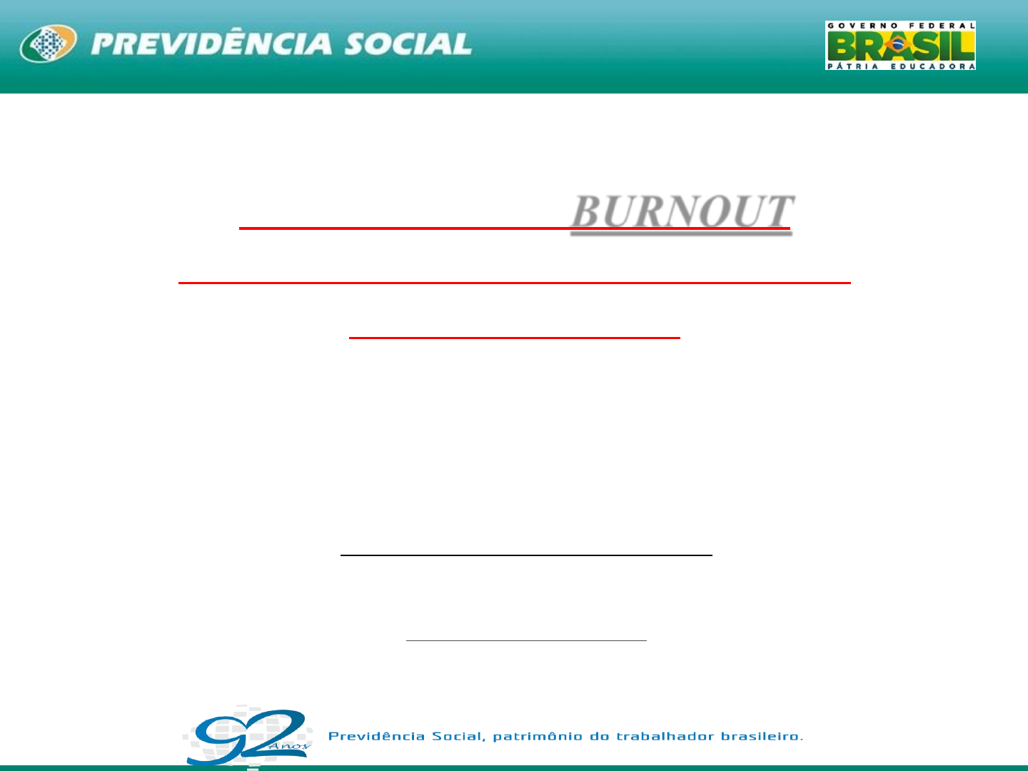 <p>1</p><p>BETYNA SALDANHA CORBAL</p><p>Perita Médica Previdenciária DPSSO/SPPS/MTPS</p><p>dpsso@previdencia.gov.br</p><p>SÍNDROME DE BURNOUT SÍNDROME DO ESGOTAMENTO PROFISSIONAL</p><p>2</p><p>SÍNDROME DE BURNOUT</p><p>OU ESGOTAMENTO PROFISSIONAL</p><p>Termo Burnout: derivado do verbo inglês to burn out: “queimar por completo” ou “consumir-se”</p><p>Criado pelo psicanalista americano Freudenberger, o qual descreveu o burnout como um sentimento de fracasso e exaustão causado por um excessivo desgaste de energia e recursos internos.</p><p>Não existe uma definição única sobre Burnout</p><p>Resposta ao estresse laboral crônico</p><p>Rev enferm UFPE on line., Recife, 8(10):3539-46, out., 2014</p><p>3</p><p>SÍNDROME DE BURNOUT</p><p>OU ESGOTAMENTO PROFISSIONAL</p><p>Sensação de estar acabado ou síndrome do esgotamento profissional é uma resposta prolongada a estressores e interpessoais crônico do trabalho. O trabalhador desgasta-se e em um dado momento desiste, perde energia ou se “queima” completamente</p><p>Doenças relacionadas ao Trabalho – Manual de Procedimentos para os Serviços de</p><p>Saúde - Ministério da Saúde - 2001</p><p>4</p><p>SÍNDROME DE BURNOUT</p><p>OU ESGOTAMENTO PROFISSIONAL</p><p>Profissionais que trabalham na prestação de cuidados a pessoas doentes, grupos</p><p>sociais carentes e crianças</p><p>Outros grupos: bancários, policiais, bombeiros, agentes penitenciários, recepcionistas, gerentes, atendentes de telemarketing, motoristas de ônibus</p><p>Vários estudos a respeito do tema com enfermeiras, médicos, assistentes sociais e professores</p><p>Desencadeante mais frequente: situação de sobrecarga ou de frustração no trabalho</p><p>Fase prévia: o entusiasmo é substituído por uma vivência de tédio, irritação e</p><p>mau humor</p><p>Patologia do Trabalho René Mendes 2° Edição</p><p>5</p><p>SÍNDROME DE BURNOUT</p><p>OU ESGOTAMENTO PROFISSIONAL</p><p>Segundo Maslach & Jackson a Síndrome de Esgotamento Profissional é composta por 3 elementos centrais:</p><p>Exaustão emocional (desgaste emocional e esvaziamento afetivo);</p><p>Despersonalização ( reação negativa, insensibilidade ou afastamento excessivo do público que deveria receber os serviços ou os cuidados do paciente);</p><p>Diminuição do envolvimento pessoal no trabalho (sentimento de diminuição de</p><p>competência e de sucesso no trabalho)</p><p>Doenças relacionadas ao Trabalho – Manual de Procedimentos para os Serviços de</p><p>Saúde - Ministério da Saúde - 2001</p><p>6</p><p>SÍNDROME DE BURNOUT</p><p>OU ESGOTAMENTO PROFISSIONAL</p><p>Sintomas inespecíficos</p><p>como insônia, fadiga, inquietação caracterizando</p><p>síndrome depressiva e/ou ansiosa</p><p>Perda do autocontrole emocional</p><p>Irritabilidade</p><p>Manifestação de agressividade</p><p>Perturbação do sono</p><p>Decepção e perda da disposição e interesse pelo trabalho</p><p>Instalação de uma verdadeira intolerância ao contato com aqueles que eram alvo da dedicação do profissional</p><p>QUADRO CLÍNICO:</p><p>Patologia do Trabalho René Mendes 2° Edição</p><p>7</p><p>SÍNDROME DE BURNOUT</p><p>OU ESGOTAMENTO PROFISSIONAL</p><p>LEGISLAÇÃO</p><p>Portaria nº 1339 de 18 de novembro de 1999 do MS: instituiu a Lista de Doenças Relacionadas ao Trabalho, e incluiu a Sensação de Estar Acabado (“Síndrome de Burnout”, “Síndrome do Esgotamento Profissional”) (Z73.0), nos transtornos mentais e do comportamento relacionados com o trabalho, tendo como agentes etiológicos ou fatores de risco de natureza ocupacional o Ritmo de trabalho penoso (CID10 Z56.3) e Outras dificuldades físicas e mentais relacionadas com o trabalho (CID10 Z56.6).</p><p>8</p><p>SÍNDROME DE BURNOUT</p><p>OU ESGOTAMENTO PROFISSIONAL</p><p>LEGISLAÇÃO</p><p>Decreto nº 6.042/2007, que alterou o Regulamento da Previdência Social, aprovado pelo Decreto no 3.048/1999, em seu anexo II que trata sobre agentes patogênicos causadores de doenças profissionais ou do trabalho, conforme previsto no art. 20 da lei no 8.213, de 1991, inseriu na lista B, a síndrome de Burnout, no título sobre transtornos mentais e do comportamento relacionados com o trabalho (Grupo V da CID-10).</p><p>9</p><p>SÍNDROME DE BURNOUT</p><p>OU ESGOTAMENTO PROFISSIONAL</p><p>LEGISLAÇÃO</p><p>Regulamento da Previdência Social Anexo II Lista B</p><p>Redação dada pelo Decreto nº 6.042/2007</p><p>10</p><p>SÍNDROME DE BURNOUT</p><p>OU ESGOTAMENTO PROFISSIONAL</p><p>LEGISLAÇÃO</p><p>RESOLUÇÃO Nº 128/INSS/PRES, DE 16 DE DEZEMBRO DE 2010</p><p>Aprovou o Manual de Diretrizes de Apoio à Decisão Médico-Pericial em Psiquiatria</p><p>Orienta a conduta médico pericial previdenciária na Síndrome de Burnout</p><p>Transtorno grave de tensão emocional crônica relacionada ao trabalho, em que o estresse</p><p>chega às últimas consequências e leva o organismo a esgotamento por exaustão. Clinicamente o indivíduo torna-se improdutivo, irresponsável, indiferente, desatencioso, frio emocionalmente, embotado e empobrecido em seus vínculos afetivos e laborais. O perfil do atingido caracteriza-se em serem profissionais idealistas, exigentes, perfeccionistas.</p><p>11</p><p>SÍNDROME DE BURNOUT</p><p>OU ESGOTAMENTO PROFISSIONAL</p><p>LEGISLAÇÃO</p><p>RESOLUÇÃO Nº 128/INSS/PRES, DE 16 DE DEZEMBRO DE 2010</p><p>Manual de Diretrizes de Apoio à Decisão Médico-Pericial em Psiquiatria</p><p>Conduta médico pericial:</p><p>O CID Z73.0 não se encontra contemplado no Sistema de Administração de Benefícios por Incapacidade – SABI</p><p>Sugere-se, enquanto a referida lista não seja atualizada, para fins de padronização, que se indique o diagnóstico CID F43.1 (Transtorno de estresse pós-traumático)</p><p>Não é raro que um sintoma de Burnout possa ser considerada com outro CID principal: F32 (episódios depressivos), F40 (Transtornos fóbico-ansiosos), entre outros</p><p>12</p><p>SÍNDROME DE BURNOUT</p><p>O