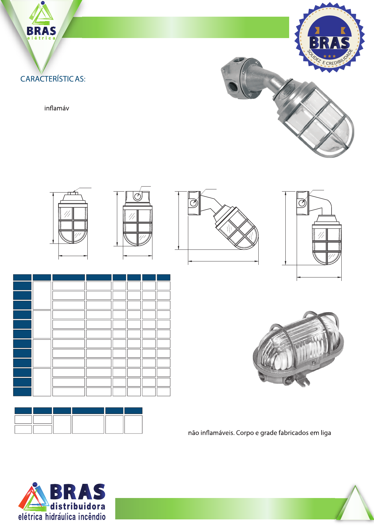 <p>IB ME IB MC IB M45</p><p>IB M90</p><p>A</p><p>DN</p><p>A</p><p>DN</p><p>A</p><p>B</p><p>DN</p><p>B</p><p>A</p><p>DN</p><p>B B</p><p>Aparelho de iluminação blindada da linha industrial, projetado</p><p>para ser utilizado em ambientes à prova de tempo, gases, vapores</p><p>e pó não eis. Corpo e grade fabricados em liga de alumínio</p><p>de alta resistência mecânica. Globo de vidro transparente. Juntas</p><p>de vedação em borracha. Utiliza soquete de porcelana E-27 ou E-</p><p>40, dependendo do tipo de lâmpada utilizada. Acabamento</p><p>padrão com pintura eletrostática na cor cinza (a pedido na cor</p><p>alumínio). Fácil manutenção e instalação, entradas rosqueadas</p><p>em "X" fornecido com 02 bujões plásticos.</p><p>Abaixo: tabela dimensional</p><p>CARACTERÍSTICAS:</p><p>Obs.: Dimensões em mm</p><p>Potência (W)Modelo T ipo T ipo de L âmpada</p><p>Pendente</p><p>Incandescente</p><p>Incandescente</p><p>Incandescente</p><p>Incandescente</p><p>Incand./Mista</p><p>V. Mercúrio</p><p>Incand./Mista</p><p>V. Mercúrio</p><p>Incand./Mista</p><p>V. Mercúrio</p><p>Incand./Mista</p><p>V. Mercúrio</p><p>Incand./Mista</p><p>V. Mercúrio</p><p>Incand./Mista</p><p>V. Mercúrio</p><p>Incand./Mista</p><p>V. Mercúrio</p><p>Incand./Mista</p><p>V. Mercúrio</p><p>A</p><p>188</p><p>265E -27200/160</p><p>125</p><p>IB ME 2</p><p>300/250</p><p>250</p><p>IB ME 3</p><p>200/160</p><p>125</p><p>IB MC 2</p><p>300/250</p><p>250</p><p>IB MC 3</p><p>100IB M451</p><p>200/160</p><p>125</p><p>IB M452</p><p>300/250</p><p>250</p><p>IB M453</p><p>200/160</p><p>125</p><p>IB M902</p><p>300/250</p><p>250</p><p>IB M903</p><p>100IB M901</p><p>100IB MC 1</p><p>E -27100IB ME 1</p><p>S oq. DN</p><p>3/4"</p><p>3/4"130</p><p>108</p><p>B</p><p>Plafonier</p><p>322</p><p>200E -27</p><p>E -27</p><p>E -40</p><p>3/4"</p><p>3/4"108</p><p>161</p><p>Arandela</p><p>45º</p><p>275</p><p>330E -27</p><p>E -40</p><p>E -27 3/4"</p><p>3/4"</p><p>1"</p><p>161</p><p>130</p><p>Arandela</p><p>90º</p><p>250</p><p>310E -27</p><p>E -27 3/4"</p><p>3/4"315</p><p>260</p><p>315</p><p>270E -27</p><p>E -27</p><p>E -40</p><p>3/4"</p><p>1"</p><p>3/4"160</p><p>395</p><p>415</p><p>350E -27</p><p>E -40</p><p>E -27 3/4"</p><p>3/4"</p><p>1"</p><p>215</p><p>170</p><p>Blindada - IBM</p><p>CARACTERÍSTICAS:CARACTERÍSTICAS:</p><p>ILUMINAÇÃO BLINDADA</p><p>Central de Relacionamento : (11) 2894-6470</p><p>www.brasdistribuidora.com.br Elétrica</p><p>01/01</p><p>GROUP</p><p>+1</p><p>EMPRESA</p><p>Aparelho de iluminação blindada da linha industrial</p><p>tipo tartaruga, projetado para ser utilizado em</p><p>ambientes à prova de tempo, gases, vapores e pó</p><p>de alumínio de alta resistência mecânica. Vidro</p><p>transparente prismático, junta de vedação com</p><p>borracha. Utiliza soquete de porcelana E-27.</p><p>Fácil manutenção e instalação, entradas rosqueadas</p><p>diâmetro 1/2” ou 3/4” BSP (rosca gás) em “T”.</p><p>Acabamento em pintura eletrostática na cor cinza</p><p>(a pedido na cor alumínio).</p><p>CARACTERÍSTICAS:</p><p>Diâmetro Tensão SoqueteLâmpada Tipo</p><p>1/2"</p><p>ou E-27ou</p><p>3/4"IBMT2</p><p>IBMT1</p><p>Código</p><p>100W</p><p>15W Compacta com</p><p>reator Incorporado</p><p>Incandescente</p><p>ou</p><p>110V</p><p>220V</p><p>Iluminação tipo</p><p>Tartaruga - IBMT</p>