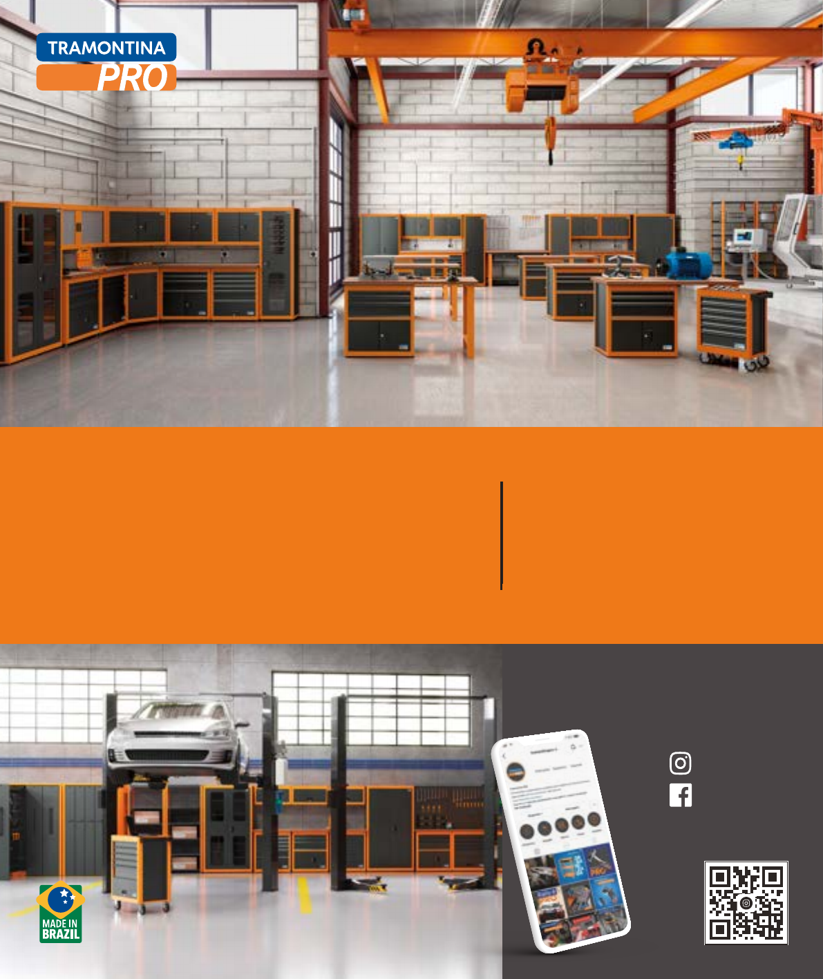<p>ORGANIZADORES</p><p>MODULARES Organizadores Modulares</p><p>Tramontina PRO</p><p>Tramontina PRO</p><p>modular storage system</p><p>@tramontinapro</p><p>/tramontinapro</p><p>Siga a Tramontina PRO nas redes sociais</p><p>para conferir as novidades:</p><p>A Tramontina Garibaldi, fundada em 1963, está localizada em Garibaldi, RS. Hoje, com 80 mil m² de área construída, essa unidade fabril conta com 800</p><p>funcionários e produz um mix de produtos destinados ao mercado de ferramentas manuais, no qual atua em três diferentes segmentos. A Linha PRO atende</p><p>principalmente os profissionais do setor industrial e automotivo. A Linha Master atende mercado da construção civil. E a Linha Faça Você Mesmo atende</p><p>o mercado de uso doméstico. Os produtos seguem um rigoroso controle de qualidade e de fabricação, especialmente no que diz respeito à resistência, à</p><p>segurança e a precisão do produto. Isso para que o usuário faça bonito na hora de montar, organizar e consertar.</p><p>Tramontina Garibaldi, fundada en el año de 1963, está ubicada en la ciudad Garibaldi, RS, Brasil. Hoy con 80 mil m² de área construida, esta unidad fabril</p><p>cuenta con 700 empleados y produce un mix de productos destinados al mercado de herramientas manuales, en el que actúa en tres distintos segmentos. La</p><p>Línea PRO atiende principalmente a los profesionales de los sectores industrial y automotriz. La Línea Master atiende el mercado de la construcción civil. Y la</p><p>Línea Hágalo Usted Mismo atiende el mercado de uso doméstico. Los productos siguen un riguroso control de calidad y fabricación, especialmente en lo que</p><p>se refiere a la resistencia, seguridad y a la precisión del producto.</p><p>Tramontina Garibaldi was founded in 1963 and is located in Garibaldi, RS, Brazil. It now has an industrial area of 80,000 m2 and 700 employees manufactur-</p><p>ing a wide mix of products for the hand tools market, being present in three different segments. The PRO Line caters mainly to the industrial and automotive</p><p>professionals. The Master Line serves the civil construction field. And the Do It Yourself Line serves the domestic use market. All products comply with strict</p><p>quality control and manufacturing standards, especially regarding resistance, safety, and accuracy. So the end user can do beautifully well when carrying out</p><p>assembling, organizing, and repairing tasks.</p><p>DIVISÃO CENTRO LOGÍSTICO | DIVISIÓN CENTRO LOGÍSTICO | LOGISTIC CENTER DIVISION</p><p>DIVISÃO DE CABOS E INSUMOS DE MADEIRA | DIVISIÓN DE MANGOS Y INSUMOS DE</p><p>MADERA | HARDWOOD HANDLES AND WOODEN INPUTS DIVISION</p><p>DIVISÃO ROTA DO SOL | DIVISIÓN ROTA DO SOL | ROTA DO SOL DIVISIONDIVISÃO PRINCIPAL DE FERRAMENTAS MANUAIS | DIVISIÓN DE HERRAMIENTAS MANUALES | HAND TOOLS DIVISION</p><p>TRAMONTINA GARIBALDI</p><p>2 * Material exclusivo para clientes pessoa jurídica. | *Material exclusivo para</p><p>clientes persona jurídica. | *Exclusive material for legal entities/corporate clients.</p><p>INDUSTRIAL</p><p>AUTOMOTIVO</p><p>ELÉTRICO</p><p>AGRÍCOLA</p><p>OFFSHORE</p><p>AERONÁUTICO</p><p>INDUSTRIAL | INDUSTRIAL</p><p>AUTOMOTRIZ | AUTOMOTIVE</p><p>ELÉCTRICO | ELECTRICAL</p><p>AGRÍCOLA | AGRICULTURAL</p><p>HIDROCARBUROS | OIL DRILLING</p><p>AERONÁUTICA | AERONAUTICAL</p><p>Herramientas diseñadas para trabajos de alto desempeño.</p><p>Tools for high-performance jobs.</p><p>FERRAMENTAS PROJETADAS PARA</p><p>TRABALHOS DE ALTA PERFORMANCE.</p><p>3* Material exclusivo para clientes pessoa jurídica. | *Material exclusivo para</p><p>clientes persona jurídica. | *Exclusive material for legal entities/corporate clients.</p><p>PROMOÇÃO TÉCNICA</p><p>PROMOCIÓN TÉCNICA | TECHNICAL PROMOTION</p><p>Para apoiar os distribuidores e usuários</p><p>finais, a Tramontina PRO conta com uma</p><p>equipe de promotores técnicos.</p><p>Solicite uma visita técnica!</p><p>Para apoyar los clientes en el exterior, Tramontina PRO</p><p>cuenta con distribuidores capacitados para brindarles</p><p>la asistencia necesaria.</p><p>In order to support the end users, Tramontina PRO has a</p><p>competent distributors network that is able to offer the</p><p>necessary assistance.</p><p>4 * Material exclusivo para clientes pessoa jurídica. | *Material exclusivo para</p><p>clientes persona jurídica. | *Exclusive material for legal entities/corporate clients.</p><p>CIPeD</p><p>O CIPeD [Centro de Inovação, Pesquisa e Desenvolvimento</p><p>Tramontina] é constituído por modernos laboratórios que</p><p>reúnem equipamentos de última geração, para propiciar o</p><p>desenvolvimento de ferramentas manuais para trabalhos</p><p>de alta performance, que atendem as mais rigorosas</p><p>normas de fabricação.</p><p>O CIPeD é composto de:</p><p>• Laboratório Metalográfico</p><p>• Laboratório de Análises Físico-químicas</p><p>• Laboratório de Ferramentas Isoladas</p><p>• Laboratório de Torque</p><p>• Laboratório de Ensaios Mecânicos</p><p>• Laboratório de Ensaios com Geração de Ruídos</p><p>• Laboratório de Ensaios Mecânicos para Organizadores</p><p>• Laboratório de Metrologia Dimensional para Brocas</p><p>• Laboratório de Ensaios Cíclicos</p><p>• Laboratório para Ensaio de Lavadoras de Alta Pressão</p><p>• Gestão Ambiental</p><p>• Gestão da Qualidade</p><p>El CIPeD [Centro de Innovación, Estudio y</p><p>Desarrollo de Productos] es constituido por modernos</p><p>laboratorios que cuentan con equipamientos de</p><p>última modernidad, para propiciar el desarrollo</p><p>de herramientas manuales para trabajos de alto</p><p>desempeño, que atienden las más rígidas normas de</p><p>fabricación.</p><p>El CIPeD es compuesto de:</p><p>• Laboratorio de Metalografía</p><p>• Laboratorio de Análisis Fisicoquímicas</p><p>• Laboratorio de Herramientas Aisladas</p><p>• Laboratorio de Torque</p><p>• Laboratorio de Ensayos Mecánicos</p><p>• Laboratorio 