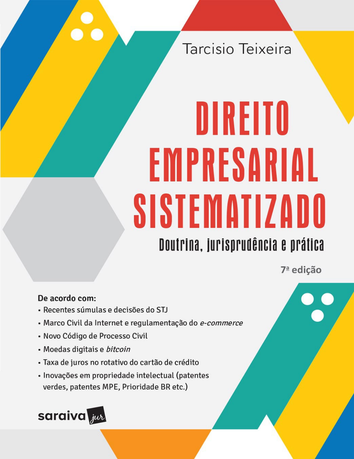 <p>ISBN 9788547230111</p><p>Teixeira, Tarcisio</p><p>Direito empresarial sistematizado : doutrina, jurisprudência e prática / Tarcisio Teixeira. – 7. ed. – São Paulo :</p><p>Saraiva Educação, 2018.</p><p>1. Direito empresarial 2. Direito empresarial - Brasil I. Tıt́ulo.</p><p>17-1376 CDU 34:338.93(81)</p><p>Índices para catálogo sistemático:</p><p>1. Brasil : Direito empresarial : Direito 34:338.93(81)</p><p>2. Direito empresarial : Brasil : Direito 34:338.93(81)</p><p>Presidente Eduardo Mufarej</p><p>Vice-presidente Claudio Lensing</p><p>Diretora editorial Flávia Alves Bravin</p><p>Conselho editorial</p><p>Presidente Carlos Ragazzo</p><p>Consultor acadêmico Murilo Angeli</p><p>Gerência</p><p>Planejamento e novos projetos Renata Pascoal Müller</p><p>Concursos Roberto Navarro</p><p>Legislação e doutrina Thaís de Camargo Rodrigues</p><p>Edição Daniel Pavani Naveira</p><p>Produção editorial Ana Cristina Garcia (coord.) | Luciana Cordeiro Shirakawa | Rosana Peroni Fazolari</p><p>Arte e digital Mônica Landi (coord.) | Claudirene de Moura Santos Silva | Guilherme H. M. Salvador | Tiago Dela</p><p>Rosa | Verônica Pivisan Reis</p><p>Planejamento e processos Clarissa Boraschi Maria (coord.) | Juliana Bojczuk Fermino | Kelli Priscila Pinto |</p><p>Marília Cordeiro | Fernando Penteado | Tatiana dos Santos Romão</p><p>Novos projetos Laura Paraíso Buldrini Filogônio</p><p>Diagramação (Livro Físico) Microart Design Editorial</p><p>Revisão Microart Design Editorial</p><p>Comunicação e MKT Elaine Cristina da Silva</p><p>Capa Tiago Dela Rosa</p><p>Livro digital (E-pub)</p><p>Produção do e-pub Guilherme Henrique Martins Salvador</p><p>Data de fechamento da edição: 13-11-2017</p><p>Dúvidas?</p><p>Acesse www.editorasaraiva.com.br/direito</p><p>Nenhuma parte desta publicação poderá ser reproduzida por qualquer meio ou forma sem a prévia autorização da Editora</p><p>Saraiva.</p><p>A violação dos direitos autorais é crime estabelecido na Lei n. 9.610/98 e punido pelo artigo 184 do Código Penal.</p><p>http://www.editorasaraiva.com.br/direito</p><p>TARCISIO TEIXEIRA</p><p>D outor e Mestre em D ireito Empresarial pela Faculdade de D ireito do Largo S ão</p><p>Francisco – USP. Pós-graduado em D ireito Empresarial pela Escola Paulista da</p><p>Magistratura – EPM. Professor Adjunto da Universidade Estadual de Londrina – UEL</p><p>(graduação, especialização e stricto sensu). Experiente em cursos preparatórios para a</p><p>OAB e concursos e na coordenação de cursos jurídicos na Escola Superior de Advocacia –</p><p>ESA da OAB/SP e na Escola Paulista de D ireito – EPD . Autor de livros e artigos jurídicos.</p><p>Palestrante, parecerista, advogado e consultor de empresa.</p><p>contato@tarcisioteixeira.com.br</p><p>mailto:contato@tarcisioteixeira.com.br</p><p>SUMÁRIO</p><p>RELAÇÃO DE OBRAS E ARTIGOS PUBLICADOS PELO AUTOR</p><p>AGRADECIMENTOS</p><p>ABREVIATURAS UTILIZADAS</p><p>PREFÁCIO</p><p>1. Direito de empresa (teoria geral)</p><p>1.1. Introdução ao direito empresarial</p><p>1.1.1. Origem e evolução histórica do direito empresarial</p><p>1.1.1.1. Teoria dos atos de comércio. Mercancia. França</p><p>1.1.1.2. Teoria da empresa. Itália</p><p>1.1.1.3. O desenvolvimento do direito empresarial no Brasil</p><p>1.1.1.3.1. Código Comercial de 1850</p><p>1.1.1.4. Direito empresarial, comercial ou mercantil</p><p>1.1.2. Autonomia, importância e conceito do direito empresarial</p><p>1.1.3. Objeto do direito empresarial</p><p>1.1.3.1. Comércio e atividade negocial</p><p>1.1.3.1.1. Comércio eletrônico</p><p>1.1.4. Fontes</p><p>1.1.4.1. Usos e costumes</p><p>1.1.5. Livre-iniciativa, ordem econômica e Constituição Federal</p><p>1.1.6. Sub-ramos do direito empresarial</p><p>1.1.7. Relação com outros ramos do Direito</p><p>1.1.8. O Projeto de Código Comercial</p><p>1.2. Empresário</p><p>1.2.1. Conceito de empresário</p><p>1.2.2. Caracterização do empresário</p><p>1.2.3. Conceito de empresa e mercado. Perfis da empresa e teoria poliédrica</p><p>1.2.4. Empresa e atividade empresarial</p><p>1.2.5. Atividade intelectual</p><p>1.2.5.1. Científica, literária e artística</p><p>1.2.5.2. Concurso de auxiliares ou colaboradores</p><p>1.2.5.3. Elemento de empresa</p><p>1.2.6. Inscrição e obrigações</p><p>1.2.7. Empresário individual. Os direitos</p><p>1.2.8. Sociedade empresária. Princípios. A separação patrimonial e a limitação da</p><p>responsabilidade</p><p>1.2.9. EIRELI – Empresa Individual de Responsabilidade Limitada</p><p>1.2.10. ME – Microempresa e EPP – Empresa de Pequeno Porte</p><p>1.2.11. MEI – Microempreendedor Individual (EI – Empreendedor Individual)</p><p>1.2.12. Empresa rural. Agronegócio</p><p>1.2.13. Empresa irregular, informal ou de fato</p><p>1.3. Capacidade para ser empresário. emancipação</p><p>1.3.1. Impedimentos e incapacidade</p><p>1.3.1.1. Falido não reabilitado</p><p>1.3.1.2. Funcionário público</p><p>1.3.1.3. Militar</p><p>1.3.1.4. Devedor do INSS</p><p>1.3.1.5. Estrangeiro</p><p>1.3.1.6. Incapacidade superveniente</p><p>1.3.2. Empresas, empresários, sócios e cônjuges</p><p>1.4. Registro</p><p>1.4.1. Registro Público de Empresas Mercantis (Junta Comercial) e DREI – Departamento de</p><p>Registro Empresarial e Integração</p><p>1.4.2. Registro Civil das Pessoas Jurídicas</p><p>1.4.3. REDESIM – Rede Nacional para a Simplificação do Registro e da Legalização de</p><p>Empresas e Negócios</p><p>1.4.4. Comitê Gestor do Simples Nacional; Fórum Permanente das Microempresas e Empresas</p><p>de Pequeno Porte; e CGSIM – Comitê para Gestão da Rede Nacional para Simplificação do</p><p>Registro e da Legalização de Empresas e Negócios</p><p>1.5. Estabelecimento</p><p>1.5.1. Aviamento</p><p>1.5.2. Clientela</p><p>1.5.3. Trespasse/alienação</p><p>1.5.4. Ponto e fundo de comércio</p><p>1.5.5. Ação renovatória</p><p>1.5.6. Estabelecimento virtual</p><p>1.6. Nome empresarial e