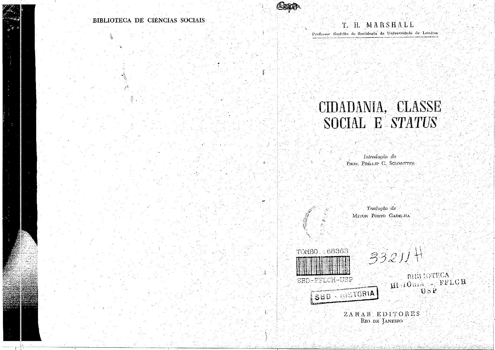 <p>BIBLIOTECA DE CIÊNCIAS SOCIAIS T. H. MARSHALL Professor de Sociologia da Universidade de Londres CIDADANIA, CLASSE SOCIAL E - STATUS Introdução do PROF. PHILLIP C. Tradução de METON PORTO GADELHA 68363 33211H - SBD - USP ZAHAR EDITORES DE</p><p>CAPÍTULO CIDADANIA E CLASSE SOCIAL convite para pronunciar estas me foi agra- dável tanto-do ponto de vista pessoal quanto profissional. Mas, enquanto minha resposta pessoal consistiu num reconhecimento sincero e modesto de uma honra que não tinha direito de esperar, minha reação profissional não foi absolutamente mo- desta. Parecia-me que a Sociologia tinha todo o direito de reclamar sua participação nessa comemoração anual de Alfred Marshall e considerei um fato auspicioso o convite feito por uma Universidade que, embora não inclua a Sociologia em seus cursos, deveria estar preparada para recebê-la como uma visitante. Pode ser, e isto é um pensamento inquietante, que a Sociologia esteja sendo julgada pela minha Se assim o estou certo de poder depender de um julgamento escru- puloso e justo da parte desta audiência e de que qualquer mérito porventura encontrado nestas conferências será atri- ao valor acadêmico da matéria enquanto qualquer coisa que lhes pareça lugar-comum ou fora de propósito será consi- derado um produto de minhas características peculiares a não serem achadas em nenhum de meus colegas. Não defenderei a relevância da matéria para a ocasião que Marshall foi um sociólogo. Pois, uma vez que èle abandonara seus primeiros amôres pela Metafísica, Ética e Psicologia, dedicou sua vida ao desenvolvimento da Economia como ciência independente e ao aperfeiçoamento de seus mé- todos próprios de investigação e análise. Marshall deliberada- mente escolheu um caminho acentuadamente diferente daquele por Adam Smith e John Stuart Mill, e o espírito que regeu esta escolha é indicado pela aula inaugural que êle pro- 1 The Marshall Lectures, Cambridge, 1949. (Conferências dedi- cadas Alfred Marshall.)</p><p>58 CIDADANIA, CLASSE SOCIAL E STATUS CIDADANIA E CLASSE SOCIAL 59 nunciou em Cambridge em 1885. Falando a crença de Comte numa Social unificada, êle disse: "Não há Seria fácil citar muitas passagens nas quais Marshall foi dúvida de que, se tal ciência existisse, a Economia encontraria, levado a falar evasivos de cuja importância êle de bom grado, abrigo sob suas asas. Mas ela não existe; nem se convencera firmemente, mas prefiro limitar minha atenção mostra indícios de sua aparição. Não faz sentido esperar por a um ensaio tema muito se aproxima daquele que escolhi ela; devemos fazer o que podemos com nossos recursos para essas conferências, Trata-se de um ensaio que Marshall portanto, defendeu a autonomia e a superioridade do mé- leu no Cambridge Reform Club, em 1873, sôbre The Future todo econômico, superioridade esta devida principalmente ao of the Working Classes; ensaio êste transcrito no volume come- emprêgo da moeda como instrumento de a qual "se morativo editado pelo Professor Há algumas diferenças constitui de tal maneira na medida de motivos que entre os textos das duas edições as quais, acredito, devem ser nenhuma outra poderia competir com atribuídas a correções feitas por Marshall após o aparecimento da versão original em Quem me relembrou êsse Marshall foi, como sabemos, um idealista; tão idealista que ensaio foi um colega, o Professor Phelps Brown, que fêz uso Keynes certa vez afirmou que Marshall "estáva muito ansioso dêle na sua aula inaugural em novembro É igual- para fazer () Atribuir-lhe, por esta razão, epíteto de mente muito adequado à minha finalidade de hoje porque sociólogo seria a última coisa a fazer. verdade que alguns Marshall, ao examinar uma do problema da igualdade sociólogos sofrido de semelhante benevolência, muitas social sob ângulo do custo econômico, chegou até a fron- vêzes em detrimento de seu desempenho intelectual, mas não teira além da qual se encontra o da Sociologia, me agrada distinguir economista do sociólogo afirmando que atravessou-a e empreendeu uma breve excursão pelo outro um deveria ser guiado pela razão enquanto o outro ser levado lado. Sua ação poderia ser interpretada como um desafio à pelo coração. Pois todo sociólogo honesto, como todo econo- Sociologia para enviar um emissário para encontrá-lo na fron- mista sincero, sabe que a escolha de fins ou ideais jaz fora do teira e ajuntar-se-lhe na tarefa de transformar uma terra-de- campo da Social e dentro do campo da Filosofia Social. ninguém num terreno comum. Sou bastante presunçoso para Mas idealismo de Marshall com que apaixonada- responder ao desafio decidindo viajar, como e soció- mente colocasse a da Economia a serviço de políticas logo, em direção a um ponto na fronteira econômica daquele ao empregá-la como uma pode ser empregada de mesmo tema geral, problema da igualdade maneira legítima para desvendar a natureza conteúdo No seu ensaio de Cambridge, Marshall lançou a questão dos problemas com os quais a política tem de lidar e para de "se há base válida para a opinião segundo a qual pro- avaliar a eficácia relativa de alternativas para a realização de gresso das classes tem limites que não podem determinados objetivos, E Marshall tinha consciência de que; ser ultrapassados". "O problema", disse "não é se, em úl- mesmo no caso daqueles que seriam naturalmente conside- tima análise, todos os homens serão iguais certamente que não rados problemas econômicos, a Ciência da Economia, por si serão mas se progresso não pode prosseguir firmemente, só, não era capaz de prestar êstes dois serviços. Pois êles mesmo que vagarosamente, até que, devido à ocupação ao implicavam a consideração de fôrças sociais que estão imunes menos, todo homem será um cavalheiro. Afirmo que pode e ao ataque da fita métrica do economista. Foi, talvez, por êste que isto Sua fé se baseava na crença de que mot