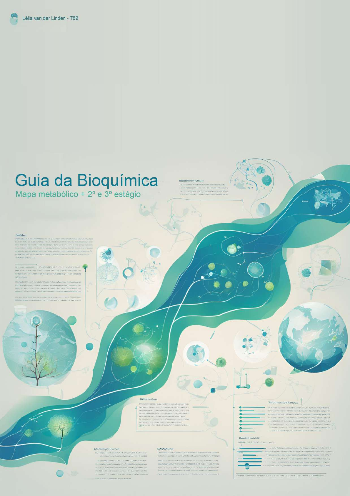 <p>Mapa Metabólico – Lélia van der Linden (T89)</p><p>1</p><p>GUIA DA BIOQUÍMICA</p><p>Informações:</p><p>Este material de resumo foi criado para servir como guia de estudo para os alunos que cursam a disciplina de</p><p>Bioquímica na Universidade Federal de Campina Grande (UFCG). Ele foi desenvolvido ao longo do período 23.2 com o</p><p>objetivo de guiar os colegas de sala, resultando em várias versões ao longo do tempo. A versão presente é a definitiva</p><p>e está ordenada conforme o cronograma dado em sala.</p><p>O conteúdo deste resumo baseia-se nas aulas ministradas pelo professor Adriano Azevedo de Mello e nas</p><p>informações do livro "Princípios de Bioquímica" do Lehninger. Este material foi produzido por uma aluna e destina-se</p><p>a complementar os estudos, não substituindo a participação nas aulas ou a leitura do livro-texto. Ele é adequado para</p><p>o estudo do mapa metabólico e do 2º e 3º estágio.</p><p>Esperamos que este resumo seja útil e contribua para o sucesso acadêmico de todos os alunos.</p><p>Mapa Metabólico – Lélia van der Linden (T89)</p><p>2</p><p>SUMÁRIO</p><p>PARTE A – Conceitos importantes</p><p>1) ENZIMAS ................................................................................3</p><p>2) TRANSPORTAORES DE GLICOSE (GLUTs) ..................................4</p><p>PARTE B – Sinalização Celular por Mensageiros Químicos</p><p>1) VIA DO ADENILATO CICLASE (AC) .............................................5</p><p>2) VIA DA FOSFOLIPASE C (PLC) ....................................................7</p><p>3) VIA DA TIROSINA CINASE (TC) ..................................................8</p><p>4) VIA DOS HORMÔNIOS ESTEROIDES .........................................9</p><p>PARTE C – Vias Metabólicas</p><p>1) VIA GLICOLÍTICA (GLICÓLISE) ...................................................9</p><p>2) DIGESTÃO, ABSORÇÃO E TRANSPORTE DE CARBOIDRATOS .....15</p><p>2.1) Catabolismo da Sacarose/Frutose ......................................15</p><p>2.2) Catabolismo da Lactose/Galactose ....................................17</p><p>3) FERMENTAÇÃO .....................................................................19</p><p>3.1) Fermentação Alcoólica .......................................................19</p><p>3.2) Fermentação Láctica ..........................................................20</p><p>4) CICLO DE CORI .......................................................................22</p><p>4.1) Ciclo da Glicose-Alanina .....................................................22</p><p>4.2) Ciclo de Cori .......................................................................23</p><p>5) CICLO DE KREBS E FOSFORILAÇÃO OXIDATIVA ........................24</p><p>5.1) Ciclo de Krebs .....................................................................24</p><p>5.2) Cadeia Transp. de Elétrons e a Fosforilação Oxidativa ........25</p><p>5.3) Lançadeira do glicerol-3-fosfato .........................................26</p><p>5.4) Reações Anapleróticas .......................................................27</p><p>5.5) Vitaminas e o Ciclo de Krebs ...............................................28</p><p>6) VIAS DE REGULAÇÃO .............................................................29</p><p>6.1) Regulação na glicólise ........................................................29</p><p>6.2) Regulação na glicólise + gliconeogênese ............................31</p><p>6.3) Regulação no Ciclo de Krebs ...............................................34</p><p>7) DESVIOS DA GLICÓLISE ..........................................................35</p><p>7.1) Via das pentoses fosfato + via da glutationa peroxidase .....35</p><p>7.2) Ciclo de Rapaport-leubering e a curva de dissociação da oxi-</p><p>hemoglobina .................................................................................37</p><p>8) DIABETES ..............................................................................38</p><p>8.1) Exames laboratoriais ..........................................................39</p><p>8.2) Liberação da insulina pelo pâncreas ...................................41</p><p>8.3) Tratamento ........................................................................42</p><p>9) OXIDAÇÃO DOS LIPÍDEOS .....................................................44</p><p>9.1) Transporte e ativação de ácidos graxos de cadeia longa .....44</p><p>9.2) Ciclo da carnitina: etapa 1 ..................................................47</p><p>9.3) Ciclo da carnitina: etapa 2 e 3 .............................................48</p><p>9.4) β-oxidação .........................................................................50</p><p>9.4.1) β-oxidação de AG Saturados de Cadeia Longa com</p><p>Número Par de Carbonos ..............................................................51</p><p>9.4.2) β-oxidação de AG Insaturados de Cadeia Longa com</p><p>Número Par de Carbonos ..............................................................52</p><p>9.4.3) β-oxidação de AG de Cadeia Longa com Número Ímpar</p><p>de Carbonos ..................................................................................53</p><p>9.5) Regulação da β -oxidação ..................................................53</p><p>9.6) Oxidação de ácidos graxos de cadeia muito longa ..............55</p><p>9.7) Produção de corpos cetônicos ...........................................56</p><p>9.8) ω-oxidação .........................................................................58</p><p>10) FORMAÇÃO E DEGRADAÇÃO DO GLICOGÊNIO ....................59</p><p>10.1) Degradação do glicogênio ................................................60</p><p>10.2) Síntese do glicogênio .......................................................60</p><p>10.3) Regulação da glicogênio-sintase ......................................61</p><p>10.4) Regulação da glicogen