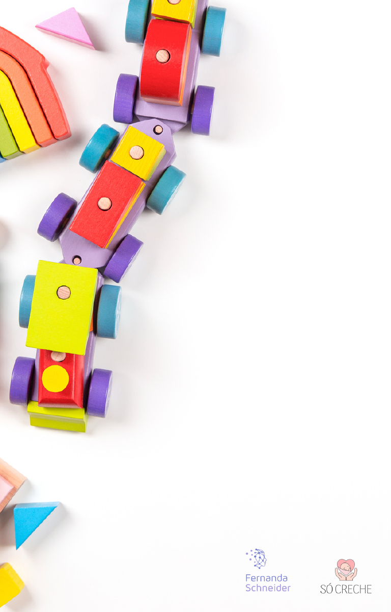 <p>Bebês</p><p>(zero a 1 ano e 6 meses)</p><p>Ç</p><p>EDUCAÇÃO</p><p>INFANTIL</p><p>A decisão de organizar um ebook para a</p><p>creche, partiu de uma discussão sobre a</p><p>importância de associar a Base Comum</p><p>Curricular e Desenvolvimento Infantil.</p><p>Enfrentamos alguns dilemas, uma atividade</p><p>nos serve para vários campos de experiência e</p><p>para desenvolver várias habilidades e como</p><p>colocaríamos tudo isso em cada uma das</p><p>atividades? Isso não foi possível!</p><p>Então queremos deixar aqui um alerta muito</p><p>importante, OBSERVE OS BEBÊS e escolha</p><p>atividade de acordo com os interesses deles.</p><p>Este não é um ebook de “uma atividade por</p><p>dia”, mas de ideias para quando observar</p><p>algum interesse nos bebês e não sabe como</p><p>ampliar esses interesses ou dar suporte para a</p><p>investigação do bebê.</p><p>Reflexão</p><p>Um forte abraço!</p><p>Relatos de aplicação seguido de arquivos com fotos e/ou</p><p>vídeos.</p><p>Ou uma mini-história. Segue exemplo abaixo:</p><p>DIREITO DE APRENDIZAGEM</p><p>Brincar; Conhecer-se.</p><p>HABILIDADES ESSENCIAIS DA BNCC</p><p>Perceber as possibilidades e os limites de seu corpo nas</p><p>brincadeiras e interações das quais participa (EI01EO02).</p><p>ATIVIDADE</p><p>Brincar diante do espelho, observando os próprios gestos ou</p><p>imitando outros.</p><p>DICAS DE APLICAÇÃO</p><p>Organizar os bebês sentados ou deitados, conforme sua faixa</p><p>etária e possibilitar um a um a oportunidade de manusear o</p><p>espelho. Quando muito pequeno o educador mesmo pode</p><p>manusear e dialogar com o bebê, quando a criança for maior,</p><p>oferecer em suas mãos e utilizar deste momento para a</p><p>exploração e interação. (Registre tudo com fotos e vídeos, pois</p><p>dessa forma poderá elaborar uma documentação pedagógica</p><p>rica, ou elaborar uma mini-história).</p><p>AVALIAÇÃO/DOCUMENTAÇÃO PEDAGÓGICA</p><p>EDUCAÇÃO INFANTIL</p><p>Bebês (zero a 1 ano e 6 meses)</p><p>no espelho - mini História</p><p>A professora ao apresentar o espelho para Adaiane a observa. com</p><p>entusiasmo, a mesma pega o espelho com suas mãozinhas e o manuseia. Vira e</p><p>revira.</p><p>Quando se depara com sua imagem, ela a contempla, e logo a procura atrás</p><p>do espelho. Torna a se observar e através do espelho sorri ao encontrar pela</p><p>imagem refletida da sua professora..</p><p>Um momento único para exercitar a empatia, desenvolver seu cérebro e</p><p>autoconhecer-se.</p><p>EDUCAÇÃO INFANTIL</p><p>Bebês (zero a 1 ano e 6 meses)</p><p>Relatos de aplicação seguido de arquivos com fotos e/ou</p><p>vídeos.</p><p>Ou uma mini-história. Esta pode ficar exposta próximo da sala</p><p>ou da entrada da escola onde os pais possam ver e ler.</p><p>DIREITO DE APRENDIZAGEM</p><p>Participar; Conhecer-se.</p><p>HABILIDADES ESSENCIAIS DA BNCC</p><p>(EI01EO02) Perceber as possibilidades e os limites de seu corpo</p><p>nas brincadeiras e interações das quais participa.</p><p>ATIVIDADE</p><p>Circuito motor com desafios</p><p>DICAS DE APLICAÇÃO</p><p>Organizar um circuito motor, de preferência em espaço fora da</p><p>sala de aula. Prepara tudo adequadamente a idade das crianças.</p><p>Desafios dos quais tenham dificuldades moderadas.</p><p>AVALIAÇÃO/DOCUMENTAÇÃO PEDAGÓGICA</p><p>EDUCAÇÃO INFANTIL</p><p>Bebês (zero a 1 ano e 6 meses)</p><p>Relatos de aplicação seguido de arquivos com fotos e/ou</p><p>vídeos.</p><p>Ou uma mini-história. Esta pode ficar exposta próximo da sala</p><p>ou da entrada da escola onde os pais possam ver e ler.</p><p>DIREITO DE APRENDIZAGEM</p><p>Explorar; Conhecer-se.</p><p>HABILIDADES ESSENCIAIS DA BNCC</p><p>(EI01EO05) Reconhecer seu corpo e expressar suas sensações em</p><p>momentos de alimentação, higiene, brincadeira e descanso.</p><p>ATIVIDADE</p><p>Explorando a cesta de frutas da Chapeuzinho Vermelho</p><p>DICAS DE APLICAÇÃO</p><p>Prepare uma cesta com frutas diversas, algumas inteiras, das</p><p>mesmas pela metade, outras já descascadas, umas picadas,</p><p>cortadas, amassadas, picadas. Explorem com o tato e com o</p><p>paladar.</p><p>AVALIAÇÃO/DOCUMENTAÇÃO PEDAGÓGICA</p><p>EDUCAÇÃO INFANTIL</p><p>Bebês (zero a 1 ano e 6 meses)</p><p>Relatos de aplicação seguido de arquivos com fotos e/ou</p><p>vídeos.</p><p>Ou uma mini-história. Esta pode ficar exposta próximo da sala</p><p>ou da entrada da escola onde os pais possam ver e ler.</p><p>DIREITO DE APRENDIZAGEM</p><p>Expressar; Conhecer-se.</p><p>HABILIDADES ESSENCIAIS DA BNCC</p><p>(EI01EO01) Perceber que suas ações têm efeitos nas outras</p><p>crianças e nos adultos.</p><p>ATIVIDADE</p><p>Cenário na casa da vovó; lanche especial com biscoitos e chá</p><p>DICAS DE APLICAÇÃO</p><p>Visitar a casa de uma avó. De preferência que seja uma avó de</p><p>um aluno da própria sala de aula. Desfrutem de um momento</p><p>agradável com esta. Tomem um chá e uns biscoitos da vovó. Se</p><p>for possível, façam a receita juntamente com a vovó.</p><p>AVALIAÇÃO/DOCUMENTAÇÃO PEDAGÓGICA</p><p>EDUCAÇÃO INFANTIL</p><p>Bebês (zero a 1 ano e 6 meses)</p><p>Relatos de aplicação seguido de arquivos com fotos e/ou</p><p>vídeos.</p><p>Ou uma mini-história. Esta pode ficar exposta próximo da sala</p><p>ou da entrada da escola onde os pais possam ver e ler.</p><p>DIREITO DE APRENDIZAGEM</p><p>Participar; Conhecer-se.</p><p>HABILIDADES ESSENCIAIS DA BNCC</p><p>Reconhecer seu corpo e expressar suas sensações em</p><p>momentos de alimentação, higiene, brincadeira e descanso</p><p>(EI01EO05).</p><p>ATIVIDADE</p><p>Vivenciar momentos de relaxamento e descanso. Massagem</p><p>shantala.</p><p>DICAS DE APLICAÇÃO</p><p>Prepare o ambiente de forma aconchegante, ajuste a iluminação</p><p>de modo confortável. Pode usar um colchão ou um trocador.</p><p>Deixe a temperatura do ambiente agradável. Não use anéis ou</p><p>pulseiras para que não atrapalhar. Entã
