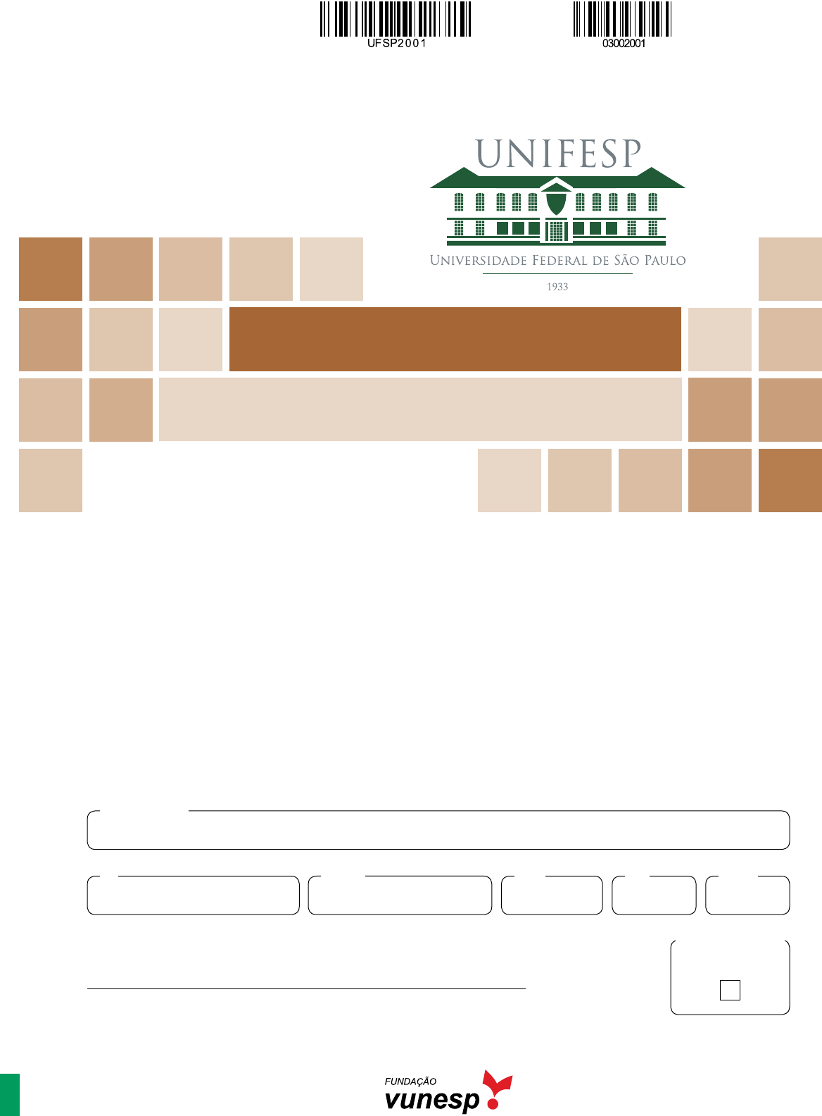 <p>• Confira seus dados impressos neste caderno.</p><p>• Nesta prova, utilize caneta de tinta preta.</p><p>• Assine apenas no local indicado. Será atribuída nota zero à questão que apresentar nome, rubrica, assinatura,</p><p>sinal, iniciais ou marcas que permitam a identificação do candidato.</p><p>• Esta prova contém 20 questões discursivas.</p><p>• A resolução e a resposta de cada questão devem ser apresentadas no espaço correspondente. Não serão</p><p>consideradas respostas sem as suas resoluções, nem as apresentadas fora do local indicado.</p><p>• Encontram-se neste caderno formulários, que poderão ser úteis para a resolução de questões.</p><p>• Esta prova terá duração total de 4h e o candidato somente poderá sair do prédio depois de transcorridas 2h,</p><p>contadas a partir do início da prova.</p><p>• Os últimos três candidatos deverão se retirar juntos da sala.</p><p>• Ao final da prova, antes de sair da sala, entregue ao fiscal o Caderno de Questões.</p><p>Vestibular 2021</p><p>Área de Biológicas e Exatas</p><p>002. prova de conhecimentos específicos</p><p>ausente</p><p>usO eXClusiVO DO FisCal</p><p>Assinatura do candidato</p><p>Nome do candidato</p><p>Prédio Sala CarteiraInscriçãoRG</p><p>2UFSP2001 | 002-CE-BiológicasExatas</p><p>3 UFSP2001 | 002-CE-BiológicasExatas</p><p>resolução e resposta</p><p>RASCUNHO</p><p>Questão 01</p><p>Algumas amebas podem causar doenças ao ser humano. A Entamoeba histolytica geralmente convive bem com</p><p>nossa espécie, não causando disfunções orgânicas, mas, em determinadas condições, ela se torna patogênica e causa</p><p>a amebíase, que pode provocar diarreia, anemia e até a morte.</p><p>(www.invivo.fiocruz.br. Adaptado.)</p><p>a) Caso a ameba Entamoeba histolytica fosse inserida em um recipiente com água marinha, ela não sobreviveria.</p><p>Por que isso ocorre?</p><p>b) Cite a fase do ciclo de vida da Entamoeba histolytica na qual ocorre o contágio do ser humano. Explique por que</p><p>pessoas com quadros mais graves de amebíase podem desenvolver anemia.</p><p>4UFSP2001 | 002-CE-BiológicasExatas</p><p>resolução e resposta</p><p>RASCUNHO</p><p>Questão 02</p><p>A síndrome de Kartagener é um distúrbio genético que impede a síntese da proteína dineína, necessária à função dos</p><p>microtúbulos. Sem a dineína, algumas estruturas celulares não se movimentam, como aquelas presentes nas vias respi-</p><p>ratórias, nas paredes da tuba uterina e nos espermatozoides, causando prejuízos à eliminação de muco pelos brônquios</p><p>e à fertilidade masculina e feminina.</p><p>a) Cite as duas estruturas celulares, uma presente nas vias respiratórias e outra nos espermatozoides, que têm o mo-</p><p>vimento prejudicado pela falta da dineína.</p><p>b) Por que uma mulher portadora da síndrome de Kartagener tem maior chance de desenvolver uma gravidez na tuba</p><p>uterina? Explique como a medicina reprodutiva pode fazer com que um homem com essa síndrome seja pai.</p><p>5 UFSP2001 | 002-CE-BiológicasExatas</p><p>resolução e resposta</p><p>RASCUNHO</p><p>Questão 03</p><p>Ao longo da diferenciação de uma hemácia a partir do eritroblasto, a célula sintetiza hemoglobinas, perde seu núcleo</p><p>e organelas e migra para a corrente sanguínea. No citoplasma de uma hemácia humana adulta existem cerca de</p><p>250 milhões de moléculas de hemoglobina.</p><p>a) Cite a organela responsável pela produção de hemoglobina no eritroblasto. Em que local do corpo humano adulto</p><p>são produzidos os eritroblastos?</p><p>b) Suponha um experimento em que uma hemácia adulta foi colocada em um tubo de ensaio e mantida fechada em</p><p>contato com certo volume de gás oxigênio. O volume de gás oxigênio foi monitorado, visando verificar o consumo</p><p>desse gás na síntese de ATP. Considere o gráfico, que ilustra três possíveis variações no consumo de gás oxigênio</p><p>durante o experimento.</p><p>Qual curva do gráfico representa o consumo de gás oxigênio utilizado no processo metabólico realizado pela hemá-</p><p>cia adulta para sintetizar ATP? Justifique sua resposta.</p><p>6UFSP2001 | 002-CE-BiológicasExatas</p><p>resolução e resposta</p><p>RASCUNHO</p><p>Questão 04</p><p>O incêndio no Pantanal está devastando a fazenda São Francisco do Perigara, santuário que concentra 15% da</p><p>população livre da espécie de arara-azul Anodorhynchus hyacinthinus, ameaçada de extinção. A propriedade já perdeu</p><p>70% dos cerca de 25 mil hectares, quase tudo vegetação nativa. O motivo da concentração de araras na fazenda era</p><p>a associação entre esses animais, o acuri (Attalea phalerata, tipo de palmeira que produz frutos com polpa) e os bois.</p><p>Antes das queimadas era comum ver as araras perto dos bois para se alimentar. O gado vai para a mata, come a polpa</p><p>do acuri e deixa o fruto disperso no chão, que é comido pelas araras-azuis.</p><p>O incêndio está provocando um impacto enorme sobre a flora e a fauna do Pantanal e poderá comprometer a fertili-</p><p>dade do solo, com prejuízo à produção agrícola local e à produção das plantas forrageiras que alimentam o gado.</p><p>(Folha de S.Paulo, 17.08.2020. Adaptado.)</p><p>a) Cite a relação ecológica que ocorre entre o gado e as araras-azuis. Na teia alimentar da qual essas espécies fazem</p><p>parte, qual é o nível trófico ocupado pelas araras-azuis?</p><p>b) O fogo interrompe drasticamente quase todas as etapas do ciclo do nitrogênio e, consequentemente, reduz a produ-</p><p>ção agrícola. Explique como o fogo interrompe as etapas do ciclo do nitrogênio e qual a relação disso com a baixa</p><p>produção agrícola.</p><p>7 UFSP2001 | 002-CE-BiológicasExatas</p><p>resolução e resposta</p><p>RASCUNHO</p><p>Questão 05</p><p>Analise o heredograma no qual estão indicados os tipos sanguíneos do casal Gustavo e Talita e de sua filha Aline, de</p><p>acord