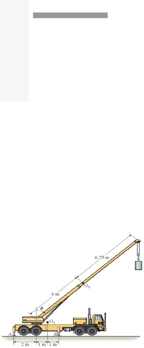 <p>Questão 1/10 - Estática dos corpos</p><p>Para desenvolver projetos mecânicos, os engenheiros precisam determinar com</p><p>precisão aceitável uma série de parâmetros e representá-los em um diagrama de</p><p>corpo livre. Entre os itens listados abaixo, qual NÃO é necessário considerar para a</p><p>elaboração de um DCL?</p><p>(conteúdo da Aula 3 - Tema 1)</p><p>A forças internas desenvolvidas no corpo;</p><p>Você assinalou essa alternativa (A)</p><p>B forças externas atuantes sobre o corpo;</p><p>C momentos de binário gerados pelos apoios;</p><p>D reações ocorrendo em pontos de contato com outros corpos;</p><p>E Cotas com as dimensões do problema</p><p>Questão 2/10 - Estática dos corpos</p><p>Na construção civil é comum o uso de guindastes para elevação e manuseio de</p><p>cargas pesadas. A operação inadequada deste tipo de equipamento pode levar a</p><p>sérios acidentes, como o tombamento deste tipo de máquina. O caminhão</p><p>representado na Figura 1 é simetricamente apoiado no solo por duas extensões</p><p>laterais em A e duas em B, descarregando sua suspensão e dando estabilidade</p><p>contra o tombamento. Se o guindaste e o caminhão possuem massa de 20000 kg e</p><p>centro de massa em G1�1, e a lança possui massa de 2100 kg e centro de massa</p><p>em G2�2, determine as reações verticais em cada um dos quatro apoios no solo</p><p>em função do ângulo de lança ?? quando a lança estiver suportando uma carga de</p><p>duas toneladas. Assinale a alternativa que corresponde ao ângulo crítico em que o</p><p>guindaste inicia o tombamento, ou seja, considerando Ay = 0�� = 0.</p><p>(conteúdo da Aula 3 tema 2)</p><p>A θ = 35,4°� = 35,4°</p><p>B θ = 49,5°� = 49,5°</p><p>Você assinalou essa alternativa (B)</p><p>C θ = 58,8°� = 58,8°</p><p>D θ = 75,3°� = 75,3°</p><p>E θ = 90°� = 90°</p><p>Questão 3/10 - Estática dos corpos</p><p>A biela é um componente mecânico utilizado para transformar o movimento linear</p><p>alternativo em circular contínuo. Ela conecta o pistão ao virabrequim e sua principal</p><p>carga é quanto à flexão. No projeto de um motor à combustão é necessário</p><p>determinar seu comprimento e área da seção transversal a fim de transmitir o</p><p>movimento e suportar as cargas aplicadas. Considerando a figura abaixo,</p><p>determine o comprimento AB da biela formulando primeiro um vetor posição</p><p>cartesiano A a B e depois determinando sua intensidade.</p><p>(conteúdo da Aula 1 - Tema 4)</p><p>A |rAB| = 375 mm|���| = 375 ��</p><p>B |rAB| = 396,9 mm|���| = 396,9 ��</p><p>Você assinalou essa alternativa (B)</p><p>C |rAB| = 411,7 mm|���| = 411,7 ��</p><p>D |rAB| = 420,8 mm|���| = 420,8 ��</p><p>E |rAB| = 424,6 mm|���| = 424,6 ��</p><p>Questão 4/10 - Estática dos corpos</p><p>Diagramas de corpo livre são utilizados para modelar e resolver problemas de</p><p>mecânica. Para a construção correta de um diagrama de corpo livre, o que é</p><p>necessário incluir no mesmo?</p><p>(conteúdo da Aula 3 tema 1)</p><p>A apenas as dimensões do corpo, forças externas e momentos de binário</p><p>desconhecidos que atuam sobre o corpo.</p><p>B apenas a forma e dimensões do corpo, forças externas, forças internas,</p><p>momentos de binário conhecidos e desconhecidos que atuam sobre o corpo.</p><p>C apenas a forma e dimensões do corpo, forças externas, forças internas e</p><p>momentos de binário conhecidos que atuam sobre o corpo.</p><p>D apenas a forma e dimensões do corpo, forças externas e momentos de binário</p><p>conhecidos e desconhecidos que atuam sobre o corpo.</p><p>Você assinalou essa alternativa (D)</p><p>E apenas as forças externas e momentos de binário desconhecidos que atuam</p><p>sobre o corpo.</p><p>Questão 5/10 - Estática dos corpos</p><p>Determine a intensidade da força resultante que atua sobre o pino e sua direção,</p><p>medida no sentido horário a partir do eixo positivo.</p><p>(Você pode resolver esta questão pela lei dos senos e cossenos vistas na aula 1</p><p>tema 2 ou através do cálculo das forças resultantes em x e y assunto</p><p>também visto na aula 1 tema 2)</p><p>A Fr = 433,09N e θ=22°�=22°</p><p>B Fr = 443,09 N e θ=14,6°�=14,6°</p><p>C Fr = 338,2 N e θ=−11,3°�=−11,3°</p><p>Você assinalou essa alternativa (C)</p><p>D Fr = 338,2 N e θ=14,6°�=14,6°</p><p>E Fr = 585,4 N e θ=14,6°�=14,6°</p><p>Questão 6/10 - Estática dos corpos</p><p>Trabalhadores que precisam acessar alturas elevadas utilizam plataformas,</p><p>conforme a da figura a seguir:</p><p>A plataforma possui um peso de 1,25 kN e centro de gravidade em G1. Sabendo</p><p>que ela deve suportar uma carga máxima de 2 kN colocada no ponto G2,</p><p>determine o menor contrapeso W que deve ser colocado em B de modo a evitar</p><p>que a plataforma tombe. Dica: quando a plataforma está na iminência de tombar,</p><p>perde-se o contato entre roda em C e o solo.</p><p>Analise as alternativas abaixo e assinale a correta.</p><p>(conteúdo da Aula 3 tema 2)</p><p>A W = 196,5 N</p><p>B W = 393 N</p><p>Você assinalou essa alternativa (B)</p><p>C W = 450 N</p><p>D W = 528,2 N</p><p>E W = 584,7 N</p><p>Questão 7/10 - Estática dos corpos</p><p>Se o momento de binário atuando nos tubos tem intensidade de 400Nm,</p><p>determine a intensidade da força F vertical aplicada em cada chave.</p><p>(Conteúdo da Aula 2 tema 4)</p><p>A F = 856,4 N</p><p>B F = 938,5 N</p><p>C F = 992,3 N</p><p>Você assinalou essa alternativa (C)</p><p>D F = 1082,4 N</p><p>E F = 1158,7 N</p><p>Questão 8/10 - Estática dos corpos</p><p>O comprimento sem deformação da mola AB é de 2m. Com o bloco mantido na</p><p>posição de equilíbrio mostrada, determine a massa dele em D.</p><p>(Conteúdo da Aula 2 tema 1)</p><p>A M = 14,6 kg</p><p>B M = 13,8 kg</p><p>C M = 12,8 kg</p><p>Você assinalou essa alternativa (C)</p><p>D M = 11,2 kg</p><p>E 