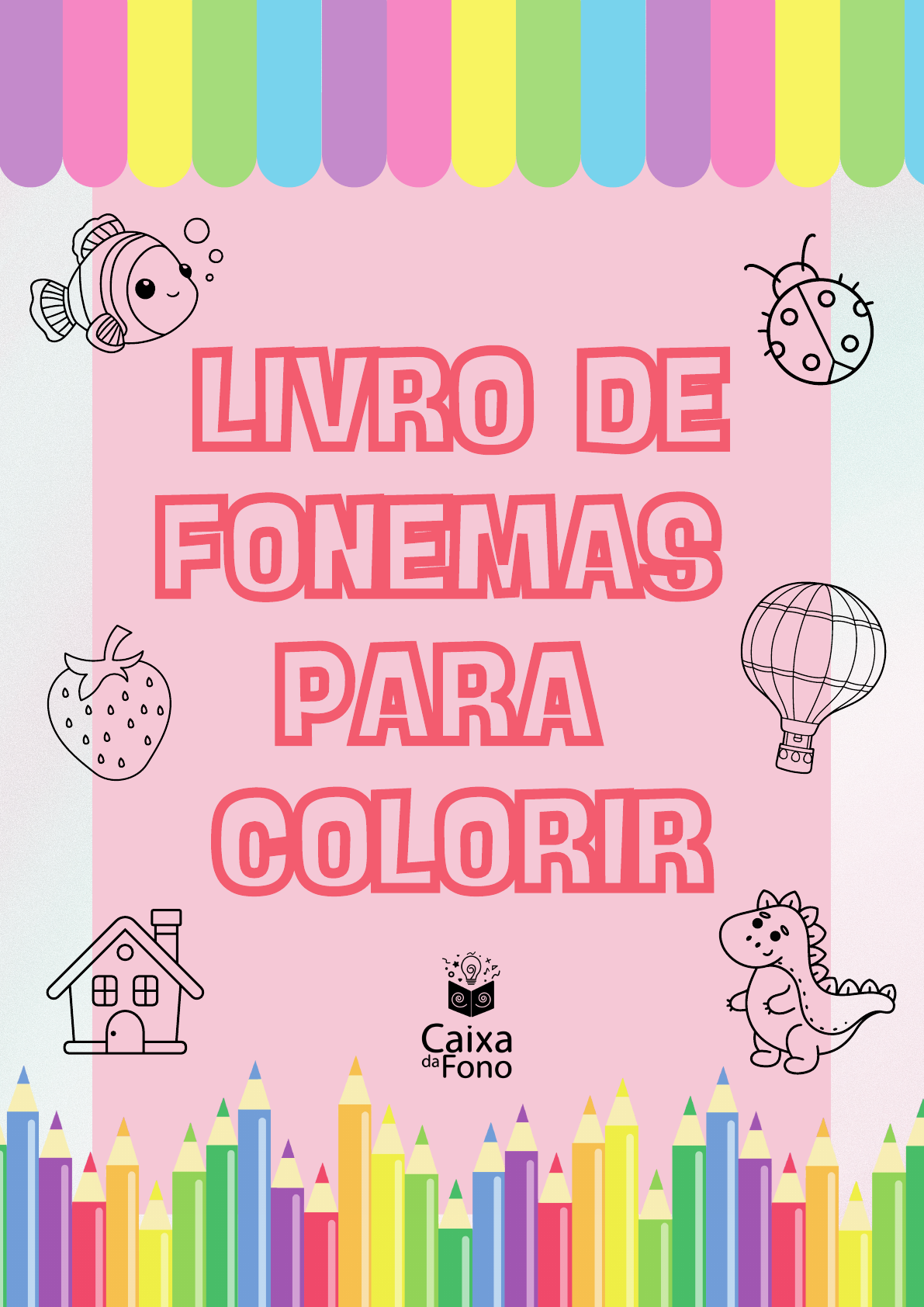 <p>LIVRO DE</p><p>FONEMAS</p><p>PARA</p><p>COLORIR</p><p>LIVRO DE</p><p>FONEMAS</p><p>PARA</p><p>COLORIR</p><p>BANANA, BOLSA, BALÃO, BOCA, BÚSSOLA, BALEIA,</p><p>BOMBA, BALA, BOTA, BONECA</p><p>PANELA, PATO, PORTA, PINCEL, PENTE, POTE,</p><p>PRINCESA, PINGUIM, PEIXE, PÃO</p><p>CADEIRA, CORAÇÃO, CADERNO, CANETA, CAMISA,</p><p>CADEADO, CAMA, CUBO, CANECA, CARACOL</p><p>GOTA, GORRO, GALINHA, GORILA, GATO, GANSO,</p><p>GARFO, GOLFINHO, GAROTO, GUARDA-CHUVA</p><p>DADO, DIAMANTE, DINOSSAURO, DENTE, DUCHA,</p><p>DOZE, DOIS, DUENDE, DOMINÓ, DEDO</p><p>TARTARUGA, TAPETE, TÊNIS, TAMBOR, TIGRE,</p><p>TUBARÃO, TERNO, TRÊS, TUCANO, TESOURO</p><p>LUA, LÍNGUA, LOBO, LIXO, LEÃO, LAÇO, LÂMPADA,</p><p>LÁPIS, LANTERNA, LIMÃO</p><p>MOCHILA, MESA, MACACO, MELANCIA, MILHO,</p><p>MOTO, MEIA, MOCHILA, MORANGO, MAÇÃ, MACACO.</p><p>NOITE, NUVEM, NÓ, NARIZ, NOVENTA, NOVELO,</p><p>NOIVA, NINHO, NAVIO, NOVE</p><p>SAPO, SOL, SACOLA, SAIA, SAPATO, SINO, SOFÁ,</p><p>SETA, SETE, SORVETE</p><p>JOGADOR, JACARÉ, JANELA, GELADEIRA, GIRAFA,</p><p>JIPE, JOIA, GELATINA, JARRO, JOANINHA</p><p>FADA, FOCA, FACA, FOGO, FEIJÃO, FOGÃO,</p><p>FOGUETE, FERRO, FOLHA, FLOR</p><p>VESTIDO, VACA, VELA, VACINA, VASO, VULCÃO,</p><p>VASSOURA, VOLANTE, VOVÓ, VIOLÃO</p><p>CACHECOL, XALE, CHUVA, XILOFONE, XÍCARA,</p><p>XAROPE, XERIFE, XAMPU</p><p>RATO, CARRO, ARROZ, CACHORRO, BORRACHA, RUA,</p><p>CHURRASQUEIRA, BARRACA, RIO, CORRER</p><p>PIRATA, ARANHA, PIRULITO, LARANJA, BAILARINA,</p><p>MÁSCARA, ORELHA, ARARA, PÊRA, BERINJELA</p><p>ZEBRA, ZÍPER, ZANGADA, ZANGÃO, CASA,</p><p>ZEPELIM, ZOOLÓGICO</p><p>Gratidão pela</p><p>sua compra!</p><p>Gratidão pela</p><p>sua compra!</p><p>Esse material foi produzido com cuidado, carinho</p><p>e dedicação pela Fonoaudióloga e Publicitária</p><p>Vanessa Monique.</p><p>Dúvidas e sugestões podem ser enviadas para as</p><p>redes sociais:</p><p>Instagram: @caixadafono</p><p>E-mail: caixadafono@gmail.com</p><p>AVISO DE DIREITOS AUTORAIS:</p><p>ESTE EBOOK É PROTEGIDO POR DIREITOS</p><p>AUTORAIS E DESTINADO APENAS PARA USO</p><p>PESSOAL. A DISTRIBUIÇÃO GRATUITA OU</p><p>COMERCIAL DESTE MATERIAL, TOTAL OU</p><p>PARCIAL, É ESTRITAMENTE PROIBIDA SEM</p><p>AUTORIZAÇÃO PRÉVIA POR ESCRITO DO</p><p>AUTOR/EDITOR.</p><p>http://www.instagram.com/caixadafono</p><p>mailto:caixadafono@gmail.com</p>