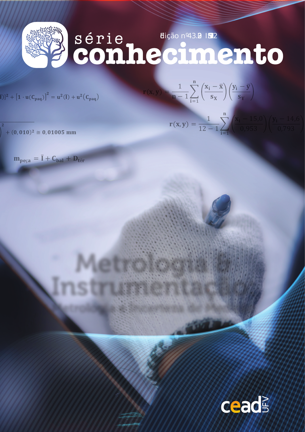 <p>𝐫(𝐱, 𝐲) =</p><p>1</p><p>12 − 1</p><p>�</p><p>𝐱𝐢 − 15,0</p><p>0,953</p><p>𝐲𝐢 − 14,6</p><p>0,793 = +0,72</p><p>𝐧</p><p>𝐢=1</p><p>𝐫(𝐱,𝐲) =</p><p>1</p><p>𝐧 − 1</p><p>�</p><p>𝐱𝐢 − 𝐱�</p><p>𝐬𝐗</p><p>𝐲𝐢 − 𝐲�</p><p>𝐬𝐘</p><p>𝐧</p><p>𝐢=1</p><p>𝐦𝐩𝐞ç𝐚 = �̅� + 𝐂𝐛𝐚𝐥 + 𝐃𝐭é𝐫</p><p>Álvaro Messias Bigonha Tibiriçá</p><p>Alexandre Martins Reis</p><p>Edição nº 43. 2023 ∞ ISSN 2179-1732</p><p>Metrologia &</p><p>Instrumentação:</p><p>Metrologia e Incerteza de Medição</p><p>43</p><p>Reitor: Demetrius David da Silva</p><p>Vice-Reitora: Rejane Nascentes</p><p>Diretor: Francisco de Assis de C. Pinto</p><p>Campus Universitário, s/n. - Viçosa/MG.</p><p>CEP: 36570-900 - Telefone: (31) 3612 1251</p><p>e-mail: serie.conhecimento@ufv.br</p><p>A Série Conhecimento é uma publicação seriada e on-line, editada pela Coordenadoria de Educação</p><p>Aberta e a Distância, por tempo indeterminado e de forma independente, tratando de assuntos e</p><p>temas variados, com o objetivo de constituir material de apoio a disciplinas do ensino médio, dos</p><p>cursos técnicos, dos cursos de graduação e dos programas de pós-graduação lato sensu e stricto</p><p>sensu, nas modalidades presencial e a distância, da Universidade Federal de Viçosa (UFV).</p><p>Conselho Editorial: Donizete Aparecido Batista; Eduardo França Castro; Esther Giacomini Silva;</p><p>Francisco de Assis de Carvalho Pinto; João Paulo Viana Leite; Renata Cassia Campos; Vinicius Catão</p><p>De Assis Souza</p><p>Autores: Álvaro Messias Bigonha Tibiriçá e Alexandre Martins Reis</p><p>Identidade Visual e diagramação: Pedro Eni Lourenço Rodrigues</p><p>Foto Capa: Lifestylememory on Freepik.com</p><p>Revisão linguística:</p><p>Ficha catalográfica elaborada pela Seção de Catalogação e Classificação</p><p>da Biblioteca Central da Universidade Federal de Viçosa – Campus Viçosa</p><p>T553m</p><p>2023</p><p>Tibiriçá, Álvaro Messias Bigonha, 1978-</p><p>Metrologia e Instrumentação [recurso eletrônico]: metrologia e</p><p>incerteza de medição / Álvaro Messias Bigonha Tibiriçá, Alexandre</p><p>Martins Reis -- Viçosa, MG: UFV, CEAD, 2023.</p><p>1 apostila eletrônico (43 p.): il. color. -- (Conhecimento; ISSN 2179-</p><p>1732; n. 43)</p><p>Disponível em: https://serieconhecimento.cead.ufv.br/</p><p>Bibliografia: p. 43.</p><p>1. Metrologia. 2. Medição. 3. Modelos matemáticos. I. Reis, Alexandre</p><p>Martins, 1973-. II. Universidade Federal de Viçosa. Coordenadoria de</p><p>Educação Aberta e à Distância. III. Título. IV. Série.</p><p>CDD 22. ed. 620.0044</p><p>Bibliotecária responsável: Alice Regina Pinto Pires - CRB-6/2523</p><p>Responsabilidade legal pelo conteúdo, direitos autorais e incentivo à reprodução</p><p>Todo o conteúdo dos textos submetidos e publicados na Série Conhecimento é de inteira responsabilidade de</p><p>seus autores, não cabendo à Série responder por qualquer implicação legal.</p><p>Como todo o conteúdo publicado pela Revista é de acesso público e gratuito, tendo como finalidades o debate</p><p>e a divulgação ampla do conhecimento, é permitida e incentivada sua reprodução com fins exclusivamente</p><p>educacionais, culturais, científicos e não-comerciais, desde que citados seus autores com a referência biblio-</p><p>gráfica completa da publicação na Série Conhecimento.</p><p>Este obra está licenciado com uma Licença</p><p>Creative Commons Atribuição Não Comercial Compartilha Igual 4.0 Internacional.</p><p>mailto:serie.conhecimento%40ufv.br?subject=</p><p>https://orcid.org/0000-0002-3300-1988</p><p>https://orcid.org/0009-0000-4953-7050</p><p>https://www.freepik.com/free-photo/close-up-female-engineer-hand-controling-robot-arm-welding-machine-industrial-40-modern-factory-backgroundsmart-female-engineer-inspect-quality-control-factory_25118403.htm</p><p>https://creativecommons.org/licenses/by-nc-sa/4.0/</p><p>i</p><p>Prefácio</p><p>Este trabalho é o primeiro de uma série a ser lançado pelos autores relacionado ao</p><p>tema Metrologia & Instrumentação. Este tema está ligado a ciência e aos sistemas de medi-</p><p>ção. Na graduação de Engenharia Mecânica da UFV, estes temas relacionam-se diretamen-</p><p>te à disciplina Metrologia e à disciplina Práticas de Instrumentação, ministradas atualmen-</p><p>te e respectivamente pelos professores Alexandre M. Reis e Álvaro M. B. Tibiriçá.</p><p>Este primeiro título “Metrologia & Instrumentação: Metrologia e Incerteza de Medição”</p><p>foi baseado num texto inicial escrito pelo prof. Álvaro a partir das notas de aula preparadas</p><p>por ele durante os anos em que ministrou a disciplina Metrologia para graduação antes de</p><p>se tornar professor da UFV, e foi complementado e revisado pelo prof. Alexandre M. Reis,</p><p>professor da mesma disciplina na UFV desde 2008.</p><p>Este trabalho foi baseado, principalmente, na terceira edição do Guia para a Expressão</p><p>da Incerteza de Medição publicado pelo INMETRO em agosto 2003 (ABNT, 2003) e no</p><p>Vocabulário Internacional de Metrologia – Conceitos Fundamentais e Gerais e Termos</p><p>Associados (INMETRO, 2012). Os autores esperam que este texto seja uma ferramenta de</p><p>consulta para os que buscam compreender o processo de relatar medições e estimar suas</p><p>incertezas.</p><p>ii</p><p>Sobre os autores</p><p>Alexandre Martins Reis - É graduado (1998) em Engenharia Mecânica pela</p><p>Universidade Federal de Uberlândia (UFU). Possui mestrado (2000) e doutorado (2004)</p><p>em Engenharia Mecânica, com ênfase em Materiais e Processos de fabricação, também</p><p>pela Universidade Federal de Uberlândia (UFU). Atualmente, é professor da Universidade</p><p>Federal de Viçosa (UFV), onde coordena o Laboratório de Metrologia do Departamento de</p><p>Engenharia de Produção e Mecânic