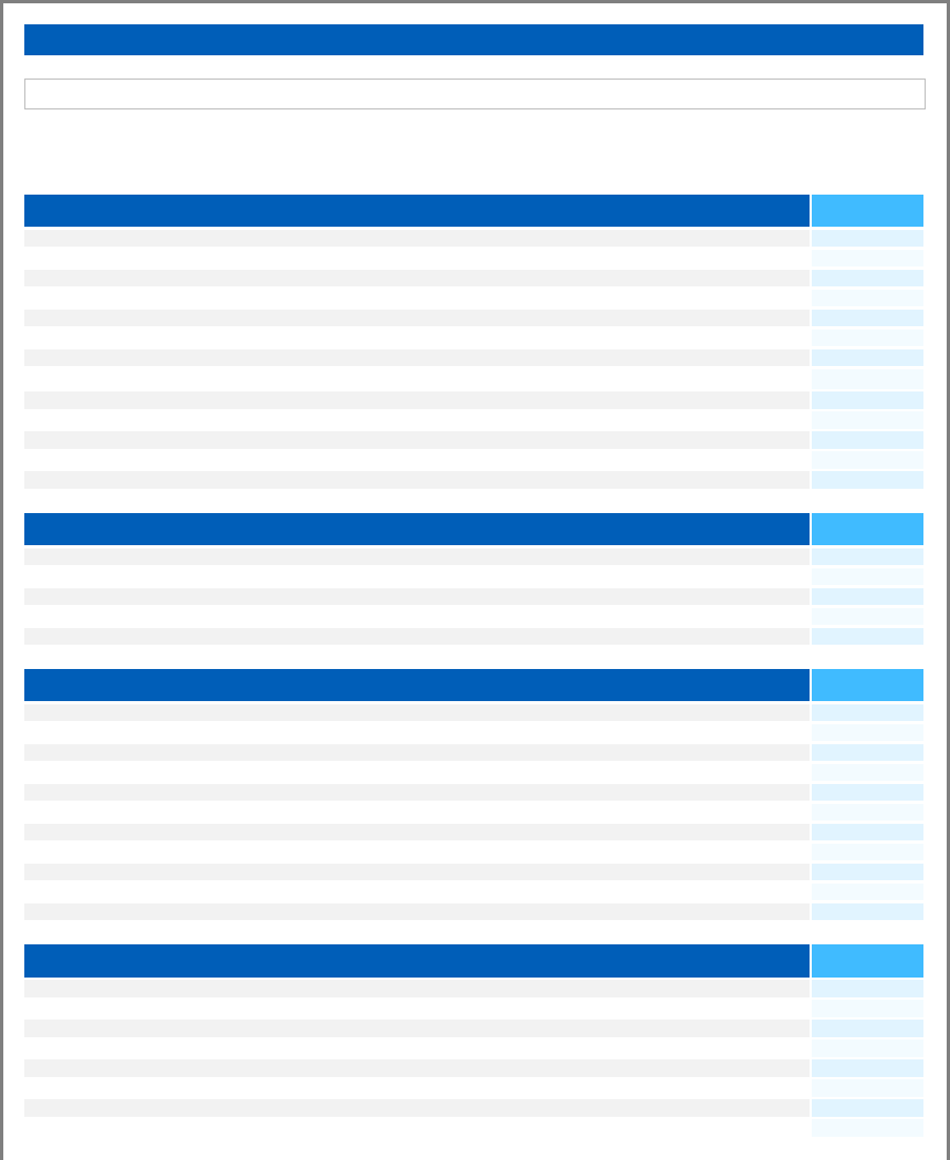 <p>EMPRESA:</p><p>IMPORTÂNCIA</p><p>(1 a 5)</p><p>4</p><p>4</p><p>5</p><p>5</p><p>5</p><p>5</p><p>3</p><p>3</p><p>3</p><p>3</p><p>5</p><p>5</p><p>3</p><p>IMPORTÂNCIA</p><p>(1 a 5)</p><p>5</p><p>5</p><p>5</p><p>5</p><p>3</p><p>IMPORTÂNCIA</p><p>(1 a 5)</p><p>5</p><p>4</p><p>3</p><p>1</p><p>1</p><p>3</p><p>3</p><p>5</p><p>5</p><p>3</p><p>1</p><p>IMPORTÂNCIA</p><p>(1 a 5)</p><p>1</p><p>1</p><p>1</p><p>1</p><p>1</p><p>1</p><p>1</p><p>ETAPA 1 - PRIORIZAÇÃO DE CASOS DE USO</p><p>GAIA PRODUTOS NATURAIS</p><p>Este questionário permite a avaliação de prioridades para a solução de problemas da empresa por meio de ferramentas digitais. Atribua</p><p>a cada atividade um nível de importância. O nível 1 corresponde à prioridade mínima e o 5, à prioridade máxima.</p><p>Bloco 1 - Gestão empresarial</p><p>Aprimorar a gestão financeira.</p><p>Controlar contas a pagar e a receber.</p><p>Conhecer o fluxo de caixa.</p><p>Ter o cadastro atualizado de clientes.</p><p>Ter o cadastro atualizado de produtos.</p><p>Ter o cadastro atualizado de fornecedores.</p><p>Elaborar com maior agilidade os orçamentos para venda.</p><p>Solicitar com maior agilidade os orçamentos para compras.</p><p>Emitir e fazer a gestão das ordens de serviço.</p><p>Controlar os estoques/almoxarifados.</p><p>Emitir relatórios gerenciais.</p><p>Determinar custos de produtos.</p><p>Ter acesso a informações referentes às pessoas da empresa.</p><p>Bloco 2 – Digitalização do processo administrativo</p><p>Reduzir o tempo não produtivo em processos administrativos.</p><p>Rastrear decisões administrativas.</p><p>Padronizar os processos administrativos.</p><p>Armazenar documentos digitalizados.</p><p>Agilizar decisões administrativas.</p><p>Bloco 3 – Digitalização do processo produtivo</p><p>Conhecer quando as ordens de serviço são iniciadas/encerradas.</p><p>Conhecer os tempos utilizados para realizar os processos.</p><p>Eliminar registro de dados em planilhas.</p><p>Reduzir o uso de papel.</p><p>Disponibilizar para o operador de máquina desenhos técnicos atualizados.</p><p>Disponibilizar informações sobre o processo para os operadores.</p><p>Monitorar on-line a evolução das ordens de serviço.</p><p>Disponibilizar on-line, para os clientes, os dados do andamento dos pedidos.</p><p>Conhecer gargalos dos processos produtivos.</p><p>Melhorar ou prover a rastreabilidade do processo produtivo.</p><p>Melhorar ou prover a rastreabilidade de ativos.</p><p>Bloco 4 – Monitoramento de máquinas</p><p>Registrar continuamente os parâmetros da produção.</p><p>Gerar indicadores de avaliação de produtividade.</p><p>Conhecer histórico/causas de paradas de máquina.</p><p>Emitir alertas on-line de paradas de máquina.</p><p>Conhecer tempos de setup.</p><p>Elaborar relatórios de produção on-line.</p><p>Identificar falta de matéria-prima causando parada de máquina.</p><p>Conhecer on-line refugos por falta de qualidade.</p><p>IMPORTÂNCIA</p><p>(1 a 5)</p><p>5</p><p>5</p><p>5</p><p>5</p><p>5</p><p>3</p><p>2</p><p>5</p><p>3</p><p>IMPORTÂNCIA</p><p>(1 a 5)</p><p>5</p><p>5</p><p>5</p><p>5</p><p>5</p><p>5</p><p>IMPORTÂNCIA</p><p>(1 a 5)</p><p>5</p><p>4</p><p>3</p><p>2</p><p>2</p><p>IMPORTÂNCIA</p><p>(1 a 5)</p><p>5</p><p>5</p><p>5</p><p>5</p><p>5</p><p>5</p><p>5</p><p>5</p><p>NOTA</p><p>(1 a 10)</p><p>9</p><p>5</p><p>5</p><p>1</p><p>10</p><p>10</p><p>7</p><p>10</p><p>77</p><p>69</p><p>46</p><p>11</p><p>84</p><p>100</p><p>54</p><p>100</p><p>Bloco 5 – Relacionamento com clientes</p><p>Conhecer os clientes (precisa fazer o cadastro).</p><p>Conhecer o histórico de compras dos clientes (precisa cadastrar produtos/serviços).</p><p>Emitir orçamentos de forma automatizada.</p><p>Acompanhar o processo de vendas.</p><p>Ser alertado quanto ao vencimento de prazos relativos às vendas de produtos/prestação de serviços.</p><p>Obter feedback dos representantes.</p><p>Registrar reclamações dos clientes.</p><p>Criar dashboards, relatórios e outras ferramentas de análise de vendas.</p><p>Emitir e fazer a gestão das ordens de serviço.</p><p>Bloco 6 – Marketing digital</p><p>Usar ferramentas de e-mail marketing.</p><p>Realizar a gestão de mídias sociais.</p><p>Publicar posts nas mídias sociais.</p><p>Realizar a análise e mensuração de resultados de marketing.</p><p>Criar campanhas de marketing.</p><p>Implementar ou melhorar o site institucional.</p><p>Oferecer programas de fidelidade, de afiliados ou clubes de vantagens.</p><p>Bloco 7 – Cálculo do preço de venda</p><p>Calcular on-line a contribuição marginal (faturamento bruto menos custos variáveis).</p><p>Evitar cálculo impreciso de preços de produtos.</p><p>Determinar ponto de equilíbrio (entre receita e despesas).</p><p>Conhecer o markup (índice multiplicador aplicado sobre o custo de um produto ou de um serviço para formar o preço</p><p>de venda).</p><p>Conhecer o preço mínimo de venda (evitar vendas com prejuízo).</p><p>Bloco 8 – E-commerce</p><p>Ter área fiscal que permita a emissão de notas fiscais para outros estados.</p><p>Comercializar por meio de marketplaces.</p><p>Gerenciar produtos de diferentes lojas virtuais ou marketplaces de forma integrada.</p><p>Controlar o estoque de diferentes lojas virtuais ou marketplaces de forma integrada.</p><p>Oferecer opções de frete para os clientes.</p><p>Oferecer clube de assinatura.</p><p>Recuperar carrinhos virtuais abandonados por clientes.</p><p>Oferecer vitrines de produtos personalizadas para os clientes.</p><p>Estabeleça a prioridade relativa de cada tema, dando uma nota para os temas abaixo, sendo 10 a mais importante e 1 a menos</p><p>Prioridade dos temas</p><p>Gestão empresarial</p><p>Digitalização dos processos administrativos</p><p>Digitalização dos processos produtivos</p><p>Monitoramento de máquinas</p><p>Relacionamento com clientes</p><p>Marketing Digital</p><p>Cálculo dos preços de venda</p><p>E-commerce</p><p>NOTA FINAL DOS CASOS DE USO</p><p>Sistema de Gestão E