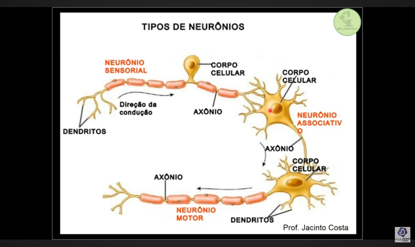 <p>TIPOS DE NEURÔNIOS NEURÔNIO CORPO SENSORIAL CELULAR CORPO CELULAR Direção da condução NEURÔNIO ASSOCIATIV DENDRITOS CORPO CELULAR NEURÔNIO MOTOR DENDRITOS Prof. Jacinto Costa</p>
