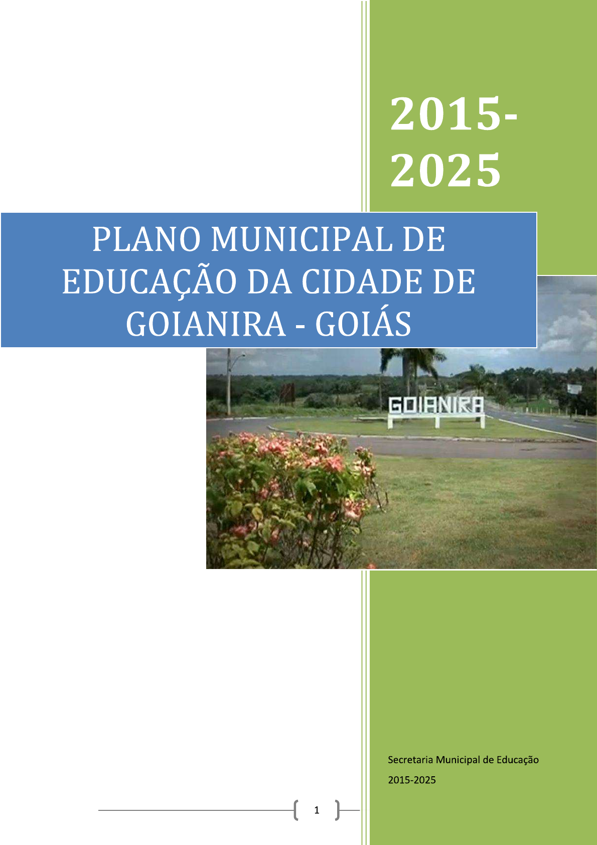 <p>2015- 2025 PLANO MUNICIPAL DE EDUCAÇÃO DA CIDADE DE GOIANIRA - GOIÁS GOIANIRA Secretaria Municipal de Educação 2015-2025</p><p>1959 GOIANIRA PLANO MUNICIPAL DE EDUCAÇÃO DA CIDADE DE GOIANIRA - GOIÁS 2015/2025 2 )</p><p>Prefeito - Gestão 2013 - 2016 Randel Miller de Assis Santos Vice-Prefeito Agnaldo Augusto de Oliveira Secretário Municipal de Educação Agnaldo Augusto de Oliveira COMISSÃO COORDENADORA E DE SISTEMATIZAÇÃO Carmem Silva Rocha Reis Cláudia de Souza Abdalla Júlio Cesar da Silva EQUIPE TÉCNICA Agnaldo Augusto de Oliveira Antônio Lopes Junior Arlet Martins da Silva Breno José de Paula Santos Cássia Silva Alves Divino Tomé Elivaldo Rocha Rodrigues Elizabeth Maria de Fátima Borges Hildacimar Lopes de Oliveira Joana Batista Antônia de Bastos Luciana Maria Siqueira Luciano Silva Roriz Maria Aparecida Gonçalves Costa Maria das Graças Silva dos Santos Michelle Sandre Mariano Nathália Fernandes da Silva Oliveira Rosangela Maria da Costa Saulo Santana Rezende Valdison Elson de Jesus Willian Dias Tomaz 3</p><p>SUMÁRIO 1. APRESENTAÇÃO 05 2. OBJETIVOS 07 3. INTRODUÇÃO 08 4. CARACTERIZAÇÃO DO MUNICÍPIO 12 4.1 Aspectos Históricos 12 Aspectos Populacional e Socio-Econômicos 13 4.3 Aspectos Culturais 23 4.4 Aspectos Desportivos 26 4.5 Aspectos Educacionais 26 5. CONSELHOS MUNICIPAIS 29 5.1 CACS-FUNDEB 29 5.2 Conselho de Alimentação Escolar - CAE 29 5.3 Conselhos Escolares 30 6. INDICADORES DEMOGRÁFICOS E EDUCACIONAIS 30 7. DIAGNÓSTICO DE RECURSOS 44 7.1 Recursos federais 44 7.2 Recursos Municipais 46 7,3 Custo/Aluno/Ano 47 8. DIRETRIZES PARA EDUCAÇÃO BÁSICA 47 8.1 Educação Infantil 47 8.2 Ensino Fundamental 49 8.3 Educação Integral 52 8.4. Educação de Jovens e Adultos 52 8.4.1 Caracterização e Diagnóstico 53 8.5 Diretrizes para a EJA 54 8.6 Educação Especial 54 8.6.1 Caracterização e Diagnóstico 55 8.6.2 Diretrizes/Tendências Recentes 55 9. PROFISSIONAIS DA EDUCAÇÃO 56 9.1 Diretrizes e bases 56 9.2 Caracterização e Diagnóstico 57 10 VALORIZAÇÃO DO MAGISTÉRIO 57 11. FINANCIAMENTO E GESTÃO 58 11.1 Diretrizes 59 12 AS 5 METASTODOS PELA EDUCAÇÃO 61 13. METAS DO PLANO MUNICIPAL DE EDUCAÇÃO 2015 - 2025 62 14. ACOMPANHAMENTO, CONTROLE, AVALIAÇÃO E IMPLEMENTAÇÃO 96 15. BIBLIOGRAFIA 97 4</p><p>1. APRESENTAÇÃO A construção do primeiro Plano Municipal de Educação (PME) é sem dúvida um marco na educação da cidade de Goianira e uma conquista para toda a população que almeja melhorias no ensino e, consequentemente, melhora na sua qualidade de vida. A educação é um fenômeno político, já que traduz interesses e objetivos dos diferentes grupos sociais e econômicos, os quais são partes integrantes dessas relações. Partindo dessa premissa, a educação pode ser utilizada para reproduzir interesses de grupos que detenham o poder econômico, político, por outro lado é capaz de promover relações sociais mais igualitárias. Segundo Paro (1997), a [...] educação, entendida como a apropriação do saber historicamente produzido é prática social que consiste na própria atualização cultural e histórica do homem. Este, na produção material de sua existência, na construção de sua história, produz conhecimentos, técnicas, valores, comportamentos, atitudes, tudo enfim que configura o saber historicamente produzido. Para que isso não se perca para que a humanidade não tenha que reinventar tudo a cada nova geração, fato que a condenaria a permanecer na mais primitiva situação, é preciso que o saber esteja sendo permanentemente passado para as gerações subsequentes. Essa mediação é realizada pela educação, do que decorre sua centralidade enquanto condição imprescindível da própria realização histórica do homem. (PARO, 1997). Dessa forma, a educação, é importante, antes de tudo, levar em conta os objetivos que se pretende com ela. Nesse sentido, a instituição escolar deve estar a serviço da coletividade, ou seja, seu papel é a inserção social dos indivíduos como cidadãos, utilizando como instrumento a formação cultural. PME deve ser um instrumento que contribua para viabilização de um sistema de educação, que não se restrinja a ser somente um sistema de ensino, restrito às redes e mecanismos internos, mas, considere a educação como um processo social que conte com a presença da sociedade, através de organizações e instituições que, direta ou indiretamente, tenham presenças nas decisões e posicionamentos referentes à questão educacional. Plano Nacional de Educação define, por conseguinte: As diretrizes para a gestão e o financiamento da educação; As diretrizes e metas para cada nível e modalidade de ensino; e As diretrizes e metas para a formação e valorização do magistério e demais profissionais da educação, nos próximos dez anos. 5</p><p>Conforme diz ainda o texto do PNE, "[...] tratando-se de metas para o conjunto da Nação, será preciso, como desdobramento, adequação às especificidades locais e definição de estratégias adequadas, a cada circunstância, elaboração de planos Estaduais e Municipais" (BRASIL, 2014). O PME trata do conjunto da educação, no âmbito Municipal, expressando uma política educacional para todos os níveis, bem como as etapas e modalidades de educação e de ensino. É um Plano de Estado e não somente um Plano de Governo. Sua elaboração está preconizada no Plano Nacional de Educação PNE, aprovado pela Lei n° 13.005/2014, que em seu art. 8° declara: "Os Estados, o Distrito Federal e os Municípios deverão elaborar seus correspondentes planos de educação, ou adequar os planos já aprovados em lei, em consonância com as diretrizes, metas e estratégias previstas neste PNE, no prazo de 1 (um) ano contado da publicação desta Lei". Premissas a serem consideradas: Os planos não devem ser da rede de ensino, mas do território, seja estadual, distrital ou municipal, considerando todas as limitações e