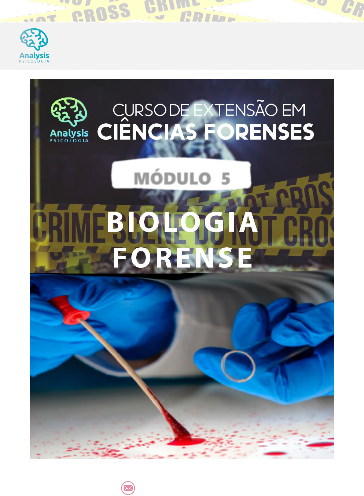 <p>lais.ubaldo.89@gmail.com</p><p>CURSO DE EXTENSÃO EM CIÊNCIAS FORENSES - ANALYSIS</p><p>Profª Esp. Laís Ubaldo – Perita Judicial e Consultora Técnica</p><p>CRBio 109592/01-D</p><p>MÓDULO 5</p><p>mailto:lais.ubaldo.89@gmail.com</p><p>lais.ubaldo.89@gmail.com</p><p>CURSO DE EXTENSÃO EM CIÊNCIAS FORENSES - ANALYSIS</p><p>Profª Esp. Laís Ubaldo – Perita Judicial e Consultora Técnica</p><p>CRBio 109592/01-D</p><p>MATERIAL DE APOIO</p><p>MÓDULO 5 – BIOLOGIA FORENSE</p><p>INTRODUÇÃO A BIOLOGIA FORENSE</p><p>A Biologia Forense baseia-se no conjunto de técnicas e conhecimentos</p><p>utilizados em análises de vestígios biológicos, fornecendo importantes</p><p>contribuições ao meio jurídico (Velho, Geiser e Espíndula, 2013). Dentre os</p><p>diferentes vestígios encontrados, os vestígios biológicos podem ser fluídos</p><p>biológicos, organismos ou parte deles, ou ainda qualquer amostra de origem</p><p>biológica que possa direcionar as investigações a um possível suspeito/vítima</p><p>ou ainda que auxilie as investigações periciais.</p><p>As principais áreas estudadas na Biologia Forense são:</p><p>• Hematologia Forense: Existem duas subáreas dentro da hematologia, a</p><p>Hematologia Forense Identificadora, que tem por objetivo identificar e</p><p>caracterizar vestígios de sangue, e a Hematologia Forense Reconstrutora, que</p><p>tem por objetivo inferir através das manchas de sangue, a dinâmica e os meios</p><p>que resultaram no crime.</p><p>• Citologia Forense: Tem como papel identificar células através da</p><p>microscopia a fim de caracterizar presença ou ausência de um determinado</p><p>tipo celular em uma amostra biológica. É comumente utilizada em casos de</p><p>violência sexual, em que pode haver presença de sêmen.</p><p>• Tricologia Forense: É o estudo de pelos por macro ou microscopia</p><p>encontrados em locais de crime a fim de identificá-los, bem como realizar a</p><p>diferenciação de pelos humanos e não humanos (fibras ou até mesmo pelos de</p><p>animais, caracterizando crimes contra a fauna).</p><p>mailto:lais.ubaldo.89@gmail.com</p><p>lais.ubaldo.89@gmail.com</p><p>CURSO DE EXTENSÃO EM CIÊNCIAS FORENSES - ANALYSIS</p><p>Profª Esp. Laís Ubaldo – Perita Judicial e Consultora Técnica</p><p>CRBio 109592/01-D</p><p>• Entomologia Forense: Utiliza-se de conhecimentos específicos sobre</p><p>insetos para estimar tempo de morte, assim como possível movimentação do</p><p>corpo e o uso de entorpecentes (entomotoxicologia).</p><p>• Botânica Forense: Caracteriza-se por ser o estudo capaz de relacionar a</p><p>dinâmica dos fatos com organismos vegetais associados ao fato criminoso.</p><p>• Genética Forense: É uma das áreas que ajuda na elucidação de crimes</p><p>por meio da análise genética de vestígios provenientes de locais de crime</p><p>utilizando técnicas de biologia molecular.</p><p>Com o passar dos anos, diversas técnicas de biologia molecular sofreram</p><p>alterações permitindo análises mais complexas e precisas e, assim, sendo</p><p>determinante na vinculação de suspeitos e vítimas. Atualmente, é possível</p><p>realizar a coleta de amostras biológicas em local de crime, de objetos</p><p>relacionados, veículos ou parte deles e até mesmo amostras do corpo das</p><p>vítimas e suspeitos, tudo isso preservando o material de forma a não prejudicar</p><p>as análises posteriores. Dessa forma, acompanhando a evolução de tais</p><p>análises, tornou-se necessário adaptar as documentações de maneira que</p><p>sejam adequadas para o ajudar no esclarecimento de uma investigação</p><p>A necessidade de precisão ao trabalhar com biologia forense torna o</p><p>profissional perito mais bem preparado para realizar a identificação de</p><p>vestígios biológicos, bem como utilizar equipamentos e reagentes adequados</p><p>para coleta, armazenamento e transporte destes (Velho, Costa e Damasceno,</p><p>2013).</p><p>Amostras biológicas provenientes de locais de crime estão sujeitas a</p><p>sofrer contaminação cruzada caso não se tome os devidos cuidados em relação</p><p>ao isolamento do local, manuseio, conservação e transporte.</p><p>Outros fatores que podem influenciar os resultados de exames da área de</p><p>biologia forense estão relacionados ao tempo de encaminhamento das</p><p>amostras até os laboratórios forenses; a identificação dos vestígios; o estado de</p><p>mailto:lais.ubaldo.89@gmail.com</p><p>lais.ubaldo.89@gmail.com</p><p>CURSO DE EXTENSÃO EM CIÊNCIAS FORENSES - ANALYSIS</p><p>Profª Esp. Laís Ubaldo – Perita Judicial e Consultora Técnica</p><p>CRBio 109592/01-D</p><p>conservação das amostras e, também, no caso de ser um exame de DNA, o</p><p>encaminhamento posterior de amostras referências.</p><p>Amostras retiradas de locais de crime são denominadas “amostra</p><p>questionada”, normalmente são coletadas em pouca quantidade devido à</p><p>escassez do local de origem e, pode ainda conter mistura de material genético,</p><p>contaminação ou degradação. Amostras coletadas diretamente do suspeito ou</p><p>vítima são denominadas “amostra referência”, pois há certeza de quem aquela</p><p>amostra pertence e normalmente é possível obter em maior quantidade (Dias</p><p>Filho e Francez, 2017).</p><p>A fim de evitar custos desnecessários encaminhando materiais biológicos</p><p>possivelmente relacionados ao fato criminoso, existem alguns testes de</p><p>triagem, chamados testes de orientação que são passíveis de serem realizados</p><p>no próprio local e, somente após a confirmação de correlação com o</p><p>acontecimento, o vestígio é encaminhado a um laboratório específico para</p><p>outras análises.</p><p>HEMATOLOGIA FORENSE</p><p>A Hematologia Forense é uma importante subárea da Biologia Forense,</p><p>pois o sangue é um dos vestígios biológicos mais encontrados em locais de</p><p>crime. Tem como objetivo identificar, c