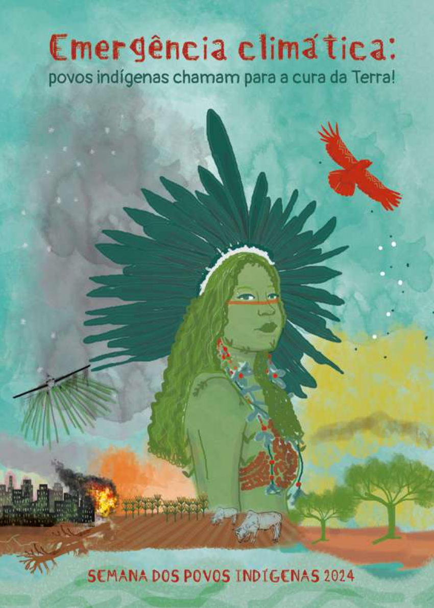 <p>Emergência Climática:</p><p>povos indígenas chamam para a cura da Terra!</p><p>Juliana Kerexu</p><p>Cristiane Julião</p><p>organização:</p><p>Kassiane Schwingel</p><p>Revisão: Daniela Silva Huberty, Jasom de Oliveira e Sandro Luckmann</p><p>Projeto gráfico e diagramação: Kath Xapi Puri</p><p>Ilustrações: Wanessa Ribeiro</p><p>O caderno da Semana dos Povos Indígenas é produzido anualmente</p><p>pela Fundação Luterana de Diaconia (FLD), por meio do seu</p><p>programa Conselho de Missão entre Povos Indígenas (COMIN),</p><p>com o protagonismo de autoras e autores indígenas.</p><p>A FLD tem como missão defender o direito à existência com vida</p><p>boa de toda a diversidade.</p><p>Em www.comin.org.br você encontrará mais materiais para</p><p>aprofundar esta temática. Caso queira falar conosco, entre em</p><p>contato pelo e-mail: formacao@comin.org.br</p><p>Nos siga nas redes sociais: @fld_act e @comin.oficial</p><p>Dados Internacionais de Catalogação na Publicação (CIP)</p><p>K39e Kerexu, Juliana.</p><p>Emergência climática : povos indígenas chamam para a cura da Terra!</p><p>/ Juliana Kerexu, Cristiane Julião ; organização: Kassiane Schwingel. –</p><p>Porto Alegre : Fundação Luterana de Diaconia : Conselho de Missão</p><p>entre Povos Indígenas, 2023.</p><p>32 p. : il. ; 21 cm.</p><p>ISBN 978-85-93033-22-3</p><p>1. Mudanças climáticas. 2. Impacto ambiental - Indígenas. 3. Meio</p><p>ambiente - Preservação - Políticas públicas. 4. Educação ambiental. I.</p><p>Julião, Cristiane. II. Schwingel, Kassiane. III. Título.</p><p>CDU 551.588.7</p><p>(Bibliotecária responsável: Sabrina Leal Araujo – CRB 8/10213)</p><p>4 5</p><p>Algumas palavras...</p><p>Organizamos o material por capí-</p><p>tulos, onde buscamos, inicialmente,</p><p>defender o uso do termo “emergência</p><p>climática”, evidenciando que vivemos</p><p>uma situação limite. Em seguida, traze-</p><p>mos, de forma simples, o conceito de</p><p>emergência climática e, logo depois,</p><p>falamos sobre como as consequên-</p><p>cias desse fenômeno têm nos atin-</p><p>gido, especialmente enquanto povos</p><p>indígenas, o que está vinculado ao</p><p>racismo ambiental. Também aponta-</p><p>mos o quanto as consequências vão</p><p>além de nós, mostrando que todas as</p><p>pessoas já estão sendo impactadas.</p><p>Fechamos mostrando que nós, povos</p><p>indígenas, temos apontado as saídas</p><p>para esta emergência, desde ações</p><p>que temos desenvolvido em nossos</p><p>territórios até repensar a relação das</p><p>pessoas com a natureza de forma mais</p><p>profunda. Aproveitamos para fazer um</p><p>chamado de apoio, evidenciando que</p><p>a demarcação de nossos territórios e</p><p>o respeito ao nosso modo de vida são</p><p>fundamentais para o enfrentamento</p><p>da emergência climática.</p><p>Damos as boas vindas neste</p><p>material que, embora trate de um</p><p>assunto complexo e triste, quer ser</p><p>fonte de esperança e fortalecimento</p><p>para as lutas que ainda estão por vir.</p><p>Nós, Cristiane Julião e Juliana Kerexu,</p><p>pertencentes aos povos Pankararu</p><p>e Mbyá Guarani, respectivamente,</p><p>construímos este caderno com o</p><p>desejo de que mais pessoas desper-</p><p>tem para o assunto e, principalmente,</p><p>passem a agir para o enfrentamento</p><p>da emergência climática.</p><p>Sabemos que muitas pessoas que</p><p>acessam este material são docentes,</p><p>então fizemos um esforço didático</p><p>para que seja possível compreender</p><p>as questões elementares sobre o que</p><p>já se chamou de mudanças climáticas</p><p>e, hoje, chamamos de emergência cli-</p><p>mática. Acreditamos que os espaços</p><p>de educação, sejam eles escolares</p><p>ou não, indígenas ou não, são fontes</p><p>de reflexões e promotores de ações</p><p>que podem muito contribuir para</p><p>enfrentar vários problemas vividos</p><p>no presente.</p><p>Trazemos, neste material, algu-</p><p>mas palavras e ideias construídas</p><p>coletivamente, assim como é nossa</p><p>vida enquanto indígenas. A partir</p><p>da escuta das pessoas mais velhas,</p><p>dos exemplos de luta no chão de</p><p>nossas aldeias e até da observação</p><p>das crianças, que também nos ensi-</p><p>nam, nos dispomos a compartilhar</p><p>sabedoria de vida. É essa sabedoria</p><p>que pode evitar o caminho sem volta</p><p>do colapso climático e ambiental.</p><p>Desejamos que este material</p><p>possa contribuir nas reflexões de</p><p>cada uma e cada um que o receber</p><p>e, especialmente, possa incentivar</p><p>para ações práticas. Desejamos que</p><p>você receba o nosso chamado, que é</p><p>um chamado pela vida, por todas as</p><p>vidas! Desejamos que este chamado</p><p>lhe movimente e lhe aproxime de</p><p>outras pessoas comprometidas e</p><p>engajadas nesta luta.</p><p>4 5</p><p>Cristiane Julião, povo Pankararu.</p><p>Doutoranda em Antropologia Social</p><p>pelo Museu Nacional/UFRJ. Faz parte</p><p>da Articulação dos Povos Indígenas</p><p>do Brasil (APIB), é co-fundadora</p><p>da Articulação Nacional de</p><p>Mulheres Indígenas Guerreiras</p><p>da Ancestralidade (ANMIGA),</p><p>representa o Conselho Nacional</p><p>de Política Indigenista (CNPI) no</p><p>Conselho de Gestão do Patrimônio</p><p>Genético (CGen/MMA) e está como</p><p>Coordenadora da Câmara Setorial</p><p>das Guardiãs e dos Guardiões da</p><p>Biodiversidade (CSG).</p><p>Juliana Kerexu, povo Mbyá Guarani.</p><p>Cacica da Aldeia Tekoa Takuaty na</p><p>Terra Indígena Ilha da Cotinga em</p><p>Paranaguá (PR). É mulher terra da</p><p>ANMIGA, coordenadora Tenonde</p><p>na Comissão Guarani Yvyrupa,</p><p>coordenadora executiva na APIB,</p><p>escritora, ativista e professora de</p><p>língua Guarani.</p><p>6 7</p><p>Mudanças, crise ou emergência?</p><p>O que nós, povos indígenas,</p><p>afirmamos sobre o clima</p><p>lado, há outras maneiras mais har-</p><p>mônicas de usarmos o