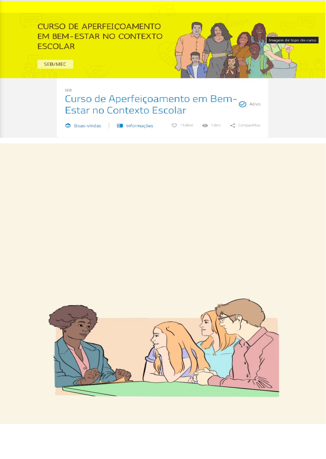 <p>Módulo 1</p><p>BEM-ESTAR E COMUNIDADE ESCOLAR: ESTUDANTES, PROFESSORES, GESTORES E FAMÍLIAS</p><p>Apresentação</p><p>Ao pensar em escola pensamos, principalmente, nos professores e nos alunos. No entanto, a comunidade escolar vai um pouco mais além, englobando os gestores escolares e os familiares dos estudantes.</p><p>Neste módulo estudaremos como deve ocorrer uma melhora no bem-estar de cada um dos sujeitos que estão envolvidos na comunidade escolar.</p><p>Assim, as cinco unidades deste módulo abordarão a relação das pessoas com o bem-estar, envolvendo, na primeira parte, aspectos como qualidade de vida, desenvolvimento da infância e da adolescência na escola, o papel do professor na preparação do estudante para uma vida em sociedade, a educação para carreira, o bem-estar no ambiente de trabalho (considerando o contexto atual de pandemia de COVID-19) e a relação família e trabalho.</p><p>Já na segunda parte, veremos o papel do gestor escolar e o impacto do seu trabalho para a promoção de bem-estar na escola, as estratégias que podem contribuir para a melhoria da experiência de trabalho, a relação entre escola e família, os estilos parentais, os estilos de liderança dos professores e, por fim, os desafios da famílias com seus filhos adolescentes.</p><p>Para uma visão geral do material e assim iniciar o seu percurso de leitura, confira o sumário a seguir.</p><p>Sumário</p><p>· Apresentação01</p><p>· Unidade 1 - Bem-estar no contexto escolar02</p><p>· Unidade 2 - bem-estar e estudantes13</p><p>· Unidade 3 - bem-estar e professores(as)31</p><p>· Unidade 4 - bem-estar e gestores47</p><p>· Considerações finais73</p><p>UNIDADE 1 - BEM-ESTAR NO CONTEXTO ESCOLAR</p><p>1.1 Saúde e bem-estar</p><p>Nesta primeira parte, abordaremos os conceitos de qualidade de vida e de saúde e bem-estar em suas diferentes dimensões (física, mental e social), além de apresentar os dados provenientes de pesquisas científicas e o instrumento WHOQOL-bref, desenvolvido pela Organização Mundial de Saúde (OMS). Por fim, materiais com dicas para cuidar da saúde, bem-estar e qualidade de vida durante a pandemia do COVID-19 também serão compartilhados.</p><p>Antes de entrarmos na discussão sobre o assunto, façamos as seguintes questões:</p><p>· O que as pesquisas mostram sobre as condições de saúde e bem-estar dos indivíduos na atualidade?</p><p>· O que é qualidade de vida?</p><p>· O que pode ser feito para investir em saúde, bem-estar e qualidade de vida em tempos de pandemia?</p><p>Prossiga na leitura do material para responder a esses questionamentos!</p><p>Socialmente é comum pensar que uma pessoa possui uma boa saúde quando não apresenta sintomas ou doenças. Entretanto, para a Organização Mundial da Saúde (OMS) o conceito de saúde é abrangente e envolve mais do que somente a ausência de enfermidades. Para a OMS, saúde diz respeito a um estado completo de bem-estar físico, mental e social. Por mais que essa compreensão seja questionada, já que atingir um estado de completo bem-estar pode ser considerado utópico, essa definição de saúde permite olhar para os indivíduos de uma maneira mais complexa e sistêmica.</p><p>Bem-estar físico</p><p>O bem-estar físico abrange o bom funcionamento do corpo e podem ser considerados indícios desse bem-estar:</p><p>· não sentir dores,</p><p>· estar nutrido,</p><p>· ter uma boa qualidade de sono,</p><p>· conseguir se manter ativo,</p><p>· entre outros.</p><p>Uma das principais formas de cuidar do corpo é a prática de exercícios físicos. Praticar exercícios regularmente aumenta a sensação de bem-estar, garante maior energia e melhora o sono, resultando em benefícios para a saúde mental, entre outros ganhos.</p><p>Apesar da importância do cuidado com o corpo ser reconhecida socialmente, como aparece em sites, notícias e propagandas, os dados mostram outra realidade. Confira o estudo a seguir:</p><p>De acordo com um estudo realizado pela OMS, 47% das pessoas em idade adulta no Brasil não fazem atividades físicas suficientes, sendo que entre as mulheres esse número é ainda maior (53,3%). A ociosidade é um risco para a saúde e está relacionada com o desenvolvimento de doenças, como diabetes, obesidade e problemas cardíacos. Para mais detalhes sobre esse estudo, acesse o link:</p><p>https://www.thelancet.com/journals/langlo/article/PIIS2214-109X(18)30357-7/fulltext</p><p>Observação</p><p>A recomendação padrão da OMS é que seja praticado 150 minutos de atividade física de intensidade moderada ou 75 minutos de intensidade elevada por semana para adultos.</p><p>Bem-estar mental</p><p>O bem-estar mental envolve saber manejar as diferentes situações estressoras da vida, lidar com as emoções, agir de modo consciente e reconhecer seus limites e potencialidades.</p><p>Ao contrário do bem-estar físico, os assuntos relacionados aos aspectos mentais são negligenciados socialmente.</p><p>Quanto menos se fala sobre saúde e bem-estar mental, mais pessoas sofrem sem nenhum apoio. Confira as informações a seguir:</p><p>Um estudo sobre a saúde mental divulgado pela Organização Pan-Americana da Saúde (OPAS) mostrou que o Brasil apresenta as maiores taxas de incapacidade causada por depressão (9,3%) e ansiedade (7,5%) do continente americano. Ainda, a OPAS alerta que a depressão é um transtorno mental frequente e estima que mais de 300 milhões de pessoas em todo mundo sofram com esse transtorno. Ressalta que as mulheres são mais afetadas que homens e que, nos casos mais graves, pode levar ao suicídio. Se quiser saber mais sobre os estudos da OPAS, acesse o link: https://www.paho.org/pt</p><p>Assista ao vídeo produzido pela OMS ‘Eu tenho um cachorro preto e seu nome é depressão’.</p><p>Acesso pelo link: https://www.youtube.com/watch?v=DzU63rT4L5Y</p><p>Dicas para cuidar da saúde mental nas relações: Ao falar com amigos, familiares e colegas troque as frases 