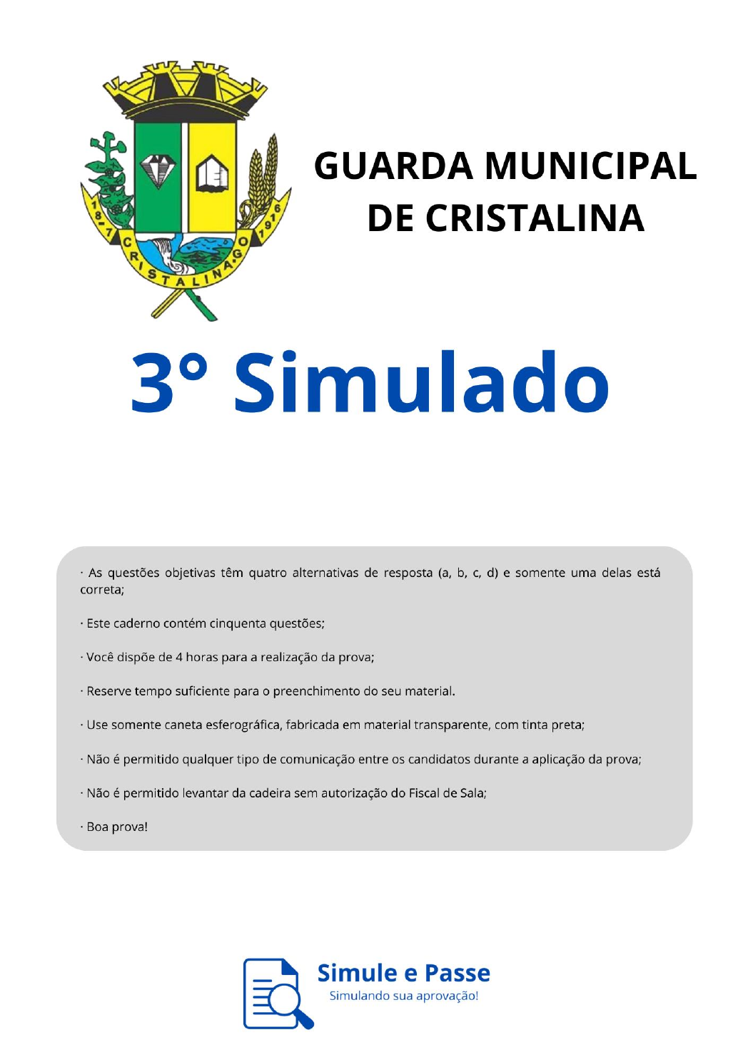 <p>3° SIMULADO – GCM DE CRISTALINA</p><p>1</p><p>1 No texto, o autor</p><p>A) desaprova uma nova corrida espacial, por</p><p>considerá-la sem sentido.</p><p>B) associa o interesse pela exploração da Lua na</p><p>atualidade a uma demanda da indústria</p><p>tecnológica.</p><p>C) denuncia o impacto ambiental que seria</p><p>desencadeado com uma nova ocupação humana da</p><p>Lua.</p><p>D) mostra, com ênfase, que o Brasil está entre os</p><p>países que já chegaram à Lua.</p><p>2 Com base nas informações do texto apresentado, assinale</p><p>a alternativa correta.</p><p>A) Astronautas soviéticos, assim como os</p><p>estadunidenses, já caminharam pelo solo lunar.</p><p>B) O planeta Terra foi formado há quatro bilhões de</p><p>anos, segundo a teoria mais aceita.</p><p>C) Asteroides são ricos em elementos que são raros na</p><p>Terra.</p><p>D) Os locais de maior concentração de terras raras na</p><p>Lua são as crateras escuras na região dos polos.</p><p>3 De acordo com o texto apresentado, as terras raras são</p><p>A) abundantes nos asteroides.</p><p>B) indispensáveis à manutenção da vida na Terra.</p><p>C) exclusivas do solo lunar.</p><p>D) exploradas majoritariamente por um único país.</p><p>4 No texto, o aposto “fundamental para a produção de</p><p>alimentos” (linha 54) refere-se</p><p>A) à vida vegetal.</p><p>B) à humanidade.</p><p>C) à água.</p><p>D) ao nitrogênio.</p><p>5 Assinale a alternativa que apresenta reescrita</p><p>gramaticalmente correta para o trecho “pisou na Lua”</p><p>(linha 2), sem alteração do sentido original do texto.</p><p>A) pisou à Lua</p><p>B) pisou sob a Lua</p><p>C) pisou encima da Lua</p><p>D) pisou a Lua</p><p>6 Sem prejuízo do sentido original do texto, seria</p><p>gramaticalmente correto substituir a locução verbal “vai</p><p>fazer” (linha 1) por</p><p>A) fazerão.</p><p>B) fizeram.</p><p>C) fará.</p><p>D) fazem.</p><p>7 o texto, o vocábulo “então” (linha 3)</p><p>A) tem sentido condicional.</p><p>B) introduz uma conclusão.</p><p>C) transmite noção de intensidade.</p><p>D) remete a uma circunstância de tempo.</p><p>LÍNGUA PORTUGUESA</p><p>3° SIMULADO – GCM DE CRISTALINA</p><p>2</p><p>8 No texto, o termo “comuns” (linha 38) estabelece</p><p>concordância com</p><p>A) “Terras raras” (linha 35).</p><p>B) “latânio, escândio, ítrio” (linha 34).</p><p>C) “carros elétricos” (linha 37).</p><p>D) “baterias” (linha 36).</p><p>9 programa Microsoft Excel, a função que conta o número</p><p>de células que contêm números e conta os números na lista</p><p>de argumentos é a</p><p>A) CONT.NÚM.</p><p>B) CORREL.</p><p>C) CONT.VALORES.</p><p>D) CONTAR.VAZIO.</p><p>E) INT.CONFIANÇA.T.</p><p>10 Para que o usuário realize uma pesquisa no Google com</p><p>a expressão exata Conselho Regional de Farmácia de Santa</p><p>Catarina, deverá usar a seguinte construção:</p><p>A) *Conselho Regional de Farmácia de Santa Catarina*</p><p>B) – Conselho Regional de Farmácia de Santa Catarina</p><p>C) #Conselho Regional de Farmácia de Santa Catarina</p><p>D) “Conselho Regional de Farmácia de Santa Catarina”</p><p>11 Assinale a alternativa que corresponde à extensão do</p><p>Microsoft PowerPoint 2016, a qual representa uma</p><p>apresentação que sempre é aberta no modo de exibição de</p><p>Apresentação de Slides, em vez de no modo Normal.</p><p>A) .pptx</p><p>B) .ppt</p><p>C) .ppsx</p><p>D) .pdf</p><p>12 Assinale a alternativa que apresenta um procedimento</p><p>correto de segurança da informação.</p><p>A) Desabilitar as atualizações automáticas somente do</p><p>sistema operacional.</p><p>B) Armazenar dados confidenciais em pastas públicas.</p><p>C) Ativar a autenticação em dois fatores para acessar</p><p>contas online.</p><p>D) Desativar completamente o firewall do sistema</p><p>operacional, pois esse tipo de dispositivo bloqueia</p><p>diversos programas importantes.</p><p>13 Nas décadas de 1960 e 1970 a configuração espacial</p><p>e socioeconômica da porção centro-sul de Goiás,</p><p>precisamente a chamada região do Mato Grosso Goiano,</p><p>foi resultado do processo de incorporação de Goiás à</p><p>economia nacional.</p><p>Contexto Socioeconômico de Goiás na década de 1970.</p><p>Wânia Chagas Faria Cunha. UEG – Pires do Rio (com</p><p>adaptações).</p><p>A respeito do desenvolvimento industrial de Goiás no</p><p>século XX, é correto afirmar que</p><p>A) a concentração de indústrias em Goiânia já era</p><p>intensa mesmo décadas antes do período citado no</p><p>texto.</p><p>B) duas cidades goianas destacaram-se, nas décadas</p><p>de 1970 e 1980, como importantes polos industriais</p><p>de base mineral: Niquelândia, ao norte do Estado, e</p><p>Itumbiara, no sudeste goiano.</p><p>C) a construção de Brasília pouco impacto causou na</p><p>dinamização do processo industrial em Goiás; pois</p><p>os produtos industrializados consumidos na nova</p><p>capital nacional vinham de São Paulo e de Minas</p><p>Gerais.</p><p>D) Anápolis foi escolhida para alojar o primeiro distrito</p><p>agroindustrial do estado, criado em 1976, entre</p><p>outros fatores, por já possuir uma significativa</p><p>população, ser importante polo comercial e estar</p><p>estrategicamente localizada.</p><p>14 Com relação ao município de Cristalina, assinale a</p><p>alternativa correta.</p><p>A) Entre as atividades econômicas desenvolvidas em</p><p>Cristalina, a agropecuária é responsável pela maior</p><p>fatia do Produto Interno Bruto (PIB) do município,</p><p>que figurava entre os dez maiores de Goiás em</p><p>2023.</p><p>B) Apesar do grande dinamismo econômico, Cristalina</p><p>ainda possui uma reduzida população, inferior a 40</p><p>mil habitantes.</p><p>C) Um aspecto em que o município ainda deixa a</p><p>desejar é a questão da educação: a taxa de</p><p>escolarização da população com idade entre 6 e 14</p><p>anos é inferior a 80%.</p><p>