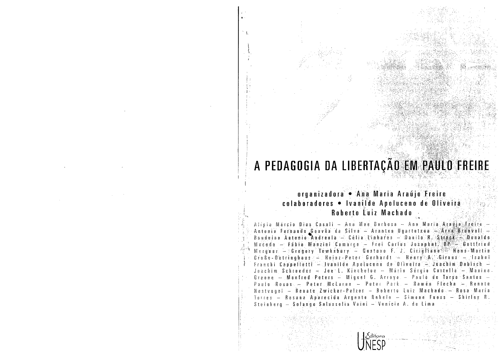 <p>A PEDAGOGIA DA LIBERTAÇÃO EM PAULO FREIRE organizadora Ana Maria Araújo Freire colaboradores Ivanilde Apoluceno de Oliveira Roberto Luiz Machado Márcio Dias Casali - Mae Barbosa Ana Maria Antonio Fernando d a Silva - - Antonio Andreola - Célia - Danilo - Macedo - Fábio Manzini Camargo - Frei Carlos Josaphat Gottfried - Gregory - Gustave Hans-Martin - Heinz-Peter Gerhardt - Henry A. Giroux - Isahel Franchi Cappelletti - Oliveira - Joachim Dabisch - Jeachim - Joe L. Kincheloe -- Mário Sérgio Cortella - Maxine Greene -- Manfred Peters - Miguel G. Arroyo - Paulo de Tarso Paulo Rosas - Peter McLaran - Peter Park - Flecha - Renate Nestvogal - Renate Palzer - Luiz Machado - Rosa Maria - Aparecida Argento - Simone - Shirley Steinberg - Salussolia Vaini - Venicio A. de Lima U NESP</p><p>legado de Paulo Freire Para aqueles que se encontram envolvidos com a pedagogia intercultural e a globalização da A pedagogia da libertação educação, a vida e pensamento em Paulo Freire de Paulo Freire representam um desafio fundamental. Freire foi, sem dúvida, um "cruzador de fronteiras", o que não significa que ele deslizasse em suas convicções. Seu pluralismo não era do tipo que relata a diversidade de opinião sem crítica, como se os diferentes modos de pensar fossem neutros. Seu compromisso com a verdade e a justiça nunca o abandonou, qualquer que fosse a fronteira que ele estivesse cruzando. Onde quer que Freire levasse a sua pedagogia, ele a representava como uma ação para a mudança e a DE liberdade. A pion distorção que se</p><p>FUNDAÇÃO EDITORA DA UNESP Presidente do Conselho Curador José Carlos Souza Trindade Diretor-Presidente José Castilho Marques Neto Assessor-Editorial Jézio Hernani Bomfim Gutierre Conselho Editorial Acadêmico Antonio Celso Wagner Zanin Ana Maria Araújo Freire (Org.) Antonio de Pádua Pithon Cyrino Benedito Antunes Carlos Erivany Fantinati Isabel Maria R. Loureiro Lígia M. Vettorato Trevisan Maria Sueli Parreira de Arruda Raul Borges A pedagogia da libertação Roberto Kraenkel Rosa Maria Feiteiro Cavalari em Paulo Freire Christine Röhrig Colaboradores Ivanilde Apoluceno de Oliveira Roberto Luiz Machado Tradutores PMB Klauss Brandini Gerhardt (KBG) SEMEC Diana de Souza Pereira (DSP) SALA DE LE'TURA Miriam Xavier de Oliveira (MXO) Reg. N° 01 Data: 15/0/108 PMB SEMEC SALA DE LEITURA U NESP Editora Reg. 001 Data: 16-04-03</p><p>1999 Ana Maria Araújo Freire Direitos de publicação reservados à: Fundação Editora da UNESP (FEU) da Sé, 108 01001-900 - São Paulo - SP Tel.: 232-7171 Fax: Home page: www.editora.unesp.br E-mail: feu@editora.unesp.br Dados Internacionais de Catalogação na Publicação (CIP) (Câmara Brasileira do Livro, SP, Brasil) À Universidade Carl von Ossistzky, de Oldenburg, que, A pedagogia da libertação em Paulo Freire / Maria Araújo Freire (Org.). - São Paulo: UNESP, 2001. reconhecendo o trabalho político-pedagógico de Paulo Freire, outorgou-lhe in memoriam, em 9 de julho de 1997, Vários autores. Título de Doutor Honoris Causa. Bibliografia. À comunidade dessa cidade, que, tendo endossado a ISBN 85-7139-322-2 decisão de sua Academia, juntou-se a ela para financiar, 1. Educação 2. Freire, Paulo, 1921-1997 3. Pedagogia em parte, este livro, possibilitando a sua publicação. Freire, Ana Maria 00-3378 CDD-370.1 Índice para catálogo sistemático: 1. Freire, Paulo: Pedagogia: Educação 370.1 afiliada: ABSU Asociación de Editoriales de América Latina y el Caribe Editoras Universitárias DIREITO M</p><p>Sumário Apresentação Ana Maria Araújo Freire 13 Parte 1 Olhares sobre a pedagogia da libertação 1 A Pedagogia do oprimido: clandestina e universal Alípio Márcio Dias Casali 17 2 Sobre a Pedagogia do oprimido Ana Mae Barbosa 23 3 A Pedagogia do oprimido de Paulo Freire Ana Maria Araújo Freire 25 4 Pedagogia como currículo da práxis Antonio Fernando da Silva 33 5 Aproximando-me Arantxa Ugartetxea 39 6 Pedagogia do oprimido: um projeto coletivo Bauduíno Antonio Andreola 43 7</p><p>Sumário A pedagogia da libertação em Paulo Freire 7 Paulo Freire: memórias como narrações compartilhadas 20 A Pedagogia do oprimido e papel central desempenhado Célia 47 por Paulo Freire em minha vida Joe L. Kincheloe 147 8 Uma pedagogia do (outro) descobrimento Danilo R. Streck 51 21 Paulo Freire, um clássico Mário Sérgio Cortella 153 9 A pedagogia antimétodo: uma perspectiva freireana Donaldo Macedo 57 22 Reflexões sobre a Pedagogia do oprimido de Paulo Freire Maxine Greene 155 10 A atualidade de Freire nos cursos de Pedagogia Fábio Manzini Camargo 65 23 Aspectos semânticos e pragmáticos da pedagogia de Paulo Freire Manfred Peters 157 11 Paulo Freire, ética e teologia da libertação Frei Carlos Josaphat, OP 71 24 Paulo Freire em tempos de exclusão 12 Paulo Freire: algumas idéias sobre a razão na solidariedade Miguel G. Arroyo 163 Gottfried Mergner 81 25 Paulo Freire: aspectos de seu humanismo radical 13 Por uma pedagogia do excluído: reflexões de um velho professor Paulo de Tarso Santos 171 Gustavo F.J. Cirigliano 93 26 Reflexões sobre a construção da Pedagogia do oprimido 14 Os postulados de Freire e os direitos da criança Paulo Rosas 175 Hans-Martin 97 27 Uma pedagogia da possibilidade: reflexões sobre a política educacional de Paulo Freire. In memoriam Paulo Freire 15 Educação libertadora e globalização Heinz-Peter Gerhardt Peter McLaren 179 101 16 Recordando legado da Pedagogia do oprimido 28 amor na pedagogia de Paulo Freire Henry A. Giroux 113 Peter Park 197 17 A experiência educativa popular freireana do Proalto 29 Por que Paulo é o principal pedagogo Ivanilde Apoluceno de Oliveira na atual sociedade da informação? Ramón Flecha 203 18 Uma pedagogia da esperança ou trinta anos depois da Pedagogia do oprimido de Paulo Freire 30 Considerações sobre a Pedagogia do oprimido Joachim Dabisch 127 Renate Nestvogel 207 19 A Pedagogia do oprimido na Alemanha 31 Trinta anos de Pedagogia do op