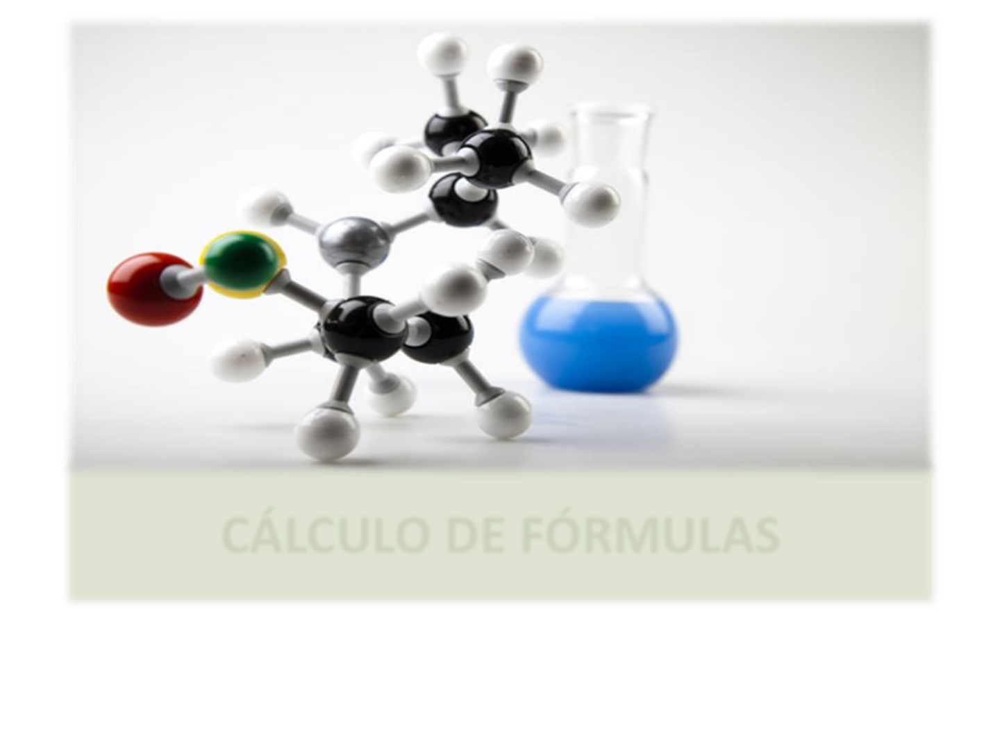 <p>CÁLCULO DE FÓRMULAS</p><p>Prof. Isabelle Peixoto</p><p>FÓRMULA PERCENTUAL</p><p>Indica a porcentagem, em massa, de cada elemento que constitui a</p><p>substância.</p><p>Exemplo:</p><p>FÓRMULA MÍNIMA / EMPÍRICA</p><p>Indica a menor porção, em números inteiros de mol, dos átomos</p><p>dos elementos que constituem uma substância.</p><p>Passos:</p><p>1. Calcular o número de mol de átomos de cada elemento;</p><p>2. Dividir os resultados pelo menor valor encontrado;</p><p>3. Multiplicar pelo menor número inteiro.</p><p>FÓRMULA MÍNIMA / EMPÍRICA</p><p>Exemplo: Amostra: 2,4 g de C + 0,6 g de H</p><p>1º Passo:</p><p>2º Passo:</p><p>Fórmula mínima:</p><p>FÓRMULA MOLECULAR</p><p>Indica o número real de átomos de cada elemento na molécula.</p><p>n = número inteiro</p><p>Exemplo:</p><p>FÓRMULA MOLECULAR</p><p>Exemplo:</p><p>1º Passo:</p><p>2º Passo:</p><p>FÓRMULA MOLECULAR</p><p>3º Passo:</p><p>Slide 1</p><p>Slide 2</p><p>Slide 3</p><p>Slide 4</p><p>Slide 5</p><p>Slide 6</p><p>Slide 7</p>