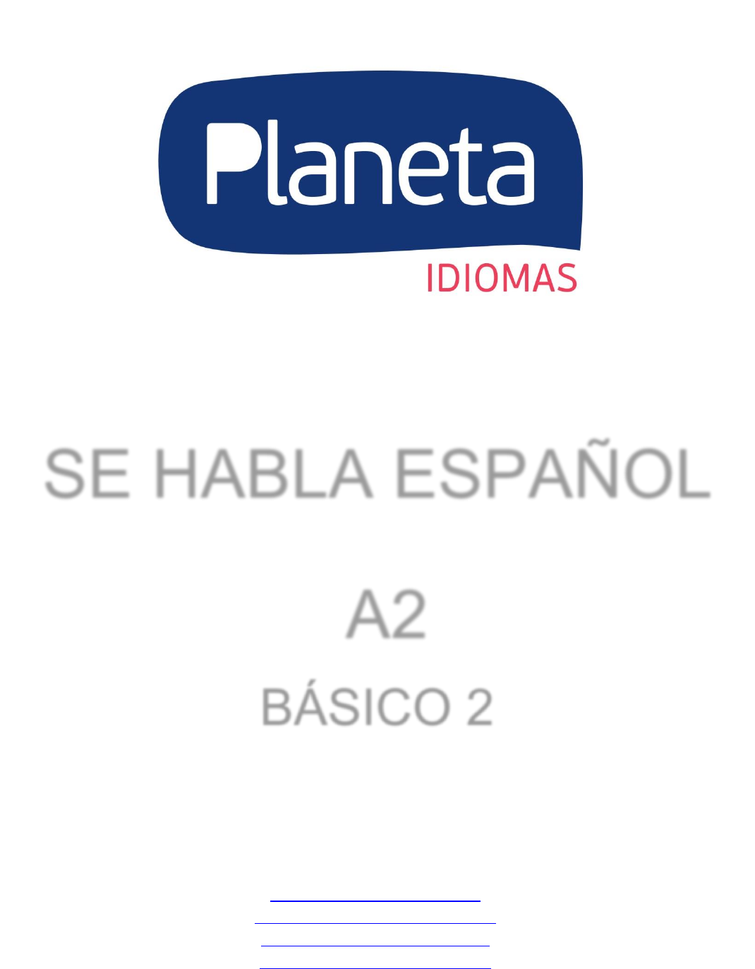 <p>SE HABLA ESPAÑOL</p><p>A2</p><p>BÁSICO 2</p><p>Planeta Centro Cultural de Idiomas</p><p>Rua Saguaçu, 80 - Bairro Saguaçu</p><p>Telefone: (47) 3422-0271 / (47) 9968-5528 (WhatsApp)</p><p>www.planetaidiomas.com.br</p><p>planeta@planetaidiomas.com.br</p><p>Facebook.com/planetaidiomas</p><p>Instagram.com/planetaidiomas</p><p>http://www.planetaidiomas.com.br/</p><p>mailto:planeta@planetaidiomas.com.br</p><p>1</p><p>UN VIAJE AL MUNDO HISPANOHABLANTE</p><p>¡Bienvenido a un nuevo planeta!</p><p>Todos los días recibimos estímulos que nos conducen a un mundo lleno de expectativas,</p><p>desafíos y nuevas personas.</p><p>Para transformar las ideas que nos van surgiendo en acciones, se requiere que trabajemos</p><p>arduamente y mantengamos un enfoque positivo. Con este objetivo, en Planeta hemos</p><p>desarrollado este curso, en el que vas a aprender a usar el español de forma eficaz y eficiente para que</p><p>puedas usarlo en tu vida tanto personal como profesional.</p><p>Nuestra intención es estimularte a buscar nuevos conocimientos y que logres éxito en todo lo</p><p>que te propongas de forma sencilla y duradera.</p><p>El siguiente curso presentado está de acuerdo a la misión de Planeta:</p><p>“Poner la cultura y el conocimiento de idiomas al servicio del bienestar y del desarrollo</p><p>personal y profesional”.</p><p>¡Buen trabajo!</p><p>Planeta Centro Cultural de Idiomas</p><p>2</p><p>ÍNDICE DE CONTENIDO</p><p>UNIDAD 1 ¿Te acuerdas? ...................................................................................................................................................................... 4</p><p>Ser y estar ....................................................................................................................................................................................................5</p><p>Muy y mucho ..............................................................................................................................................................................................6</p><p>Las partes del cuerpo ............................................................................................................................................................................8</p><p>El verbo doler ........................................................................................................................................................................................ 10</p><p>El pretérito perfecto simple de indicativo ................................................................................................................................. 12</p><p>Viajes y vacaciones ................................................................................................................................................................................ 20</p><p>Hablar sobre tus experiencias ........................................................................................................................................................... 22</p><p>Las expresiones temporales hace (que), desde hace ............................................................................................................. 23</p><p>UNIDAD 2 Recordando épocas pasadas y recientes ................................................................................................................. 24</p><p>El pretérito imperfecto de indicativo ............................................................................................................................................. 25</p><p>Tipos de vivienda ................................................................................................................................................................................... 29</p><p>El mobiliario y los utensilios de la casa ......................................................................................................................................... 31</p><p>Evaluación oral ........................................................................................................................................................................................ 33</p><p>Contraste entre pretérito perfecto simple e imperfecto ........................................................................................................ 34</p><p>Viajes y cultura: La Habana ............................................................................................................................................................... 36</p><p>El pretérito perfecto compuesto ...................................................................................................................................................... 37</p><p>Contraste de pretéritos ........................................................................................................................................................................ 43</p><p>UNIDAD 3 Estaciones y ocasiones ................................................................................................................................................. 44</p><p>El vestuario ............................................................................................................................................................................................... 45</p><p>De compras en una tienda de ropa ................................................................................................................................................ 48</p><p>El objeto directo y sus pronombres ............................................................................................................................................... 50</p><p>El objeto indirecto y sus pronombres ............................................................................................................................................ 53</p><p>El objeto directo y el objeto indirecto juntos .....................