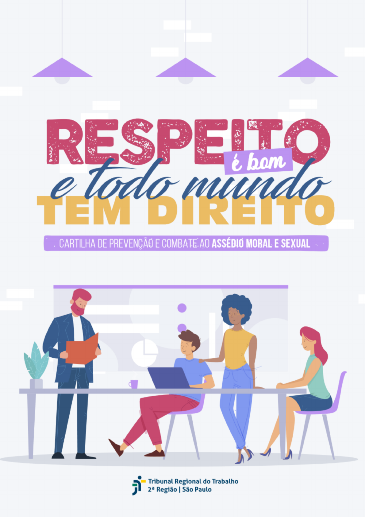 <p>bom todo CARTILHA DE PREVENÇÃO E COMBATE. AO ASSÉDIO MORAL E SEXUAL Tribunal Regional do Trabalho Região I São Paulo</p><p>[ APRESENTAÇÃO Não dá para dizer o contrário. assédio moral e o sexual existem. É uma realidade que assombra o mundo globalizado e que pode ocorrer em qualquer instituição, inclusive em nosso Tribunal. Por esta razão, o TRT-2 vem buscando intensificar ações que visem combater e prevenir qualquer situação relacionada a assédio, pois tem como prioridade a valorização e o zelo pelo bem-estar de todos que o integram. A conscientização e a capacitação de magistrados, servidores e colaboradores fazem parte dessa estratégia. A presente cartilha tem o objetivo de orientar e fornecer informações claras e objetivas a respeito do assunto, que nos ajudem a identificar o problema e buscar soluções, minorando, dessa forma, os seus efeitos nefastos ao ambiente de trabalho. Leia com atenção, compartilhe o conteúdo com seus colegas e colabore para obtermos um ambiente de trabalho sadio e harmonioso. Afinal, respeito é bom e todo mundo tem direito. Para saber mais, veja também o Ato GP 34/2019, que instituiu a Política de Prevenção e Combate ao Assédio Moral e Sexual, neste Regional.</p><p>L ASSÉDIO MORAL o QUE É? É a conduta REPETITIVA do agente público que, por ação, omissão, gestos ou palavras e excedendo os limites das suas funções, tenha por objetivo ou efeito atingir a autoestima, a autodeterminação, a evolução da carreira ou a estabilidade emocional de outro agente público ou de empregado de empresa prestadora de serviço público, com danos objetivamente aferíveis ao ambiente de trabalho. o assédio moral pode ser vertical (aquele que se configura entre pessoas de níveis hierárquicos diferentes) ou horizontal (hipótese que envolve pessoas que se encontram no mesmo nível de hierarquia).</p><p>O QUE NÃO É ASSEDIO MORAL? Exigências profissionais A exigência superior de que o trabalho seja realizado com eficiência e o estímulo ao cumprimento de metas não configuram assédio moral. Todas as atividades, a partir da definição de tarefas e de resultados a serem alcançados, apresentam certo grau de imposição. É natural que as atividades desempenhadas, assim como o comportamento profissional dos colaboradores, sejam cobrados e avaliados pela chefia. Desta forma, eventuais críticas recebidas em decorrência de tarefa não cumprida, ou realizada em desconformidade com o que foi previamente determinado, não configuram assédio moral. Aumento do volume de trabalho Há atividades que, em determinados períodos, por sua própria natureza, demandam maior volume de trabalho. Nestes casos, a exigência de realização de serviço extraordinário não configura assédio moral, desde que sejam observados os limites impostos pela legislação. Uso de mecanismos tecnológicos de controle Cada vez mais as organizações se utilizam de mecanismos tecnológicos de controle para gerir o quadro de pessoal, como o ponto eletrônico. Tais ferramentas não são consideradas meios de intimidação, na medida em que servem ao controle da frequência e da assiduidade dos colaboradores. Más condições de trabalho ambiente físico de trabalho estruturado em desconformidade com o padrão (pequeno ou pouco iluminado, por exemplo) não configura assédio moral.</p><p>SITUAÇÕES DE MORAL Todas estas situações devem ocorrer repetidamente e por tempo prolongado Retirar a autonomia do Espalhar rumores ou divulgar colaborador; boatos ofensivos a respeito da moral do colaborador; Contestar as decisões ou iniciativas do colaborador, a todo Não levar em conta seus momento; problemas de saúde; Sobrecarregar o colaborador com Criticar a vida particular da novas tarefas; vítima; Retirar o trabalho que Atribuir apelidos pejorativos; habitualmente competia ao colaborador, imotivadamente, Impor punições vexatórias provocando-lhe sensação de (dancinhas, prendas, etc); inutilidade e de incompetência; Postar mensagens depreciativas Ignorar a presença do em grupos, nas redes sociais; colaborador, dirigindo-se apenas aos demais; Evitar a comunicação direta, dirigindo-se à vítima apenas Atribuir tarefas humilhantes ao por e-mail, bilhetes ou por colaborador; terceiros ou outras formas de comunicação indireta; Gritar com o colaborador ou falar-lhe de forma desrespeitosa; Isolar fisicamente o colaborador, para que não haja comunicação com os demais colegas;</p><p>ou ironizar, Limitar o número de vezes e/ injustificadamente, as opiniões ou monitorar o tempo em que do colaborador; o colaborador permanece no banheiro; Retirar cargos em comissão ou funções gratificadas do Discriminar o colaborador em colaborador, sem motivo justo; razão de sua orientação sexual; Sobrecarregar o colaborador Impor ao colaborador de trabalho, com o fim de condições e regras de trabalho desqualificá-lo ou puni-lo; personalizadas, mais trabalhosas do que as cobradas dos outros ou Impor ao colaborador um mesmo inúteis; ambiente de trabalho de péssimas condições, com o Delegar ao colaborador tarefas objetivo de desmerecê-lo frente impossíveis de serem executadas aos demais; ou que, normalmente, são desprezadas pelos demais; Fazer comentários indiscretos quando o colaborador faltar ao Estabelecer prazos incompatíveis serviço; para o colaborador finalizar seu trabalho; Advertir o colaborador arbitrariamente; Manipular informações, deixando de repassá-las ao colaborador Instigar o controle de um com a antecedência necessária colaborador sobre o outro, para que ele possa realizar as fora da estrutura hierárquica suas tarefas; existente, para o fim de gerar desconfiança e/ou evitar a Vigiar excessivamente o solidariedade entre colegas. colaborador, de forma distinta da fiscalização exercida sobre os demais;</p><p>ATENÇÃO comportamento assediador nem sempre é perceptível de modo claro e todos somos passíveis de adotá-lo, ainda que nã