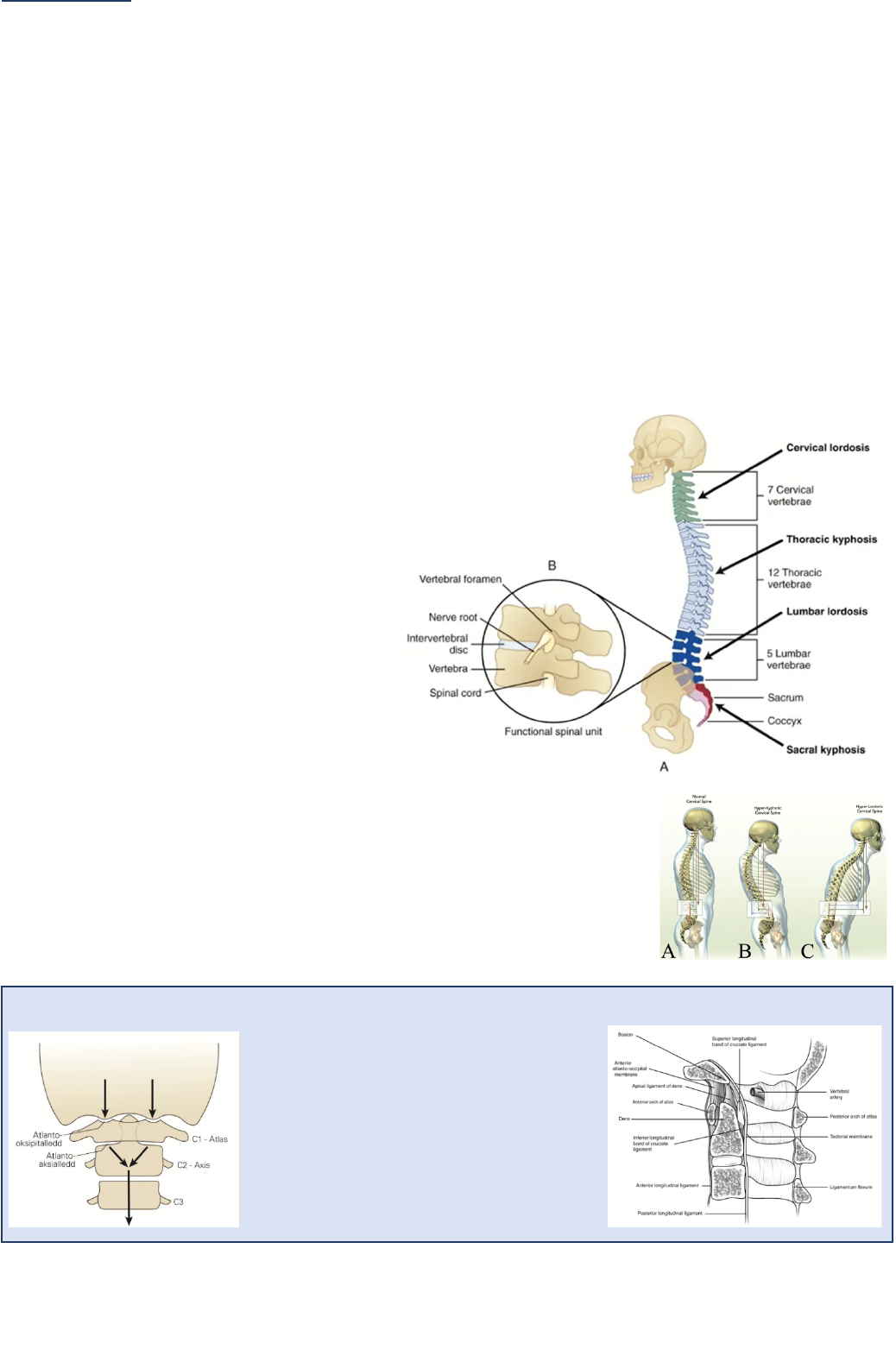 <p>Ortopedia</p><p>Aula 15 – Noções do aparelho musculoesquelético e exame Rísico I: coluna</p><p>AULA 15</p><p>Noções do aparelho musculoesquelético e exame</p><p>fıśico I: coluna</p><p>Anatomia da coluna vertebral</p><p>A coluna vertebral é composta por 7 vertebras cervicais, 12 vértebras torácicas e 5 vertebras lombares. O sacro-</p><p>coccix são vertebras normalmente fundidas. Além disso, a última vertebra lombar pode apresentar</p><p>caracterıśticas semelhantes à primeira vertebra sacral, da mesma forma que a primeira vertebra sacral pode</p><p>apresentar caracterıśticas semelhantes à ultima vertebra lombar. Dessa forma, quando existe essa apresentação,</p><p>é chamada de vértebra de transição, apresentando algumas diferenças das suas caracterıśticas habituais.</p><p>A cervical e a lombar naturalmente apresentam</p><p>uma curvatura Iisiológica de lordose, ao passo</p><p>que a torácica e a sacral apresentam uma</p><p>curvatura Iisiológica de cifose.</p><p>Cada vertebra se conecta a outra por três</p><p>articulações, sendo elas: um disco</p><p>intervertebral anteriormente, e 2 articulações</p><p>interapoIisárias ou facetas articulares</p><p>posteriormente. No entanto, entre C1 e C2 não</p><p>há presença do disco intervertebral.</p><p>Na imagem ao lado, podemos observar uma</p><p>unidade funcional da coluna, com a presença de</p><p>duas vértebras e a conexão entre elas (imagem</p><p>B). Nessa imagem, é possıv́el visualizar que</p><p>entre as articulações e abaixo do pedıćulo</p><p>(estrutura que liga a porção anterior e posterior) há a presença do forame,</p><p>porção por onde sai a raiz nervosa.</p><p>A perda dessa curvatura Iisiológica da coluna pode alterar o balanço sagital, ou</p><p>seja, a posição do tronco em relação à pelve: hipercifose ou hiperlordose,</p><p>gastando mais energia para a marcha, diIicultando a marcha e a manutenção da</p><p>ortostase.</p><p>Anatomia da cervical alta</p><p>As primeiras vertebras da coluna cervical</p><p>não apresentam um disco intervertebral</p><p>entre elas. C1 é chamada de axis e C2 de</p><p>odontoide. As articulações posteriores</p><p>estão presentes, porém na região anterior</p><p>há uma projeção de C2, enquanto C1</p><p>apresenta uma forma de arco, onde</p><p>repousa o crânio e articula com C2.</p><p>Ortopedia</p><p>Aula 15 – Noções do aparelho musculoesquelético e exame Rísico I: coluna</p><p>A medula espinhal é mais curta que a coluna vertebral, terminando no cone</p><p>medular entre L1 e L2 nos adultos. Com o Iim da medula, seguem as raıźes da</p><p>cauda equina que inervam os membros inferiores. Existem raıźes dorsais</p><p>(sensoriais) e ventrais (motoras).</p><p>Na imagem ao lado, podemos observar as vértebras e suas raıźes nervosas. Em</p><p>importante salientar que, apesar de</p><p>não haver a vértebra C8, existe a raiz</p><p>de C8.</p><p>Na coluna cervical, a nomenclatura</p><p>das raıźes e a posição das vértebras é</p><p>um pouco diferente. Por exemplo,</p><p>abaixo do pedıćulo de L4, temos a raiz</p><p>de L4. No entanto, a raiz de C5 sai</p><p>acima da vértebra C5.</p><p>Além da parte óssea, é importante sabermos as outras estruturas que dão</p><p>estabilidade à coluna, os ligamentos.</p><p>O ligamento mais</p><p>importante da região da</p><p>cervical alta é o</p><p>ligamento transverso,</p><p>em amarelo na imagem</p><p>ao lado. Esse ligamento da sustentação ao odontoide.</p><p>Além do ligamento transverso, há também o ligamento</p><p>apical e os ligamentos alares.</p><p>Já na coluna lombar, a apóIise superior (em amarelo) da articulação apresenta-se mais lateral, enquanto a</p><p>apóIise inferior (em azul) apresenta-se mais medial. A pars interarticularis (em roxo) conecta as duas</p><p>articulações. Mais medialmente, temos a lâmina (em rosa). O processo espinhoso e o processo transverso (em</p><p>verde) são projeções da vértebra, sendo o espinhoso medial e o transverso, lateral. Juntando todas essas</p><p>estruturas, temos o forame, por onde saem os nervos e vasos sanguıńeos.</p><p>Anatomia cervical em exames de imagem</p><p>A radiograIia é um exame simples e muito disponıv́el, sendo de extrema importância saber identiIicar alterações</p><p>na imagem.</p><p>Na imagem (a) abaixo, podemos observar que o processo espinhoso de C2 é maior, sendo também palpável. Ao</p><p>observar uma radiograIia de coluna, traçam-se linhas, que devem ser contornos regulares do processo</p><p>Ortopedia</p><p>Aula 15 – Noções do aparelho musculoesquelético e exame Rísico I: coluna</p><p>espinhoso posterior, anterior, corpo vertebral posterior e anterior. Na imagem é possıv́el também observar até</p><p>uma projeção de partes moles, que separa a via aérea.</p><p>Na imagem (b), podemos observar a projeção dos processos espinhoso (setas brancas) e os pedıćulos (setas</p><p>vermelhas).</p><p>Ao lado, identiIicamos uma</p><p>tomograIia de coluna</p><p>cervical normal e uma com</p><p>alteração (fratura em C7,</p><p>com presença de</p><p>componente indo em</p><p>direção ao canal), indicada</p><p>pela seta azul. A seta preta</p><p>indica uma artéria</p><p>vertebral.</p><p>Ortopedia</p><p>Aula 15 – Noções do aparelho musculoesquelético e exame Rísico I: coluna</p><p>Na ressonância magnética, a vantagem é a possibilidade de</p><p>identiIicação do conteúdo neurológico, como medula, espaço</p><p>liquórico e saco dural onde estão contidas essas estruturas.</p><p>Também é possıv́el identiIicar as articulações, principalmente</p><p>as partes cartilaginosas, não tanto as articulações bem</p><p>delimitadas.</p><p>Anatomia cervical RNM x TC</p><p>Anatomia lombar em exames de imagem</p><p>Na coluna lombar, devemos sempre observar a curvatura Iisiológica, os forames, se as alturas discais estão</p><p>preservadas, a presença do processo espinhoso e se os pedıćulos apresentam o form