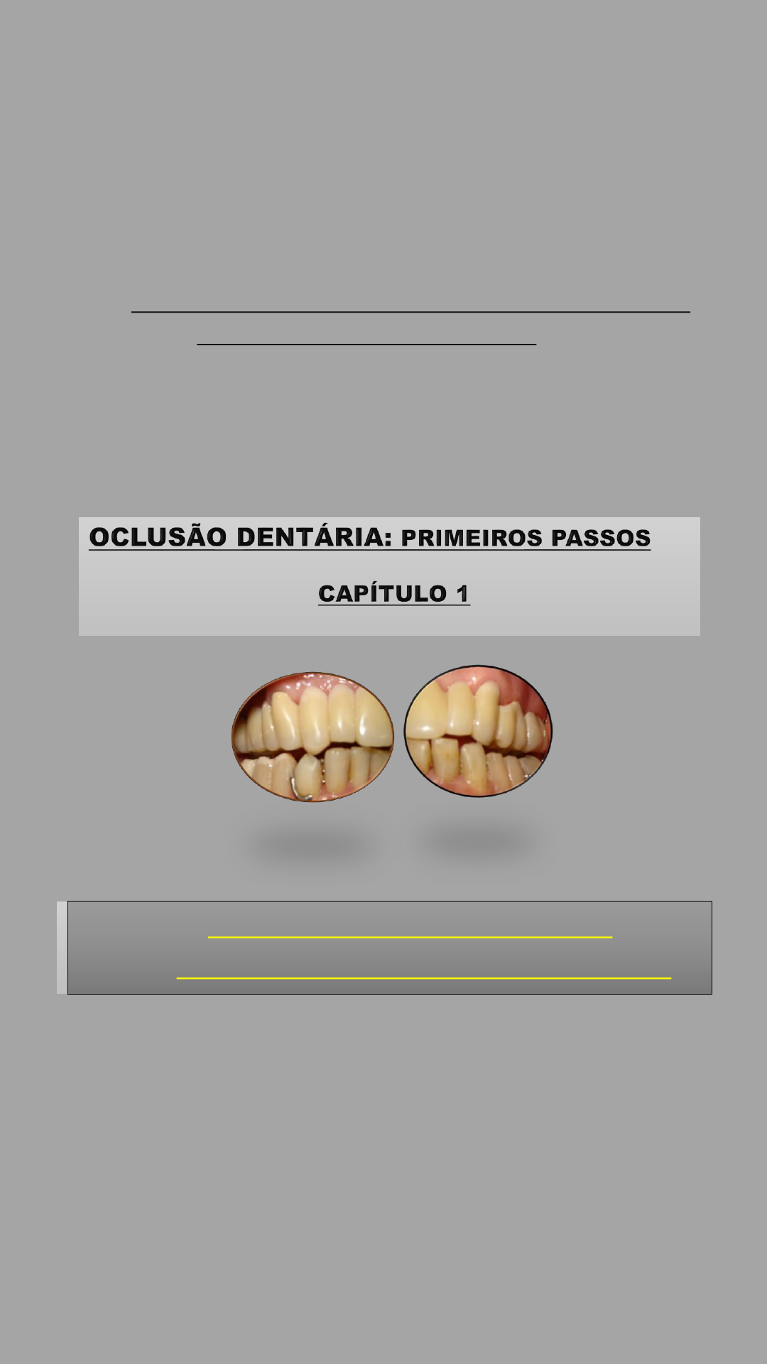 <p>UNIVERSIDADE FEDERAL FLUMINENSE</p><p>FACULDADE DE ODONTOLOGIA</p><p>CONCEITO – HISTÓRICO –</p><p>-SISTEMA ESTOMATOGNÁTICO</p><p>CONCEITO – HISTÓRICO –</p><p>-SISTEMA ESTOMATOGNÁTICO</p><p>UFF</p><p>FACULDADE DE ODONTOLOGIA</p><p>2021</p><p>OCLUSÃO DENTÁRIA:</p><p>PRIMEIROS PASSOS</p><p>CAPÍTULO I</p><p>Prof. Dr. VLADI GUIMARÃES</p><p>JÚNIOR</p><p>CONCEITO – HISTÓRICO –</p><p>-SISTEMA ESTOMATOGNÁTICO</p><p>SUMÁRIO</p><p>CAPÍTULO I</p><p>➢ OCLUSÃO DENTÁRIA: Conceito.</p><p>Histórico. Sistema Estomatognático</p><p>CAPÍTULO II</p><p>➢MECANISMO NEUROMUSCULAR</p><p>CAPÍTULO III</p><p>➢ARTICULAÇÃO TÊMPORO – MANDI-</p><p>BULAR (ATM)</p><p>Não temos a intensão de inovar nada,</p><p>mas esquematizar um assunto tão</p><p>complexo, tentando torna-lo didático.</p><p>CAPÍTULO IV</p><p>➢POSIÇÕES MANDIBULARES</p><p>CAPÍTULO V</p><p>➢MOVIMENTOS MANDIBULARES</p><p>CAPÍTULO I</p><p>OCLUSÃO DENTÁRIA: CONCEITO –</p><p>HISTÓRICO – SISTEMA</p><p>ESTOMATOGNÁTICO</p><p>I- CONCEITO</p><p>A Oclusão Dentária é a inter-relação das faces</p><p>oclusais dos dentes quer seja estática (fig. 1) ou</p><p>dinamicamente e entre todos os componentes</p><p>do Sistema Estomatognático ( S.E.) que é uma</p><p>unidade do corpo humano.</p><p>A Oclusão Dentária não é um processo de</p><p>simples posição de contato das faces oclusais</p><p>dos dentes, é parte de um todo que é o Sistema</p><p>Estomatognático (S.E.) ou Aparelho</p><p>Mastigatório ou Estomatodinâmico.</p><p>A Oclusão Dentária não deve interferir com a</p><p>liberdade dos músculos, nervos, ATMs, língua,</p><p>bochechas ou lábios – o paciente deve sentir</p><p>bem estar e conforto. Para isso, haverá</p><p>necessidade de uma Oclusão harmônica, isto é,</p><p>quando houver harmonia entre as superfícies</p><p>oclusais de ambos os arcos dentários em todas</p><p>as suas funções, cujas principais são a</p><p>mastigação, a deglutição, a fonação e com os</p><p>demais componentes do Sistema</p><p>Estomatognático.</p><p>Figura 1: Oclusão dentária,</p><p>neste caso, inter-relação</p><p>das faces oclusais dos</p><p>dentes estaticamente, em</p><p>MIH.</p><p>HUFFMAN e REGENOS afirmam que a Oclusão é</p><p>a chave da função oral e consequentemente, a</p><p>chave do diagnóstico do tratamento</p><p>restaurador. Apesar disto, a oclusão é uma área</p><p>que frequentemente é vista superficialmente ou</p><p>negligenciada pela maioria dos dentistas. Esta</p><p>tendência é totalmente compreensível pelo não</p><p>domínio do assunto devido aos controvertidos</p><p>conceitos e as mais divergentes opiniões e</p><p>conflitantes teorias sobre Oclusão. A análise e</p><p>classificação do conflito existente neste campo</p><p>parece ser mais um projeto que vale a pena,</p><p>pois opiniões, teorias e discrepâncias podem ser</p><p>resolvidas. Pré-requisitos e critérios devem</p><p>então ser estabelecidos a fim de haver uma</p><p>base para o ensino da oclusão não só para os</p><p>estudantes de graduação, como também para a</p><p>reeducação dos dentistas formados.</p><p>O tratamento das Disfunções Oclusais busca</p><p>restabelecer a harmonia entre a oclusão</p><p>dentária e os demais componentes fisiológicos</p><p>do S.E., a saber: Periodonto, ATMs e Mecanismo</p><p>Neuro-Muscular (figuras 2a e 2b).</p><p>O estudo da Oclusão Dentária compreende: da</p><p>fisiologia oclusal, da morfologia oclusal (técnica</p><p>de enceramento progressivo e do articulador</p><p>semi-ajustável, do diagnóstico das disfunções</p><p>crânio mandibulares e respectivos tratamentos.</p><p>HUFFMAN e REGENOS afirmam que a Oclusão é</p><p>a chave da função oral e consequentemente, a</p><p>chave do diagnóstico do tratamento</p><p>restaurador. Apesar disto, a oclusão é uma área</p><p>que frequentemente é vista superficialmente ou</p><p>negligenciada pela maioria dos dentistas. Esta</p><p>tendência é totalmente compreensível pelo não</p><p>domínio do assunto devido aos controvertidos</p><p>conceitos e as mais divergentes opiniões e</p><p>conflitantes teorias sobre Oclusão. A análise e</p><p>classificação do conflito existente neste campo</p><p>parece ser mais um projeto que vale a pena,</p><p>pois opiniões, teorias e discrepâncias podem ser</p><p>resolvidas. Pré-requisitos e critérios devem</p><p>então ser estabelecidos a fim de haver uma</p><p>base para o ensino da oclusão não só para os</p><p>estudantes de graduação, como também para a</p><p>reeducação dos dentistas formados.</p><p>O tratamento das Disfunções Oclusais busca</p><p>restabelecer a harmonia entre a oclusão</p><p>dentária e os demais componentes fisiológicos</p><p>do S.E., a saber: Periodonto, ATMs e Mecanismo</p><p>Neuro-Muscular (figuras 2a e 2b).</p><p>O estudo da Oclusão Dentária compreende: da</p><p>fisiologia oclusal, da morfologia oclusal (técnica</p><p>de enceramento progressivo e do articulador</p><p>semi-ajustável, do diagnóstico das disfunções</p><p>crânio mandibulares e respectivos tratamentos.</p><p>Figura 2a: paciente com</p><p>Disfunção Oclusal</p><p>Figura 2b: Terapêutica</p><p>Restauradora</p><p>(BRUXISMO)</p><p>II – HISTÓRICO</p><p>1° PERÍODO – EMPÍRICO</p><p>• STILLMAN & Mc CALL 1920</p><p>A Periodontia mostrava a</p><p>capacidade destrutiva das forças</p><p>excessivas sobre os dentes sem</p><p>medidas terapêuticas.</p><p>• Mc COLLUM – STUART –</p><p>STALLARD – 1926</p><p>Fundação da sociedade</p><p>Gnatológica da Califórnia para</p><p>tratar os problemas oclusais.</p><p>• COSTEN – 1934 - 1946</p><p>“ Era da abertura de mordida”</p><p>Síndrome de Costen: dor e</p><p>zumbido nos ouvidos, dor de</p><p>cabeça causados pelo mau</p><p>funcionamento das ATMs,</p><p>causada por compressão dos</p><p>nervos Temporal e Corda do</p><p>Tímpano. Tratamento</p><p>preconizado: trazer o côndilo para</p><p>frente com abertura de mordid