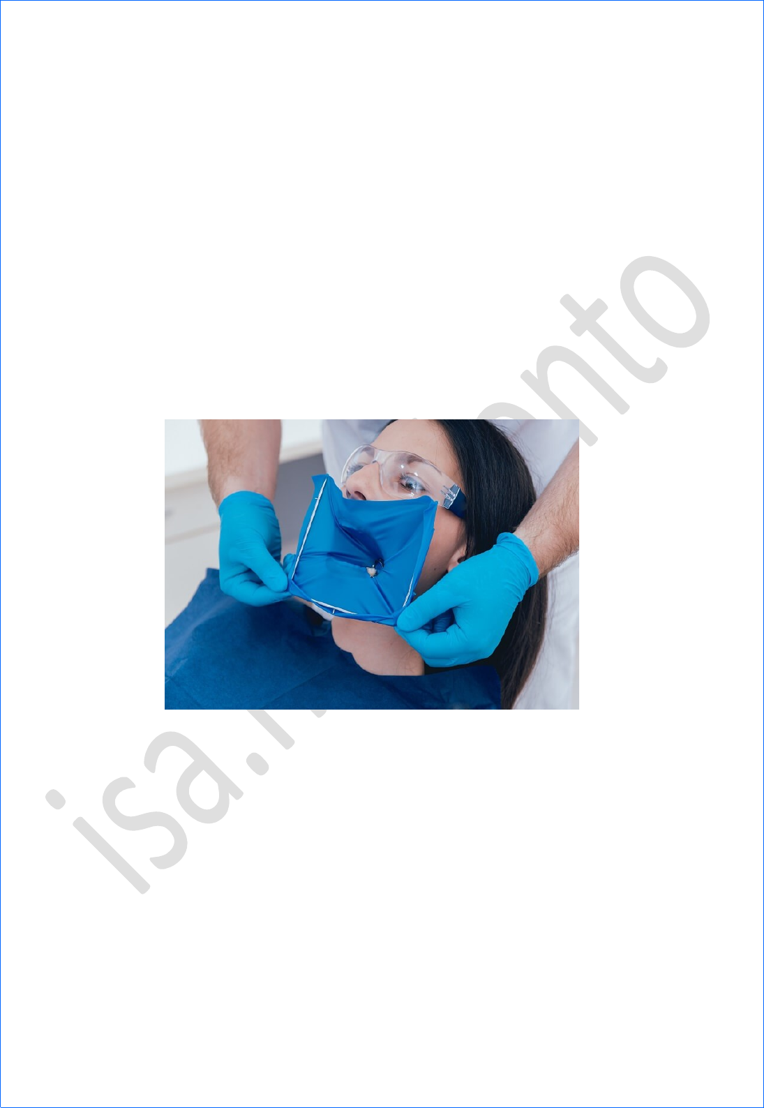 <p>Isolamento do Campo Operatório</p><p>Usado em procedimentos de modo que não tenha contaminação de sangue, saliva, controlar a umidade, obter condições assépticas durante o tratamento, prevenção de acidentes, melhor visibilidade e acesso do campo operatório.</p><p>Isolamento absoluto: É realizado com uma borracha, que é perfurada e colocada ao redor dos dentes, separando-os do resto da boca.</p><p>Isolamento relativo: usa o algodão ao redor dos dentes.</p><p>· Usado na odontopediatria, pacientes com alergia a látex, com alguma fobia.</p><p>Vantagens do Isolamento Absoluto</p><p>· Afasta tecido mole, gengiva</p><p>· Proteção do paciente contra aspiração ou deglutição de instrumentos</p><p>· Campo operatório asséptico e seco</p><p>· Proteção para o paciente e para o profissional</p><p>Limitações:</p><p>· Lesões nos tecidos moles: retratores mecânicos</p><p>· Estiramento muscular - boca aberta por longos períodos</p><p>· Alergia ao lençol de borracha</p><p>· Sufocamento com dique.</p><p>· Lâmina do grampo no dente e pressionando levemente a gengiva, os grampos têm que estar estáveis.</p><p>Lençol de borracha</p><p>· Diferença de espessura do lençol, em uma gengiva mais grossa, tem que usar um lençol mais grosso (estica menos), para ter um melhor afastamento de tecido mole.</p><p>· Quanto mais escuro o lençol for mais grosso ele é, mas não necessariamente mais resistente.</p><p>· Usa-se mais o azul pois ele se opõe a cor do dente</p><p>Como os dentes são de tamanhos diferentes, os buracos do lençol serão de acordo com o dente a ser isolado.</p><p>· 1 grampo</p><p>· 2 molares</p><p>· 3 pré-molares e caninos</p><p>· 4 anteriores e superiores</p><p>· 5 anteriores inferiores</p><p>· Os grampos servem para retenção/estabilização do lençolalça para distal</p><p>Técnica Passo a Passo Isolamento Absoluto</p><p>Primeiro inicia o preparo cavitário com ponta diamantada (se for uma restauração de amalgama isola antes)</p><p>Checa os contatos proximais com fio dental</p><p>Escolhe o grampo adequado</p><p>Isola com o lençol de borracha</p><p>Técnica de isolamento</p><p>Técnica de Stibbs: Grampo (sem asa) - borracha + arco consegue fazer sozinho</p><p>Técnica de Ryan: Borracha + arco – grampo</p><p>Técnica de Parulla: Grampo + borracha + arco</p><p>Amarrilhos: Lençol tem que entrar no sulco gengival, por isso usa-se amarrilhos de fio dental até a região cervical de dente.</p><p>Isolamento relativo: usado quando não conseguia realizar o absoluto de jeito nenhum</p><p>· Adequação do meio bucal;</p><p>· Diagnóstico de cárie;</p><p>· Cimentação provisória;</p><p>· Aplicação tópica de flúor;</p><p>· Impossibilidade de realizar o isolamento absoluto</p><p>· Restaurações provisórias;</p><p>· Procedimentos curtos.</p><p>image3.jpeg</p><p>image4.png</p><p>image1.jpg</p><p>image2.png</p>