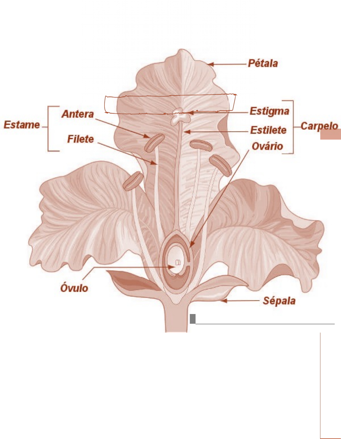 <p>Gimnospermas e Angiospermas</p><p>Gimnospermas</p><p>Principais características:</p><p>· São cormófitas;</p><p>· Traqueófitas (vasculares);</p><p>· Embriófitas;</p><p>· São as primeiras plantas produtoras de estruturas reprodutoras evidentes, os estróbilos, sendo, por isso, denominadas fanerógamas;</p><p>· São espermatófitas (possuem sementes);</p><p>· As gimnospermas são floríferas, mas não frutíferas, produzindo “sementes nuas”;</p><p>· As estruturas reprodutoras das gimnospermas são denominados estróbilos, onde se desenvolvem os esporângios, portanto, os esporófitos das gimnospermas que formam flores.</p><p>· A geração gametofítica é ainda mais reduzida que a das pteridófitas, desenvolvendo-se no interior dos esporângios, ou mais precisamente, dos esporos, o que caracteriza o desenvolvi mento endospórico do gametófito;</p><p>· A presença de um estróbilo garante também a existência de grãos de pólen, o que torna a reprodução independente da água;</p><p>· O pólen é transportado pelo vento, caracterizando uma polinização anemófila;</p><p>· São sifonógamas, possuem tudo polínico;</p><p>· A presença do grão de pólen e do tubo polínico torna as gimnospermas as primeiras plantas terrestres bem adaptadas a ambientes secos;</p><p>Reprodução sexuada em gimnospermas:</p><p>· Heterosporadas, com formação de micrósporos masculinos e de megásporos femininos;</p><p>· Estróbilos, ramos férteis, localizados no esporófito (2n), fase duradoura da planta;</p><p>· Microstróbios masculinos contem microsporângios (ou androsporânigios) masculinos (2n), formadores, por meiose, de esporos masculinos (n), micrósporos (ou andrósporos);Gimnospermas - Resumo</p><p>· Esporófito (2n): planta desenvolvida com raiz, caule, folhas, flores e sementes.</p><p>· Microstróbios (2n): flor masculina.</p><p>· Megástróbilo (2n): flor feminina.</p><p>· Grãos de pólen (n): esporos masculinos (micrósporos) modificados contendo sacos aéreos e o gametófito masculino em seu interior</p><p>· Gametófito masculino (n): conjunto formado por célula do tubo e célula geradora (gametófito imaturo) e tubo polínico (gametófito maduro).</p><p>· Gameta masculino (n): núcleos espermáticos.</p><p>· Gametófito feminino (n): megaprótalo com arquegônios; futuramente forma o endosperma para reserva nutritiva na semente.</p><p>· Gameta feminino (n): oosfera</p><p>· Óvulo (2n): megasporângio revestido por tegumento.</p><p>· Semente: óvulo fecundado e desenvolvido</p><p>· Os megástróbilos femininos, também conhecidos como pinhas ou cones, contêm megasporângios (ou ginosporângios) femininos (2n), e formadores, por meiose, de esporos femininos (n), megásporos (ou ginósporos);</p><p>· Após a formação dos micrósporos, há o surgimento do gametófito masculino, que após a degeneração forma a célula do tubo, ou vegetativa, e a célula geradora, ou generativa.</p><p>· Esse micrósporo então se desenvolve e modificasse no chamado grão de pólen;</p><p>· Nos megástróbilos, desenvolvem-se os megasporângios que recebe o nome de óvulo. Em gimnospermas, portanto, o óvulo não é o gameta feminino, e sim o megasporângio revestido por tegumentos;</p><p>· No megasporângio, uma única célula origina quatro células haploides, ao sofrer meiose. Destas, três degeneram e apenas uma passa a ser o megásporo funcional (n);Nathalia Brito</p><p>· Em determinadas épocas do ano os grãos de pólen são liberados e facilmente transportados pelo vento;</p><p>· Alguns deles podem passar através da micrópila do óvulo, atingindo uma pequena cavidade do ápice do megasporângio;</p><p>1. Após a polinização, o megásporo funcional (n) sofre várias mitoses e dão origem a um gametófito feminino (n), chamado megagametófito, onde se diferenciam em dois ou três arquegônios e em cada arquegônio se diferencia apenas um gameta feminino, a oosfera (n);</p><p>2. O grão de pólen inicia sua germinação. A célula do tubo desenvolve-se, dando origem a uma estrutura longa denominada tubo polínico;</p><p>3. Essa estrutura cresce até atingir o megásporo funcional. A célula geradora então se divide originando dois núcleos espermáticos, os gametas masculinos, que se dirigem para o tubo polínico;</p><p>4. Um deles fecunda a oosfera, gerando um zigoto (2n), o outro degenera;</p><p>5. Todos os zigotos começam a se transformas em embriões (2n), mas em geral apenas um se desenvolve;</p><p>6. O embrião (2n) permanece no interior do gametófito feminino (n), que acumula substâncias nutritivas, dando origem a um tecido nutritivo haploide denominado endosperma (n);</p><p>7. os tegumentos endurecem, passando a formar uma estrutura denominada casca ou tegumento, que em conjunto formam a semente;</p><p>Angiospermas</p><p>Principais características:</p><p>· São cormófitas, traqueófitas (vasculares), embriófitas, espermatófitas, sifonógamas e fanerógamas;</p><p>· As duas diferenças primordiais consistem na existência de flores verdadeiras contendo pétalas, osmóforos e nectários para a atração de agentes polinizantes, e de frutos, no interior dos quais ficam abrigadas as sementes, e que ajudam na dispersão do vegetal</p><p>Monocotiledôneas e dicotiledôneas:</p><p>· Monocotiledôneas comuns são as das famílias das gramíneas (milho, trigo, cana-de-açúcar, bambu etc) e das palmáceas (palmeiras, coqueiros...).</p><p>· Dicotiledôneas são a maioria das angiospermas, com destaque para a família das leguminosas (plantas cujas sementes estão em vagens, frutos secos: feijão, soja, ervilha etc);</p><p>Monocotiledôneas:</p><p>· Raiz -> Fasciculada ou “em cabeleira”. Não há raiz principal;</p><p>· Caule (morfologia) -> São do tipo colmo nas gramíneas e estipe nas palmáceas;</p><p>· Caule (histologia) e folha -> Xilema e floema difusos, folhas invaginantes e paralelinérvea;</p><p>· Flor e fruto -> Trímera ((c