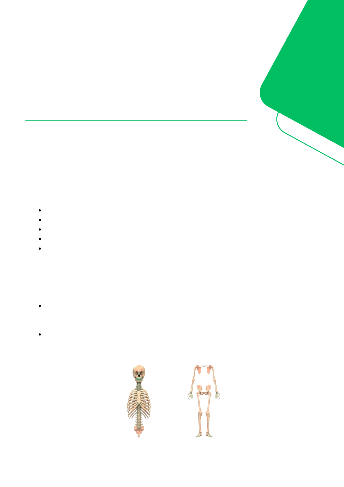 <p>O sistema esquelético é composto por ossos e cartilagens que estão perfeitamente</p><p>arranjados na formação do nosso esqueleto.</p><p>FUNÇÕES</p><p>Sustentação do corpo e suporte ao organismo.</p><p>Proteção dos órgãos internos e tecidos moles.</p><p>Movimentação do corpo, em conjunto com os músculos.</p><p>Hematopoiética (produção das células do sangue pela médula óssea vermelha).</p><p>Armazenamento de Sais Minerais, principalmente Cálcio e Fósforo.</p><p>DIVISÃO DO ESQUELETO</p><p>O esqueleto humano é dividido em duas regiões descritivas: o axial e o apendicular.</p><p>Esqueleto Axial: compreendem os ossos do crânio e os ossos associados (ossículos da</p><p>audição e o osso hioide), a caixa torácica (costelas e esterno) e a coluna vertebral.</p><p>Esqueleto Apendicular: compreendem os ossos dos membros superiores e inferiores e os</p><p>cíngulos ou cinturas dos membros superiores (clavícula e escápula) e inferiores (ossos</p><p>do quadril).</p><p>Morfofisiologia</p><p>Básica e dos Sistemas</p><p>de Controle</p><p>Sistema Esquelético</p><p>ESQUELETO</p><p>APENDICULAR</p><p>ESQUELETO</p><p>AXIAL</p><p>CLASSIFICAÇÃO DOS OSSOS</p><p>Os ossos são classificados de acordo com sua forma em: longos, curtos, planos,</p><p>sesamoides, irregulares, pneumáticos, alongados e suturais.</p><p>Ossos longos: são ossos cujo comprimento, é maior que a largura e a espessura. Possui</p><p>um canal central com medula óssea amarela. Esses ossos possuem uma diáfise, a parte</p><p>média do osso ou o corpo do osso, que conecta as suas duas extremidades, conhecidas</p><p>como epífises. Já as metáfises estão presentes entre as epífises e a diáfise e</p><p>correspondem às zonas de crescimento do osso. Exemplos de ossos longos: úmero,</p><p>rádio, ulna, fêmur, tíbia, fíbula, entre outros.</p><p>EPÍFISE</p><p>DIÁFISE</p><p>METÁFISE</p><p>METÁFISE</p><p>EPÍFISE</p><p>Ossos curtos: o formato desses ossos é parecido com um cubo, já que</p><p>comprimento, altura e largura são praticamente iguais. Exemplos:</p><p>ossos do carpo e tarso, respectivamente na mão e no pé.</p><p>Ossos planos: também são chamados de ossos laminares ou chatos e</p><p>fornecem proteção para os órgãos internos do corpo. Exemplos: ossos</p><p>do crânio e escápula.</p><p>Ossos sesamoides: são incorporados a tendões. Geralmente são pequenos e possuem</p><p>formato oval. Conferem proteção as regiões que suportam atritos, tensão e estresse</p><p>físico. Exemplos: patela, no joelho.</p><p>Ossos irregulares: devido à sua forma e estrutura irregular e variável, os ossos</p><p>irregulares não se encaixam em nenhuma outra categoria. Exemplos: ossos da coluna</p><p>vertebral (vértebras) e os ossos da pelve (ílio, ísquio e púbis).</p><p>Ossos pneumáticos: apresenta uma ou mais cavidades, de volume variável revestidas</p><p>de mucosa e contendo ar. Estas cavidades recebem o nome de seio. Exemplos: frontal,</p><p>maxilar, temporal, etmóide e esfenóide (ossos do crânio).</p><p>Ossos alongados: apresenta um comprimento consideravelmente maior que a largura e</p><p>a espessura, no entanto são curvados. Exemplos: costelas e clavícula.</p><p>Ossos suturais: pequenos ossos localizados nas suturas entre certos ossos cranianos.</p><p>Seu número varia de um indivíduo para o outro.</p><p>https://www.kenhub.com/pt/library/anatomia/coluna-vertebral-espinha</p><p>https://www.kenhub.com/pt/library/anatomia/coluna-vertebral-espinha</p><p>https://www.kenhub.com/pt/library/anatomia/pelve</p><p>https://www.kenhub.com/pt/library/anatomia/ilio</p><p>https://www.kenhub.com/pt/library/anatomia/isquio</p><p>https://www.kenhub.com/pt/library/anatomia/pubis-pt</p><p>•O tecido ósseo é um tipo especializado de tecido</p><p>conjuntivo formado por células, e material</p><p>extracelular calcificado, a matriz óssea.</p><p>1) Osteoblastos: células jovens com intensa</p><p>atividade metabólica e responsáveis pela produção</p><p>da parte orgânica da matriz óssea.</p><p>2) Osteócitos: células maduras derivadas do</p><p>osteoblastos, têm um papel fundamental na</p><p>manutenção da integridade da matriz óssea.</p><p>3) Osteoclastos: células que participam dos</p><p>processos de reabsorção e remodelação do tecido</p><p>ósseo.</p><p>• Tecido Ósseo Compacto: sem cavidades; forma a</p><p>camada externa de todos os ossos; forma de tecido</p><p>ósseo mais resistente e denso; constitui a maior</p><p>parte dos ossos longos.</p><p>• Tecido Ósseo Esponjoso: presença de uma série de</p><p>cavidades; localizado na parte interna dos ossos;</p><p>protegido pelos ossos compactos.</p><p>ESTRUTURA ÓSSEA</p><p>Diáfise: corpo do osso. Parte principal cilíndrica e longa do osso.</p><p>Epífises: terminações proximal e distal do osso.</p><p>Metáfises: regiões entre a diáfise e as epífises. Nos ossos em crescimento, cada</p><p>metáfise contém uma lâmina epifisial.</p><p>Cartilagem articular: fina camada de cartilagem que recobre parte da epífise na qual o</p><p>osso forma articulação com outro, reduzindo o atrito e absorvendo choques em</p><p>articulações muito móveis.</p><p>Periósteo: membrana conjuntiva que reveste externamente os ossos, com exceção das</p><p>superfícies articulares. Protege o osso, auxilia no reparo de fraturas e ajuda na nutrição</p><p>do tecido ósseo.*</p><p>Cavidade medular: espaço cilíndrico oco no interior da diáfise, abriga a médula óssea</p><p>amarela e muitos vasos sanguíneos.</p><p>Endósteo: fina membrana que reveste a cavidade medular.</p><p>**Os ossos do neurocrânio estão fixados uns</p><p>aos outros por meio de suturas (um tipo de</p><p>articulação fibrosa). As suturas</p><p>incluem: coronal, lambdóidea, sagital,</p><p>escamosa, esfenoparietal, esfenoescamos,</p><p>parietomastóidea e occipitomastóidea.</p><p>OSSOS DO ESQUELETO AXIAL</p><p>O crânio é divido em neurocrânio** e viscerocrânio (esqueleto da face)