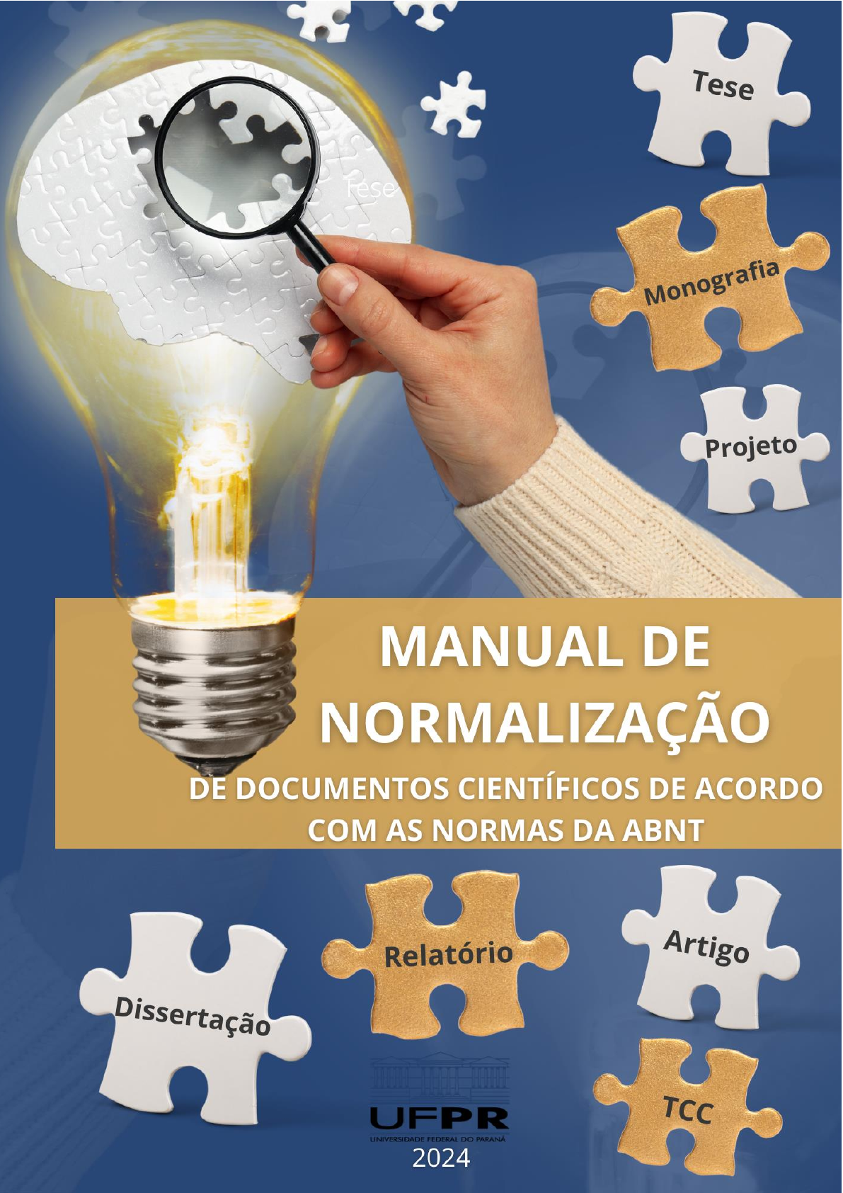<p>VILMA MACHADO</p><p>BERENICE RODRIGUES FERREIRA</p><p>CAMILA DE SOUZA DORNELES</p><p>EDUARDO SILVEIRA</p><p>LIDIANE DO PRADO REIS E SILVA</p><p>PAULA CARINA DE ARAÚJO</p><p>MANUAL DE NORMALIZAÇÃO DE DOCUMENTOS CIENTÍFICOS DE</p><p>ACORDO COM AS NORMAS DA ABNT</p><p>CURITIBA</p><p>2024</p><p>MANUAL DE NORMALIZAÇÃO DE DOCUMENTOS CIENTÍFICOS DE ACORDO COM AS</p><p>NORMAS DA ABNT</p><p>@Sistema de Bibliotecas da UFPR</p><p>Reitor</p><p>Prof. Dr. Ricardo Marcelo Fonseca</p><p>Vice-Reitora</p><p>Profa. Dra. Graciela Bolzón de Muniz</p><p>Revisão final</p><p>Angela Pereira de Farias Mengatto</p><p>Telma Terezinha Stresser de Assis</p><p>Capa</p><p>Vilma Machado</p><p>Diego Andrade Neves</p><p>Formatação/diagramação</p><p>Vilma Machado</p><p>CATALOGAÇÃO NA FONTE – SIBI/UFPR</p><p>Manual de normalização de documentos científicos de acordo com as</p><p>normas da ABNT [recurso eletrônico]/ Vilma Machado [et al] – 2. ed.</p><p>- Curitiba: UFPR:SiBi, 2024.</p><p>414 p. : il.</p><p>ISBN: 978-65-5458-148-6</p><p>1. Pesquisa – Metodologia. 2. Redação técnica. 3. Relatórios técnicos</p><p>– Documentação. 4. Associação Brasileira de Normas Técnicas. I.</p><p>Machado, Vilma. II. Ferreira, Bernice Rodrigues. III. Título.</p><p>CDD 001.42</p><p>CDU 001.891</p><p>Bibliotecária: Vilma Machado CRB9/1563</p><p>A Comissão agradece a colaboração das</p><p>bibliotecárias,</p><p>Angela Pereira de Farias Mengatto e Telma Terezinha Stresser de</p><p>Assis pela revisão técnica. Agradecemos a todos os que</p><p>colaboraram por meio das sugestões, contribuindo para a</p><p>realização desta nova edição. Agradecemos também a toda</p><p>comunidade acadêmica: estudantes, professores(as) e</p><p>servidores(as), que utilizam este manual desenvolvido pela</p><p>Comissão de Normas do SiBi/UFPR,</p><p>revisado e atualizado periodicamente.</p><p>PREFÁCIO</p><p>Ao prefaciar a obra “Manual de normalização de documentos científicos de acordo</p><p>com as normas da ABNT”, segunda edição (2023), é possível perceber a propriedade e a</p><p>adequação do texto às dimensões da pesquisa científica. Congratulo-me com o Sistema de</p><p>Bibliotecas da Universidade Federal do Paraná (SiBi/UFPR), representado pela equipe</p><p>coordenadora, Vilma Machado, Berenice Rodrigues Ferreira, Camila de Souza Dorneles,</p><p>Eduardo Silveira, Lidiane do Prado Reis e Silva e Paula Carina de Araújo. Seu compromisso</p><p>com o estudo e a prática da normalização de documentos científicos converge com as</p><p>atualizações das normas de documentação propostas pela Associação Brasileira de</p><p>Normas Técnicas (ABNT), por meio do Comitê Brasileiro de Informação e Documentação</p><p>(CB-14).</p><p>Destaco prioritariamente as lídimas motivações da obra, decorrentes de um</p><p>comprometimento da UFPR com a primeira edição das normas atualizadas, em 1977,</p><p>inaugurando uma trajetória histórica, com o título de “Roteiro para Apresentação de</p><p>Publicações”, edição revista e ampliada, transformada em anos subsequentes, até chegar</p><p>a esta edição atualizada, incluindo as alterações da NBR 10520/2023 - Informação e</p><p>documentação – Citações em documentos – Apresentação. Dessa trajetória, recordo-me</p><p>especialmente da segunda edição, com o título Normas para Apresentação de Trabalhos,</p><p>de 1981, já reconhecida pela comunidade acadêmica e cuja demanda, principalmente para</p><p>uso de acadêmicos de todo o país, passou a ser respondida pela recém-criada Editora da</p><p>UFPR, em 1987.</p><p>Decorrente de necessidades apresentadas pelo campo da atuação ao qual se</p><p>aplicam as normas, a leitura desta edição mostra a importância do seu conteúdo,</p><p>relacionado aos princípios gerais orientadores da dinâmica normativa. Com a pretensão</p><p>de esclarecer as dúvidas e conflitos existenciais sobre as atualizações, possíveis e</p><p>preferíveis, no contexto da produção científica, as normas consolidadas enfrentam,</p><p>entretanto, reações de contrariedade, especialmente por universitários, discentes ou</p><p>docentes. Como professora de disciplinas voltadas à produção e comunicação científica,</p><p>na graduação e, mais especialmente na pós-graduação, permito-me dialogar sobre a</p><p>validade das normas orientadoras da produção científica, diante dos argumentos</p><p>acadêmicos de inspiração foucaultiana, corrente muito fortalecida nas áreas de ciência</p><p>humanas e sociais à época. Segundo seus argumentos, as normas concorreriam para a</p><p>construção de um modelo ou paradigma destinado à distinção entre o normal e o anormal.</p><p>Fora dos padrões estipulados, o “anormal” estaria sujeito aos instrumentos de correção,</p><p>pautados, sobretudo, em mecanismos de exclusão. Em bancas de mestrado e doutorado,</p><p>os conflitos têm sido gerados, também, a partir das críticas de colegas docentes sobre a</p><p>validade de um estilo “seco”, excessivamente sintético, na produção do resumo, ou na</p><p>insistência deles em utilizar a primeira pessoa do singular ou do plural, como forma de</p><p>tratamento. Esquecem, neste caso, a função do resumo como forma de representação de</p><p>um texto completo, ou seja, um documento fora do próprio texto, mas como mediador</p><p>universal para a conhecimento e divulgação da obra, no caso o trabalho científico. Assim,</p><p>o formato de manual, perfeitamente justificável para este tipo de obra, foge do escopo de</p><p>uma exposição de motivos, explicativa de cada uma das prescrições ou detalhamentos</p><p>normalização de documentos científicos ou acadêmicos, às vezes consideradas sem</p><p>sentido, ou de estilo “seco” pelos “rebeldes criativos”.</p><p>Outro aspecto a incentivar a argumentação em pauta, para a necessidade de</p><p>compreensão do processo de normatização na comunica