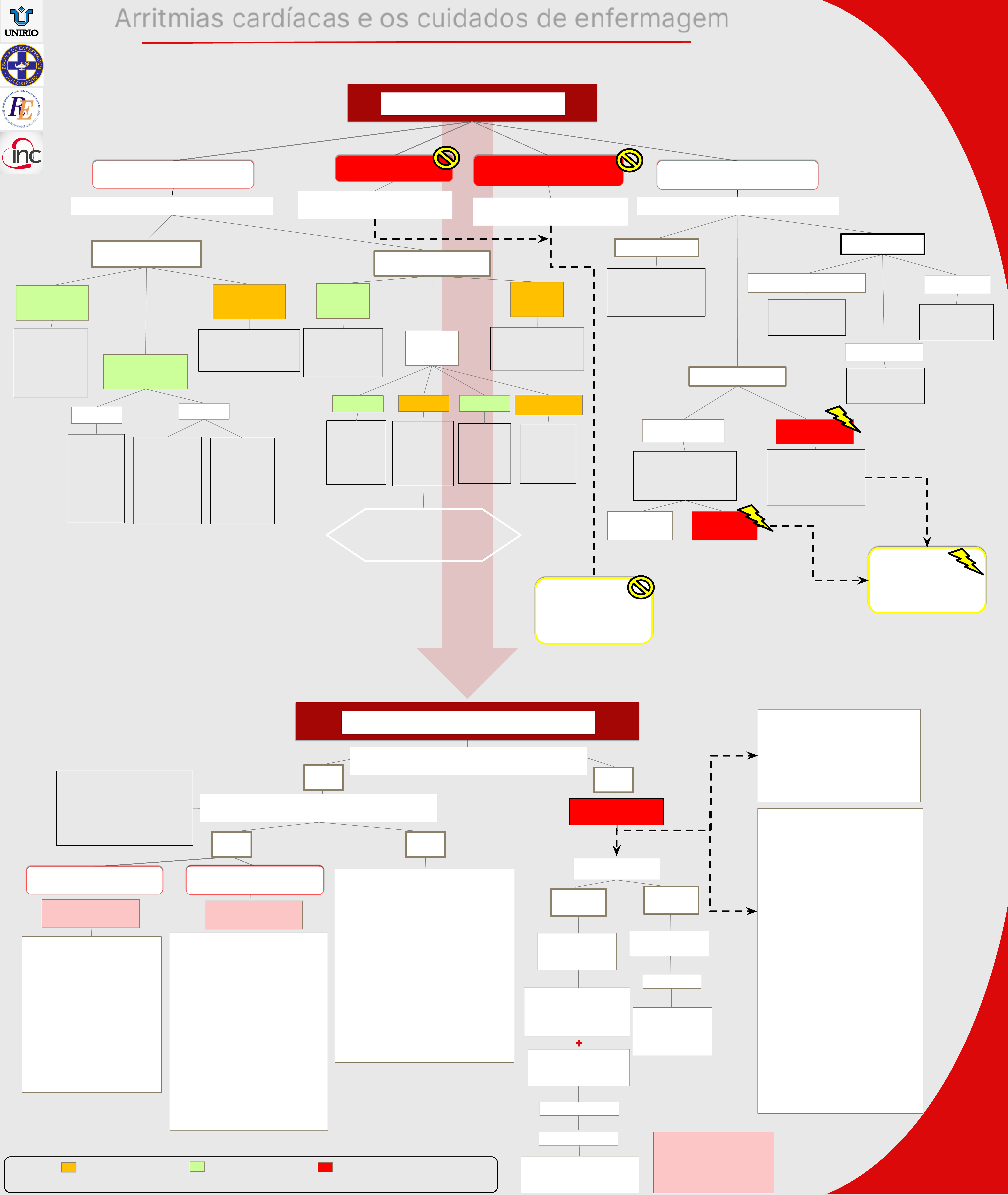 <p>Arritmias cardíacas e os cuidados de enfermagem</p><p>Karoliny Alves Santos Paula Rodrigues dos Santos Tatianne Soares Pereira</p><p>DISFUNÇÃO DO NÓ</p><p>SINUSAL BLOQUEIOS</p><p>ATRIOVENTRICULARES</p><p>Presença de onda P</p><p>normal antes de cada</p><p>complexo QRS. Intervalo</p><p>PR curto. FC> 100 bpm</p><p>VENTRICULARES</p><p>ARRITMIAS</p><p>Presença de</p><p>onda P normal</p><p>antes de cada</p><p>complexo QRS.</p><p>Com FC<50</p><p>bpm</p><p>Pausas >3 seg. na</p><p>atividade atrial, com</p><p>ritmo de base sinusal</p><p>Atraso do</p><p>impulso.</p><p>Relação</p><p>P:QRS é de</p><p>1:1</p><p>1ºGrau</p><p>Bloqueio de</p><p>saída sinusal</p><p>Parada sinusal</p><p>Tipo II-</p><p>Pausa sinusal</p><p>que é múltiplo</p><p>exato do</p><p>intervalo PP</p><p>de base</p><p>2ºGrau</p><p>Tipo I-</p><p>Encurtamento</p><p>do intervalo</p><p>PP até uma</p><p>falha de</p><p>condução de</p><p>onda P</p><p>Frequência cardíaca > 100 bpm</p><p>Bradicardia</p><p>sinusal</p><p>TAQUIARRITMIASBRADIARRITMIAS</p><p>BAV 1º</p><p>Grau</p><p>BAV 2º</p><p>Grau</p><p>BAV 3º</p><p>Grau</p><p>Tipo I Tipo II BAV 2:1 BAV</p><p>Avançado</p><p>Intervalo PR></p><p>0,2seg. Toda</p><p>onda P seguida</p><p>de QRS</p><p>Aumento</p><p>progressivo do</p><p>intervalo PR,</p><p>até ocorrer P</p><p>bloqueada</p><p>Intervalo PR</p><p>constante,</p><p>antes e depois</p><p>de P</p><p>bloqueada.</p><p>QRS largo.</p><p>A cada duas</p><p>ondas P</p><p>apenas uma</p><p>produz</p><p>complexo</p><p>QRS</p><p>Sequência de</p><p>ondas P</p><p>bloqueadas</p><p>Dissociação</p><p>atrioventricular.</p><p>Ventrículo produz</p><p>seu ritmo próprio</p><p>Maior associação com</p><p>síncope e probabilidade de</p><p>evolução para BAVT</p><p>Frequência cardíaca < 50 bpm</p><p>LEGENDA: Bradiarritmias malignas Bradiarritmias Benignas Ritmos de Parada Cardiorrespiratória</p><p>Referências: ACLS - AHA, 2021; AMÉRICO, 2016; LUCENA e SILVA, 2017; THE 6 SECOND ECG.</p><p>Flutter atrial</p><p>ATRIAISSINUSAL</p><p>Fibrilação atrial</p><p>Taquisupraventricular</p><p>Taquiventricular</p><p>(TV)</p><p>Fibrilação</p><p>ventricular (FV)</p><p>ASSISTOLIA</p><p>TV com</p><p>pulso</p><p>TV sem</p><p>pulso</p><p>Ausência de onda</p><p>P, ritmo irregular,</p><p>ondas F irregulares</p><p>Ondas F</p><p>regulares, aspecto</p><p>serrilhado</p><p>FC>100bpm com</p><p>QRS estreito</p><p>Presença de três ou mais</p><p>complexo QRS alargados</p><p>consecutivos, não</p><p>precedidos de onda P</p><p>RITMOS</p><p>CHOCÁVEIS</p><p>ATIVIDADE ELÉTRICA</p><p>SEM PULSO (AESP)</p><p>Ausência de onda no ECG e</p><p>ausência de pulso Presença de onda no ECG e</p><p>ausência de pulso</p><p>RITMOS</p><p>NÃO CHOCÁVEIS</p><p>CUIDADOS DE ENFERMAGEM</p><p>TAQUIARRITMIASBRADIARRITMIAS</p><p>Avaliar se há presença de pulso</p><p>SIM NÃO</p><p>Ritmo de Parada</p><p>Cardiorrespiratória</p><p>Avaliar se há sinais de instabilidade hemodinâmica</p><p>Hipotensão; Alteração do nível</p><p>de consciência; Sinais de</p><p>choque; Desconforto torácico</p><p>isquêmico; Insuficiência</p><p>cardíaca aguda</p><p>SIM NÃO</p><p>Manter vias aéreas do paciente patentes</p><p>e auxiliar a respiração se necessário;</p><p>Ofertar oxigênio se o paciente estiver</p><p>hipoxêmico;</p><p>Monitorizar o ritmo cardíaco, a pressão</p><p>arterial e a oximetria de pulso;</p><p>Realizar punção de acesso venoso</p><p>periférico calibroso;</p><p>Realizar ECG de 12 derivações;</p><p>Preparar material para administração ou</p><p>infusão de medicamentos antiarrítmicos.</p><p>CARDIOVERSÃO</p><p>SINCRONIZADA</p><p>Preparar: Cardioversor,</p><p>monitorização, dispositivo de</p><p>sucção, linha intravenosa e</p><p>materiais de intubação.</p><p>Selecionar o nível de energia de</p><p>acordo com a recomendação do</p><p>fabricante para maximizar o</p><p>sucesso do primeiro choque.</p><p>Considerar sedação do paciente</p><p>antes do procedimento, mas não</p><p>atrasar o tratamento.</p><p>Observar se há necessidade de</p><p>ressincronizar o cardioversor após</p><p>cada cardioversão sincronizada.</p><p>Se for ineficaz:</p><p>Preparar materiais para</p><p>estimulação transcutânea e/ou</p><p>infusão de DOPAMINA ou</p><p>infusão de EPINEFRINA.</p><p>Considerar separar materiais</p><p>para estimulação transvenosa</p><p>como recurso temporário ou</p><p>preparar o paciente para</p><p>implante de marcapasso</p><p>permanente.</p><p>ATROPINA</p><p>Ritmo caótico que se</p><p>inicia nos ventrículos,</p><p>grosseiramente irregular</p><p>(ciclo R-R, morfologia e</p><p>amplitude dos QRS).</p><p>CIRCULAÇÃO</p><p>Monitorizar com o desfibrilador</p><p>(identificar ritmo e frequência);</p><p>Obter acesso venoso;</p><p>Administrar fluidos e medicações.</p><p>AUXILIAR NA INTUBAÇÃO</p><p>Disponibilizar o material de aspiração</p><p>conectado à rede de vácuo;</p><p>Separa material necessário para</p><p>intubação;</p><p>Utilizar EPI;</p><p>Aspirar as vias aéreas, se necessário;</p><p>Insuflar o cuff;</p><p>Conectar o dispositivo de</p><p>bolsa-válvula com reservatório</p><p>conectada ao oxigênio com fluxo de</p><p>10 a 12 L/min.;</p><p>Ventilar lentamente, quando</p><p>necessário;</p><p>observando a expansão pulmonar;</p><p>Testar a posição da cânula nas vias</p><p>aéreas com ausculta;</p><p>Fixar o tubo com fixador adequado.</p><p>Ritmo chocável?</p><p>SIM NÃO</p><p>1.Choque</p><p>200J bifásico</p><p>360J monofásico</p><p>2.RCP 2MIN</p><p>30 comp x 2 resp</p><p>Se via aérea avançada:</p><p>100 a 120 comp/min</p><p>TAQUIARRITMIAS</p><p>Epinefrina a</p><p>cda 3 a 5 min</p><p>Considere capnografia</p><p>4.Epinefrina</p><p>Imediatamente</p><p>RCP 2MIN</p><p>3. RCP 2 MIN</p><p>Amiodarona ou lidocaína</p><p>Trate causas reversíveis</p><p>Choque</p><p>Reavaliar ritmo</p><p>Reavaliar ritmo:</p><p>Se chocável,</p><p>voltar item 1, se</p><p>não item 4.</p><p>Se sinais de RCE -></p><p>CUIDADOS PÓS PCR</p><p>Considere se é 