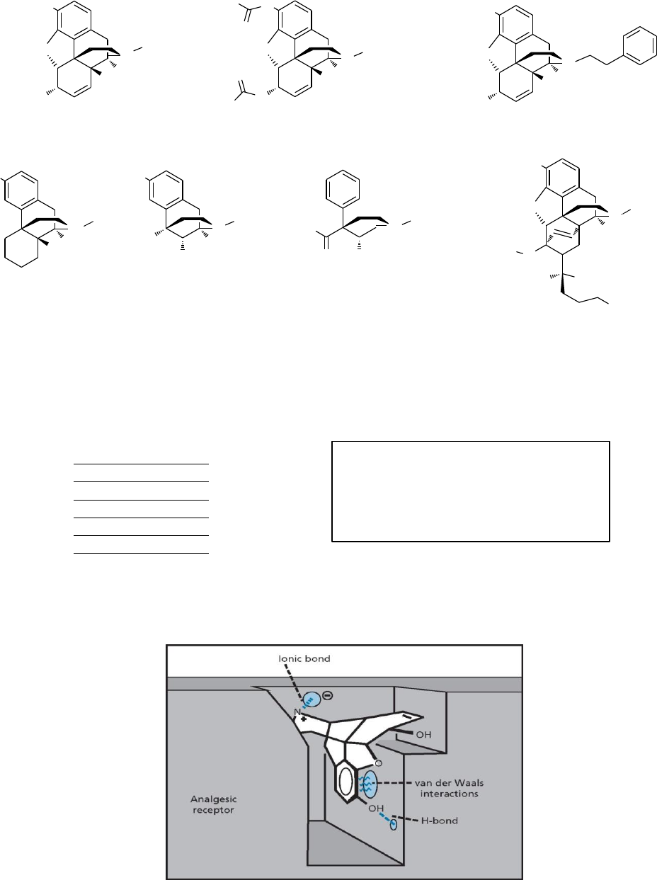 <p>HO</p><p>O</p><p>H H</p><p>H H</p><p>N</p><p>O</p><p>Exercícios de Química Farmacêutica I / Analgésicos Opioides</p><p>2</p><p>HO 3</p><p>4 A</p><p>12</p><p>1</p><p>11</p><p>10</p><p>H3C O</p><p>O</p><p>O D</p><p>5 13</p><p>16</p><p>15 E N</p><p>9</p><p>H</p><p>CH3 O CH3</p><p>N</p><p>HO 6</p><p>C14 H</p><p>8</p><p>7</p><p>O H H</p><p>H3C HO</p><p>(1) morfina</p><p>HO HO</p><p>(2) heroína</p><p>2X mais potente que morfina</p><p>(3) feniletilmorfina</p><p>14X mais potente que morfina</p><p>HO</p><p>N</p><p>CH3</p><p>H3C</p><p>N</p><p>H</p><p>CH3</p><p>CH3</p><p>EtO</p><p>O</p><p>CH</p><p>N</p><p>CH3</p><p>O</p><p>H3C O</p><p>N</p><p>CH3</p><p>H</p><p>(4) levorfanol</p><p>5X mais potente</p><p>(5) metazocina</p><p>equipotente a</p><p>(6) meperidina</p><p>5X menos potente</p><p>(7) etorfina</p><p>10.000X mais</p><p>H3C OH</p><p>CH</p><p>que morfina morfina que morfina potente que morfina 3</p><p>1) Indique qual a estratégia de modificação molecular predominante para a obtenção dos analgésicos</p><p>opioides</p><p>2-7 a partir da morfina (1):</p><p>1→ 2:</p><p>1→ 3:</p><p>1→ 4:</p><p>1→ 5:</p><p>1→ 6:</p><p>1→ 7:</p><p>2) Observe abaixo o modelo de interação da morfina no receptor opioide e assinale nas estruturas</p><p>1-7 os grupos farmacofóricos. Indique os anéis (A-E) fundamentais para atividade analgésica.</p><p>3) Como você explicaria as maiores atividades observadas para as estruturas 3 e 7?</p><p>Estratégias de modificação molecular:</p><p>(A) variação dos substituintes</p><p>(B) simplificação molecular</p><p>(C) extensão molecular</p><p>(D) introdução de rigidez</p><p>B</p><p>3</p><p>1. Qual das estruturas abaixo é o mensageiro químico natural do receptor adrenérgico? Mostre as</p><p>interações deste neurotransmissor com o sítio de ligação no receptor adrenérgico.</p><p>2. Observe o esquema abaixo e responda:</p><p>2.1. Que tipo de agente terapêutico é a estrutura final?</p><p>a. agente anti-asmático.</p><p>b. agente cardiovascular.</p><p>c. analgésico.</p><p>d. agente anti-úlcera</p><p>2.2. Qual o mecanismo de ação do agente terapêutico representado pela estrutura final?</p><p>2.3. Qual o efeito da substituição dos dois grupos hidroxílicos por dois átomos de cloro?</p><p>a. Eliminação da possibilidade de ligações de hidrogênio.</p><p>b. Aumento de lipofilicidade.</p><p>c. A e B estão corretas.</p><p>d. A e B estão incorretas.</p><p>2.4. Qual o efeito da modificação da cadeia lateral na estrutura final?</p><p>a. Produz um agonista.</p><p>b. Produz um antagonista.</p><p>c. Produz um agonista parcial.</p><p>d. Produz um agente inativo.</p><p>2.5. Quais as forças de interações envolvidas no reconhecimento molecular?</p><p>3. A estrutura apresentada a seguir é do agente anti-asmático salbutamol.</p><p>3.1. Qual dos seguintes grupos é importante para a seletividade frente aos -adrenoceptores? Justifique</p><p>a. O grupo hidroximetilênico.</p><p>b. O fenol.</p><p>c. O álcool.</p><p>d. O grupo terc-butílico.</p><p>3.2. Qual dos grupos confere maior estabilidade metabólica, em comparação com a noradrenalina? Justifique.</p><p>a. O grupo hidroximetilênico.</p><p>b. O fenol.</p><p>c. O álcool.</p><p>d. O grupo terc-butílico.</p>