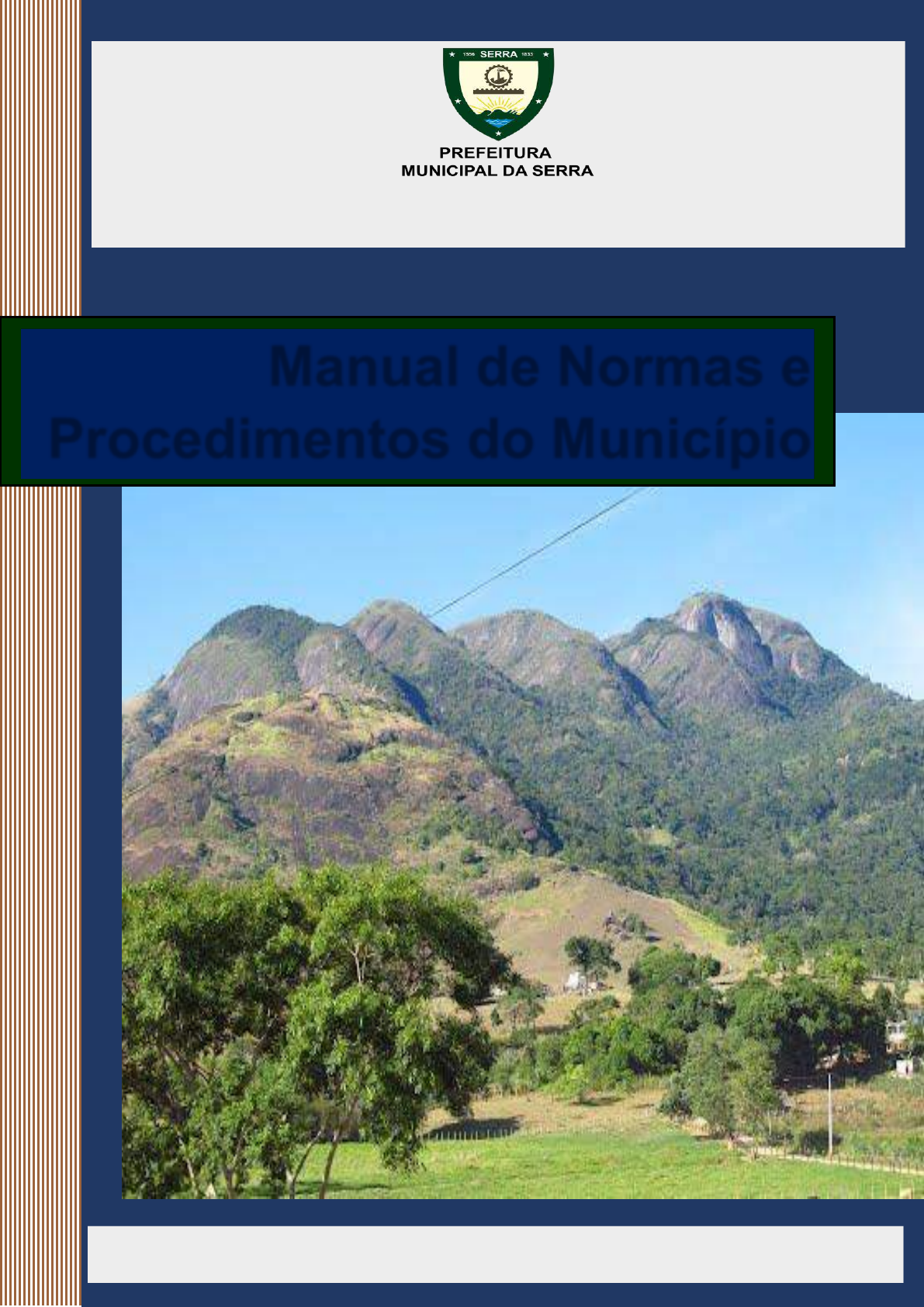 <p>Praça Drº Pedro Feu Rosa, nº 01, Centro-Serra/ES - Cep: 29.176.091</p><p>Telefone: (27) 3251-7553 / (27) 3291-2350</p><p>1 MANUAL DE NORMAS E PROCEDIMENTOS DO MUNICÍPIO DE SERRA/ES</p><p>Estado do Espírito Santo</p><p>Controladoria Geral do Município</p><p>Serra/ES</p><p>2015</p><p>Manual de Normas e</p><p>Procedimentos do Município</p><p>Praça Drº Pedro Feu Rosa, nº 01, Centro-Serra/ES - Cep: 29.176.091</p><p>Telefone: (27) 3251-7553 / (27) 3291-2350</p><p>2 MANUAL DE NORMAS E PROCEDIMENTOS DO MUNICÍPIO DE SERRA/ES</p><p>MANUAL DE</p><p>Normas e Procedimentos</p><p>Processos Administrativos</p><p>Prefeito Municipal</p><p>Audifax Charles Pimentel Barcellos</p><p>Vice –Prefeita Municipal</p><p>Lourência Riani</p><p>Controlador Geral</p><p>Magaly Nunes do Nascimento</p><p>SubControlador Geral</p><p>Luciana Palassi Cupertino de Castro</p><p>Equipe Técnica da Controladoria Geral</p><p>Antônio Dias de Souza Neto</p><p>Andreia Zanelato Novais Goes de Almeida</p><p>Carlos Roberto Braga Carneiro Júnior</p><p>Luzimar Elias Dalfior</p><p>Michelle Galon Lovato Lessa</p><p>Patrícia Ferreira Lempê Pena</p><p>Regina Silva Tose</p><p>Praça Drº Pedro Feu Rosa, nº 01, Centro-Serra/ES - Cep: 29.176.091</p><p>Telefone: (27) 3251-7553 / (27) 3291-2350</p><p>3 MANUAL DE NORMAS E PROCEDIMENTOS DO MUNICÍPIO DE SERRA/ES</p><p>SUMÁRIO</p><p>APRESENTAÇÃO ............................................................................................................. 10</p><p>1. INTRODUÇÃO ......................................................................................................... 11</p><p>2. OBJETIVO ............................................................................................................... 12</p><p>3. ABRANGÊNCIA ...................................................................................................... 12</p><p>4. FUNDAMENTOS LEGAIS ....................................................................................... 13</p><p>5. SISTEMAS ADMINISTRATIVOS.............................................................................14</p><p>5.1 SCI - SISTEMA DE CONTROLE INTERNO</p><p>SCI 01 - Normas das Normas</p><p>SCI 02 – Tomada de Contas Especial</p><p>SCI 03 – Emissão de Parecer Conclusivo Sobre as Contas Anuais</p><p>SCI 04 – Auditoria Interna</p><p>SCI 05 – Atendimento às Equipes de Controle Externo</p><p>SCI 06 – Lei de Acesso a Informação/LAI – Transparência Passiva (E-SIC)</p><p>5.2 SPA - SISTEMA DE CONTROLE PATRIMONIAL</p><p>SPA 01 – Registros, Controle, Cessão e Inventário de Bens Imóveis</p><p>SPA 02 – Registro, Controle, Responsabilidade, Cessão e Inventário de Bens</p><p>Móveis</p><p>SPA 03 – Alienação e Cessão de Bens Imóveis</p><p>SPA 04 – Cessão de Bens Móveis</p><p>SPA 05 – Providências em Caso de Extravio e Furto de Bens</p><p>SPA 06 – Desapropriação de Áreas de Interesse Público</p><p>5.3 SCL - SISTEMA DE COMPRAS, LICITAÇÕES E CONTRATOS</p><p>SCL 01 – Aquisição de Bens e Serviços Mediante Licitação</p><p>Praça Drº Pedro Feu Rosa, nº 01, Centro-Serra/ES - Cep: 29.176.091</p><p>Telefone: (27) 3251-7553 / (27) 3291-2350</p><p>4 MANUAL DE NORMAS E PROCEDIMENTOS DO MUNICÍPIO DE SERRA/ES</p><p>SCL 02 – Aquisição de Bens e Serviços Mediante Dispensa</p><p>SCL 03 – Aquisição de Bens e Serviços Mediante Inexigibilidade</p><p>SCL 04 – Alienação de Bens Me- diante Leilão ou Concorrência Pública</p><p>SCL 05 – Controle de Estoque</p><p>SCL 06 – Cadastro de Fornecedores</p><p>SCL 07 – Concessão e Permissão de Serviços Públicos e Autorização</p><p>5.4 STR - SISTEMA DE TRANSPORTE</p><p>STR 01 – Gerenciamento das Ocorrências de Acidentes de Trânsito em Veículos da</p><p>Frota</p><p>STR 02 – Gerenciamento e Con trole das Aquisições de Peças Originais e Genuínas</p><p>STR 03 – Gerenciamento dos Certificados de Registro e Licenciamento de Veículos</p><p>STR 04 – Gerenciamento de Veículos Disponíveis para Leilão</p><p>STR 05 – Manutenções Preventivas e Corretivas</p><p>STR 06 – Gerenciamento e Controle do uso da Frota e dos Equipamentos</p><p>STR 07 – Controle de Estoque de Combustível, Peças, Pneus, etc</p><p>STR 08 – Locação de Veículos e Equipamentos</p><p>5.5 SRH - SISTEMA DE ADMINISTRAÇÃO DE RECURSOS HUMANOS</p><p>SRH 01 - Gratificação de Assiduidade</p><p>SRH 02 – Abono de Permanência</p><p>SRH 03 – Averbação de Tempo de Contribuição</p><p>SRH 04 – Direitos Adquiridos Servidores Exonerados, Demitidos e Aposentados</p><p>SRH 05 – Progressão Funcional (Magistério)</p><p>SRH 06 – Concessão de Licença Gala, Luto e Paternidade</p><p>SRH 07 - Licença para Tratar de Interesses Particulares</p><p>SRH 08 – Elevação de Nível (Magistério)</p><p>SRH 09 – Registro e Controle de Férias dos Servidores</p><p>SRH 10 – Licença para Desempenho de Mandato Eletivo</p><p>Praça Drº Pedro Feu Rosa, nº 01, Centro-Serra/ES - Cep: 29.176.091</p><p>Telefone: (27) 3251-7553 / (27) 3291-2350</p><p>5 MANUAL DE NORMAS E PROCEDIMENTOS DO MUNICÍPIO DE SERRA/ES</p><p>SRH 11 – Cessão de Servidor</p><p>SRH 12 – Cadastro de Servidores Junto ao Sistema Funcional – Rubi</p><p>SRH 13 - Licença Maternidade à Servidora Adotante</p><p>SRH 14 – Admissão de Pessoal em Cargo Efetivo</p><p>SRH 15 – Admissão de Pessoal Mediante Contrato Temporário</p><p>SRH 16 – Admissão de Pessoal para o Exercício de Cargo Comissionado e Função</p><p>de Confiança</p><p>SRH 17 – Treinamento e Capacitação Profissional</p><p>SRH 18 – Processos Administrativos Disciplinares</p><p>SRH 19 - Escala Especial de Trabalho, Plantões Extras Diversos</p><p>SRH 20 – Escala Especial de Trabalho – SEDES</p><p>SRH 21 – Extensão de Carga Horária – Secretaria de Educação</p><p>SRH 22 – Concessão de Insalubridade</p><p>SRH 23 – Lançamento de Frequência e Processos em Geral</p><p>SRH 24 – Pagamento de Produtivi