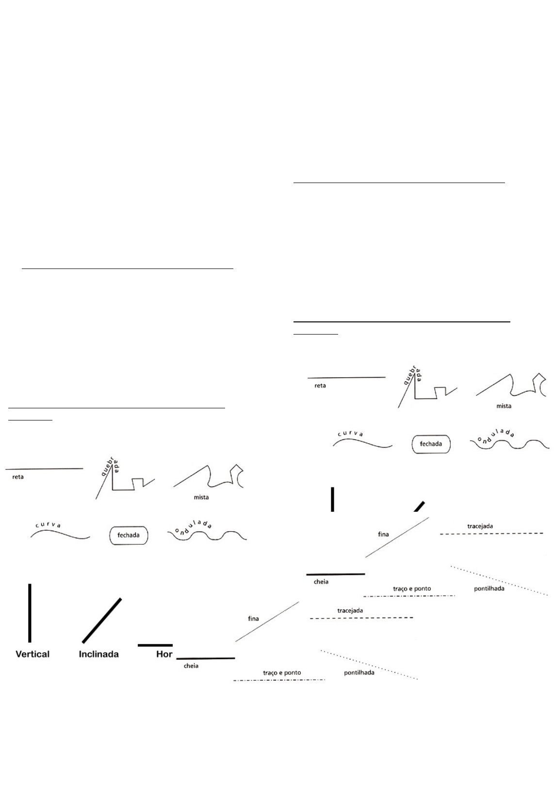 <p>A LINHA</p><p>A linha, assim como o ponto, é elemento essencial na composição visual.</p><p>A linha está presente em nossa vida e em todas as coisas que estão ao nosso redor, especialmente na natureza. Observe a folha de uma árvore! Quantas linhas não possui? Inúmeras não é mesmo? Os nossos cabelos também são exemplos de linhas: se são lisos são linhas retas, se são crespos, encaracolados ou cacheados são linhas curvas, onduladas ou espiraladas.</p><p>A linha é obtida através de infinitos pontos.</p><p>Também é obtida através do “rastro” de um ponto.</p><p>Quando se coloca um ponto em movimento, ele forma uma linha.</p><p>A linha é o elemento básico de todo grafismo e um dos mais usados.</p><p>Representa a forma de expressão mais simples e pura, porém também a mais dinâmica e variada.</p><p>As principais propriedade das linhas são:</p><p>· Contém grande expressividade gráfica e muita energia.</p><p>· Quase sempre expressa dinamismo, movimento e direção.</p><p>· Cria tensão no espaço gráfico em que se encontra.</p><p>· Cria separação de espaços no grafismo.</p><p>· Cria separação de espaços no grafismo.</p><p>Podemos classificar as linhas da seguinte maneira:</p><p>1 - Quanto à forma a linha pode ser:</p><p>2 – Quanto à posição a linha pode ser:</p><p>3 - Quanto ao traçado a linha pode ser:</p><p>A LINHA</p><p>A linha, assim como o ponto, é elemento essencial na composição visual.</p><p>A linha está presente em nossa vida e em todas as coisas que estão ao nosso redor, especialmente na natureza. Observe a folha de uma árvore! Quantas linhas não possui? Inúmeras não é mesmo? Os nossos cabelos também são exemplos de linhas: se são lisos são linhas retas, se são crespos, encaracolados ou cacheados são linhas curvas, onduladas ou espiraladas.</p><p>A linha é obtida através de infinitos pontos.</p><p>Também é obtida através do “rastro” de um ponto.</p><p>Quando se coloca um ponto em movimento, ele forma uma linha.</p><p>A linha é o elemento básico de todo grafismo e um dos mais usados.</p><p>Representa a forma de expressão mais simples e pura, porém também a mais dinâmica e variada.</p><p>As principais propriedade das linhas são:</p><p>· Contém grande expressividade gráfica e muita energia.</p><p>· Quase sempre expressa dinamismo, movimento e direção.</p><p>· Cria tensão no espaço gráfico em que se encontra.</p><p>· Cria separação de espaços no grafismo.</p><p>· Cria separação de espaços no grafismo.</p><p>Podemos classificar as linhas da seguinte maneira:</p><p>1 - Quanto à forma a linha pode ser:</p><p>2 – Quanto à posição a linha pode ser:</p><p>3 - Quanto ao traçado a linha pode ser:</p><p>4 - Quanto à direção as linhas podem ser:</p><p>ATIVIDADE</p><p>Vamos criar três desenhos em três folhas do caderno usando apenas uma linha! Para isso, tente primeiro fazer um rascunho bem suave com o lápis de grafite no papel, porém, para finalizar, você deverá usar uma canetinha preta e com apenas um traço deverá contornar a imagem buscando os principais traços que caracterizam a imagem. Faça isso nas outras folhas.</p><p>Imagens para se basear:</p><p>4 - Quanto à direção as linhas podem ser:</p><p>ATIVIDADE</p><p>Vamos criar três desenhos em três folhas do caderno usando apenas uma linha! Para isso, tente primeiro fazer um rascunho bem suave com o lápis de grafite no papel, porém, para finalizar, você deverá usar uma canetinha preta e com apenas um traço deverá contornar a imagem buscando os principais traços que caracterizam a imagem. Faça isso nas outras folhas.</p><p>Imagens para se basear:</p><p>image3.jpeg</p><p>image4.jpeg</p><p>image5.jpeg</p><p>image6.jpeg</p><p>image1.jpeg</p><p>image2.jpeg</p>