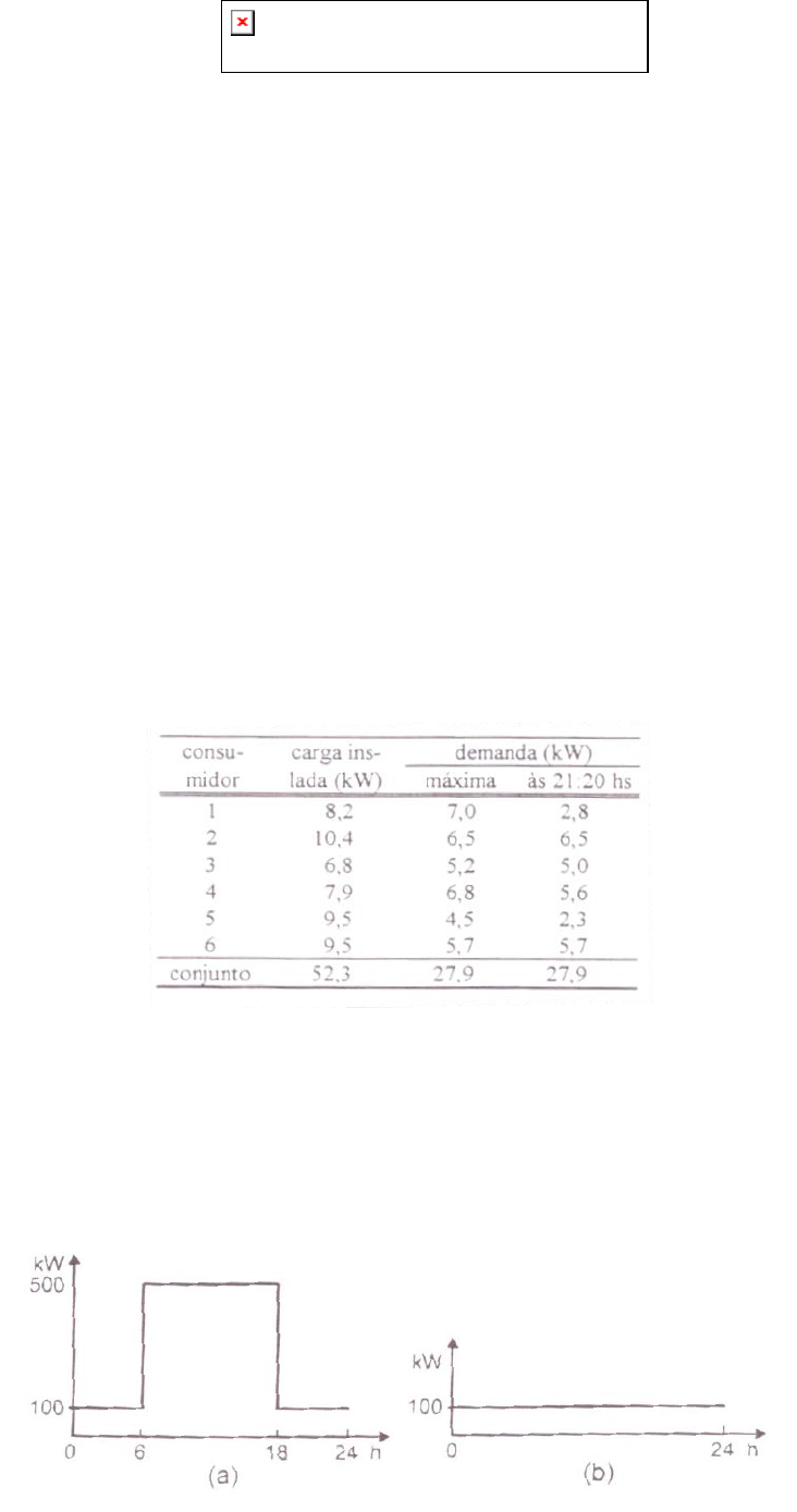 <p>CURSO DE ENGENHARIA ELÉTRICA – EGE</p><p>DISCIPLINA: DISTRIBUIÇÃO DE ENERGIA ELÉTRICA</p><p>Lista de Exercícios - 01 – Caracterização e Previsão de Carga</p><p>1) Um transformador de 45 kVA supre um consumidor com as seguintes características</p><p>a. Carga instalada – 40 kW</p><p>b. Demanda máxima 36 kW</p><p>c. Demanda média 24 kW</p><p>d. Fator de potência – 0,8 ind.</p><p>Determine</p><p>a) Os fatores de demanda e carga do consumidor.</p><p>b) O consumo mensal de energia (kWh).</p><p>c) O fator de utilização e o tempo de utilização da máxima demanda do</p><p>transformador.</p><p>2) A tabela 1 se refere a um grupo de 6 consumidores cuja demanda máxima ocorre às</p><p>21hs20min.</p><p>Tabela 1 – Problema 3.</p><p>a. Qual o fator de demanda do consumidor e a responsabilidade do consumidor 3.</p><p>b. Qual o fator de diversidade e a demanda diversificada do conjunto.</p><p>3) Uma indústria opera 12 meses com as curvas de carga diárias da figura 2. Em 26 dias</p><p>por tem-se o comportamento da curva (a) e 4 dias da curva(b). As tarifas são R$</p><p>60,00MWh e R$ 4,00kW.</p><p>Figura 2 – Curvas de carga exercício 3.</p><p>a) Qual o fator de carga mensal da indústria.</p><p>b) Qual o tempo de utilização da demanda máxima (h;mês);</p><p>c) Qual o custo da unidade energética ($;kwh).</p><p>d) Qual a conta de energia elétrica.</p><p>4) As potências instaladas em uma subestação de 69kV – 50MVA eram.</p><p>Ano 2007 2008 2009 2010 2011</p><p>MVA 25 28 32 33 35</p><p>a) Estimar qual a potência instalada em 2012, usando regressão linear, quadrática,</p><p>cúbica, exponencial e potencial.</p><p>b) Qual a estima mais segura.</p><p>c) Em qual ano se estima a ocorrência de sobrecarga na referida subestação.</p><p>5. A carga de uma cidade nos últimos 15 anos foi a seguinte.</p><p>Faça uma previsão da carga do ano 2005 utilizando as diferentes funções de regressão</p><p>e avalie a qualidade do ajuste de cada uma das curvas aos pontos dados.</p>