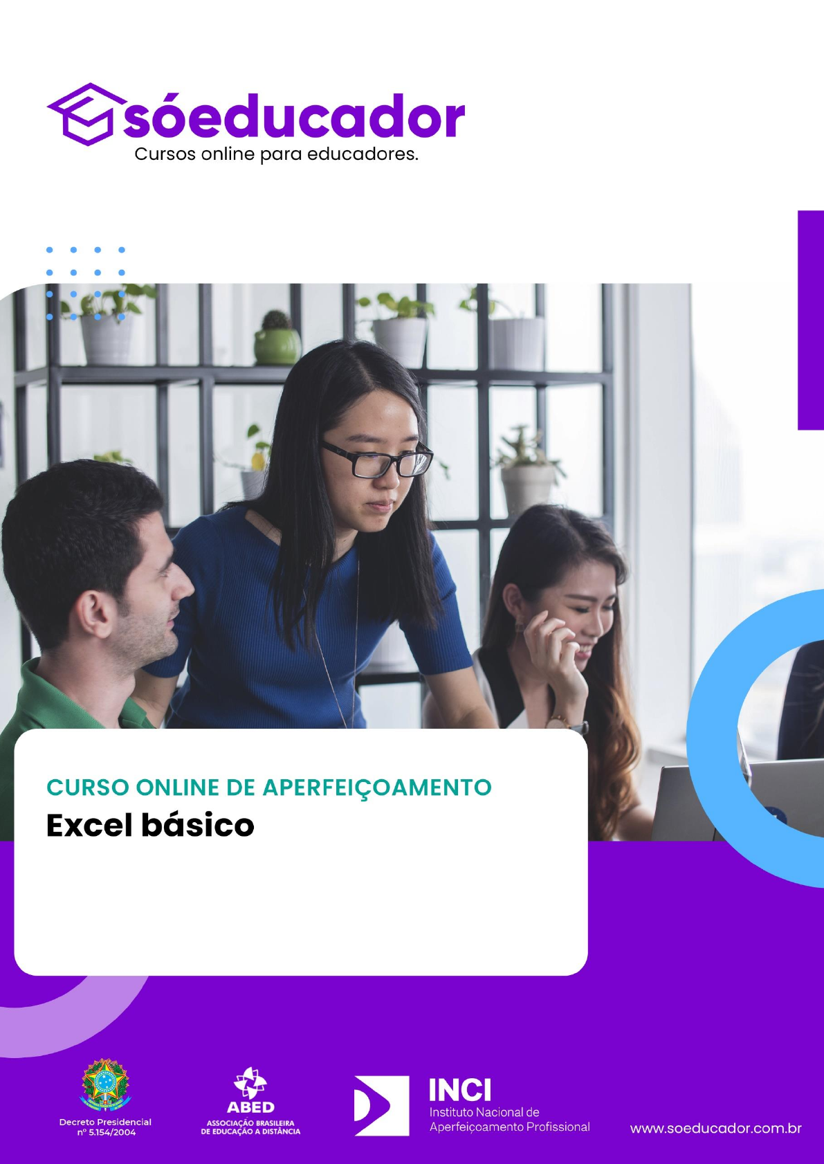 <p>www.soeducador.com.br 1</p><p>Excel básico</p><p>www.soeducador.com.br 2</p><p>Excel básico</p><p>SUMÁRIO</p><p>EXCEL ........................................................................................................................................ 4</p><p>A TELA DE TRABALHO ............................................................................................................. 4</p><p>MOVIMENTANDO-SE PELA PLANILHA ................................................................................... 5</p><p>USANDO TECLAS ..................................................................................................................... 5</p><p>USANDO A CAIXA DE DIÁLOGO ............................................................................................. 6</p><p>INSERINDO OS DADOS ............................................................................................................ 7</p><p>ENTRADA DE NÚMEROS ......................................................................................................... 8</p><p>ENTRADA DE TEXTOS ............................................................................................................. 9</p><p>ENTRADA DE FÓRMULAS ..................................................................................................... 10</p><p>A AUTOSOMA .......................................................................................................................... 11</p><p>ALTERAÇÃO DO CONTEÚDO DE UMA CÉLULA .................................................................. 12</p><p>SALVANDO UMA PLANILHA ................................................................................................... 12</p><p>CARREGANDO UMA PLANILHA ............................................................................................ 14</p><p>FORMATAÇÃO DE CÉLULAS ................................................................................................. 15</p><p>SELEÇÃO DE FAIXAS ............................................................................................................. 16</p><p>SELECIONANDO COM O MOUSE ......................................................................................... 16</p><p>SELECIONANDO COM O TECLADO ..................................................................................... 17</p><p>DESMARCANDO UMA FAIXA ................................................................................................ 17</p><p>FORMATAÇÃO DE TEXTOS E NÚMEROS ........................................................................... 17</p><p>FORMATAÇÃO DE NÚMEROS .............................................................................................. 18</p><p>ALTERAÇÃO DA LARGURA DAS COLUNAS ........................................................................ 18</p><p>ALTERANDO A LARGURA DA COLUNA COM O MOUSE ................................................... 18</p><p>ALTERANDO ALTURA DA LINHA .......................................................................................... 20</p><p>APAGANDO O CONTEÚDO DE UMA OU MAIS CÉLULAS .................................................. 21</p><p>IMPRESSÃO DA PLANILHA .................................................................................................... 22</p><p>FECHANDO A PLANILHA ATUAL ........................................................................................... 22</p><p>CRIAÇÃO DE UMA NOVA PLANILHA ..................................................................................... 23</p><p>FECHANDO O EXCEL 2010 .................................................................................................... 23</p><p>ENTRADA DE DADOS ............................................................................................................ 24</p><p>TEXTOS.................................................................................................................................... 25</p><p>TEXTO DE NÚMERO ............................................................................................................... 25</p><p>RETORNO AUTOMÁTICO DE TEXTO .................................................................................... 25</p><p>NÚMEROS ............................................................................................................................... 28</p><p>AUTO PREENCHIMENTO ....................................................................................................... 29</p><p>UTILIZANDO O AUTO PREENCHIMENTO COM NÚMEROS ............................................... 31</p><p>CONFIGURANDO A SEQUÊNCIA DO AUTO PREENCHIMENTO ....................................... 32</p><p>EDIÇÃO DE DADOS ................................................................................................................ 33</p><p>EDIÇÃO DO CONTEÚDO DE UMA CÉLULA .......................................................................... 34</p><p>FÓRMULAS E FUNÇÕES, CRIAÇÃO E MANUTENÇÃO ...................................................... 34</p><p>OPERADORES ........................................................................................................................ 35</p><p>ORDEM DE PRECEDÊNCIA DOS OPERADORES ............................................................... 36</p><p>FUNÇÕES ................................................................................................................................ 37</p><p>ANATOMIA DE UMA FUNÇÃO ............................................................................................... 37</p><p>ARGUMENTOS ........................................................................................................................ 38</p><p>FUNÇÕES MAIS UTILIZADAS ................................................................................................ 39</p><p>APAGANDO UMA PLANILHA .....................................................................