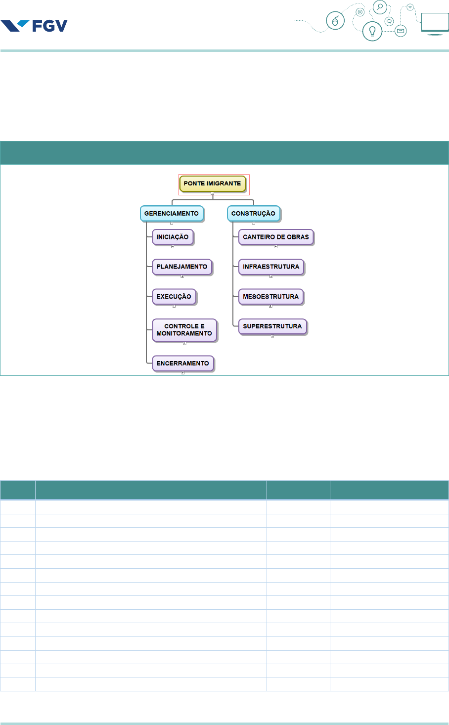 <p>EAP do projeto “PONTE”</p><p>[Reconheça cada Pacote de Trabalho (PT) para desenvolvimento das estimativas de custos e determinação dos percentuais (%) de valor agregado]</p><p>EAP do Projeto “PONTE”</p><p>Diagrama de barras do projeto</p><p>[Considere para esta atividade a relação de precedência abaixo. Todas as relações de precedência são do tipo: Término – Início (TI).</p><p>[Determine a duração dos pacotes de trabalho; esboce o diagrama de barras, identificando as atividades do caminho crítico]</p><p>INFORME TODAS AS DURAÇÕES QUE ESTÃO FALTANDO.</p><p>ID</p><p>Entregável/Tarefa</p><p>Duração</p><p>ID da Predecess (TI)</p><p>1</p><p>GERENCIAMENTO</p><p>______?</p><p>2</p><p>Iniciação</p><p>15</p><p>3</p><p>TAP - Termo de Abertura do Projeto</p><p>11</p><p>4</p><p>Reuniões executivas</p><p>2 d</p><p>5</p><p>Assinatura das Partes Interessadas</p><p>1 d</p><p>4</p><p>6</p><p>Elaborar TAP</p><p>8 d</p><p>5</p><p>7</p><p>Identificação das Partes Interessadas</p><p>4 d</p><p>8</p><p>Identificar Partes Interessadas</p><p>1 d</p><p>6</p><p>9</p><p>Mapear as Partes Interessadas</p><p>3 d</p><p>8</p><p>10</p><p>Planejamento</p><p>______?</p><p>11</p><p>Escopo</p><p>______?</p><p>12</p><p>Lista de Requisitos</p><p>______?</p><p>13</p><p>Entrevistar Partes Interessadas</p><p>4 d</p><p>9</p><p>14</p><p>Declaração do Escopo</p><p>______?</p><p>ID</p><p>Entregável/Tarefa</p><p>Duração</p><p>ID da Predecess (TI)</p><p>15</p><p>Definir o Produto do Projeto</p><p>2 d</p><p>13</p><p>16</p><p>Identificar Fatores Críticos de Sucesso</p><p>3 d</p><p>15</p><p>17</p><p>Registrar Objetivos</p><p>4 d</p><p>16</p><p>18</p><p>EAP - WBS</p><p>______?</p><p>19</p><p>Decompor as entregas em pacotes</p><p>3 d</p><p>17</p><p>20</p><p>Criar a EAP - WBS</p><p>3 d</p><p>19</p><p>21</p><p>Dicionário EAP</p><p>______?</p><p>22</p><p>Descrever os pacotes de trabalho</p><p>3 d</p><p>20</p><p>23</p><p>Critérios de aceite de cada pacote</p><p>2 d</p><p>22</p><p>24</p><p>Cronograma</p><p>______?</p><p>25</p><p>Definir as atividades</p><p>2 d</p><p>23</p><p>26</p><p>Estimar os recursos necessários</p><p>4 d</p><p>25</p><p>27</p><p>Estimar as durações</p><p>3 d</p><p>26</p><p>28</p><p>Sequenciar as atividades</p><p>2 d</p><p>27</p><p>29</p><p>Revisar Cronograma</p><p>1 d</p><p>28</p><p>30</p><p>Custo</p><p>______?</p><p>31</p><p>Estimar os custos do projeto</p><p>3 d</p><p>29</p><p>32</p><p>Estimar as Reservas Gerenciais</p><p>1 d</p><p>31</p><p>33</p><p>Criar o Plano de Gerenciamento de Custos</p><p>2 d</p><p>32</p><p>[Determine as durações dos entregáveis e preencha a tabela abaixo de acordo com as relações de precedências fornecidas na tabela acima].</p><p>Entregável/Tarefa</p><p>Duração ?</p><p>INICIAÇÃO</p><p>Escopo</p><p>Cronograma</p><p>Custos</p><p>1</p><p>10</p><p>9</p><p>[Esboce o diagrama de barras na Matriz abaixo, com o Caminho Crítico identificado (defina uma legenda para diferenciar o CC)]</p><p>Diagrama Barras (Gantt)</p><p>Diagrama Barras (Gantt)</p><p>Planejamento dos recursos</p><p>[Considere a lista de recursos abaixo para alocação nas tarefas]</p><p>ID</p><p>Recursos</p><p>Tipo</p><p>Custo por Hora</p><p>1</p><p>Engenheiro (Eng)</p><p>Trabalho</p><p>R$ 150,00/h</p><p>2</p><p>Coordenador do Projeto (CP)</p><p>Trabalho</p><p>R$170,00/h</p><p>3</p><p>Gerente do Projeto (GP)</p><p>Trabalho</p><p>R$ 200,00/h</p><p>[Aloque os recursos nas tarefas, considerando: i) o número de recursos que você desejar por tarefa; ii) jornada de trabalho de 8hr/dia.]</p><p>[Determine a quantidade de horas (trabalho) para cada tarefa.]</p><p>ID</p><p>Nome da Tarefa</p><p>Duração</p><p>Recursos</p><p>Trabalho</p><p>25</p><p>Definir as atividades</p><p>2 d</p><p>26</p><p>Estimar os recursos necessários</p><p>4 d</p><p>27</p><p>Estimar as durações</p><p>3 d</p><p>28</p><p>Sequenciar as atividades</p><p>2 d</p><p>29</p><p>Revisar Cronograma</p><p>1 d</p><p>Estimativa dos custos do Entregável Cronograma</p><p>[Considerando a alocação dos recursos da atividade anterior]</p><p>[Determine a estimativa dos custos unitários e total das tarefas]</p><p>Entregável/Tarefa</p><p>Unid.</p><p>Custo/Unid.</p><p>Custo Total</p><p>Cronograma</p><p>Definir as atividades</p><p>2 d</p><p>Estimar os recursos necessários</p><p>4 d</p><p>Estimar as durações</p><p>3 d</p><p>Sequenciar as atividades</p><p>2 d</p><p>Revisar Cronograma</p><p>1 d</p><p>Sub total da Elaboração do Cronograma R$..................................</p><p>Determinação do valor agregado</p><p>[Determine o Orçamento No Término (ONT) realizando agregação dos custos, completando o quadro abaixo].</p><p>[Determine o Valor Agregado (VA) de cada Pacote, considerando o progresso % Físico informado]</p><p>Lembre-se: VA= % Físico x Custo Orçado (ONT)]</p><p>Entregável/Tarefa</p><p>VALOR AGREGADO</p><p>% Físico</p><p>ONT (R$)</p><p>VA (R$)</p><p>PONTE DO IMIGRANTE</p><p>GERENCIAMENTO</p><p>INICIAÇÃO</p><p>100%</p><p>R$ 133.600</p><p>PLANEJAMENTO</p><p>100%</p><p>R$ 712.720</p><p>EXECUÇÃO</p><p>40%</p><p>R$ 32.800</p><p>CONTROLE E MONITORAMENTO</p><p>55%</p><p>R$ 1.040.980</p><p>ENCERRAMENTO</p><p>33%</p><p>R$ 366.160</p><p>CONSTRUÇÃO</p><p>CANTEIRO DE OBRAS</p><p>100%</p><p>R$ 19.235.500</p><p>INFRAESTRUTURA</p><p>14%</p><p>R$ 100.925.180</p><p>MESOESTRUTURA</p><p>-</p><p>R$ 35.651.800</p><p>SUPERESTRUTURA</p><p>-</p><p>R$ 37.901.260</p><p>Desenvolva um pequeno texto dissertativo sobre o método de obtenção do % Físico do Projeto* com base nos dados do quadro acima.</p><p>*(% Físico do Projeto = (VA/ONT) x 100)</p><p>Relatório de Custos</p><p>[Ao longo do desenvolvimento do projeto, foram registrados os seguintes dados, apresentados na tabela abaixo. Escolha um determinado mês (1 a 11) e responda as questões adiante.]</p><p>Valores x 1.000</p><p>Mês</p><p>1</p><p>2</p><p>3</p><p>4</p><p>5</p><p>6</p><p>7</p><p>8</p><p>9</p><p>10</p><p>11</p><p>% Físico</p><p>8%</p><p>15%</p><p>23%</p><p>34%</p