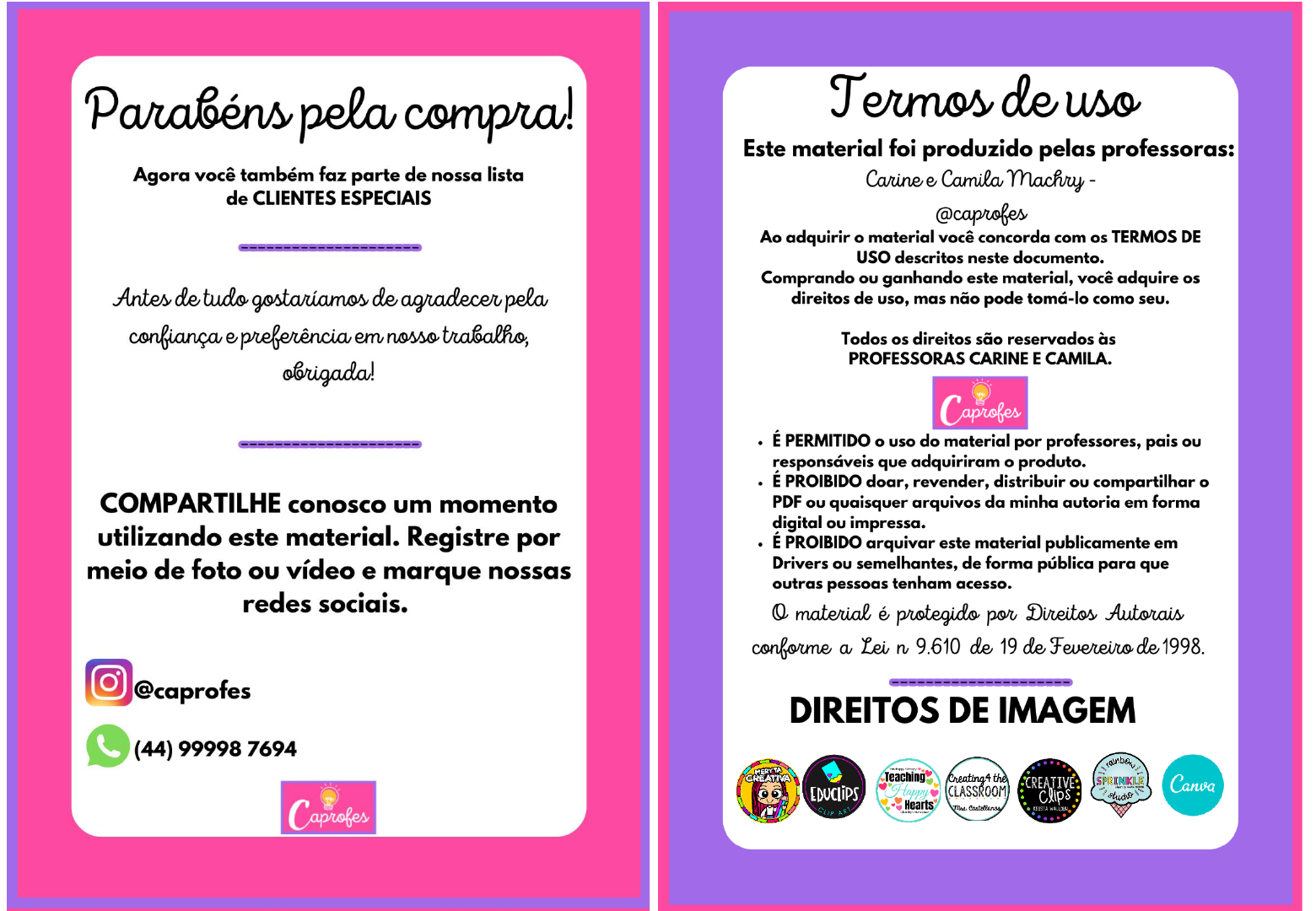 <p>1</p><p>Fundo- base da</p><p>caixa- dobrar e</p><p>colar nos locais</p><p>indicados.</p><p>colarcolar</p><p>colar colarDobrar e colar</p><p>Dobrar e colar</p><p>D</p><p>o</p><p>b</p><p>ra</p><p>r</p><p>e</p><p>co</p><p>la</p><p>r</p><p>D</p><p>o</p><p>b</p><p>ra</p><p>r</p><p>e</p><p>co</p><p>la</p><p>r</p><p>INFORMAÇÕES GERAIS PARA</p><p>CONFECÇÃO DO RECURSO</p><p>CAIXA– Recomenda-se imprimir em papel</p><p>cartão ou papel fotográfico 180 gramas;</p><p>FICHAS - Recomenda-se imprimir colorido</p><p>em alta qualidade em papel sulfite A4;</p><p>Para aumentar a durabilidade do produto</p><p>plastificar com plástico polaseal ou papel</p><p>contact;</p><p>2</p><p>Lateral da caixa</p><p>dobrar e colar nos</p><p>locais indicados.</p><p>D</p><p>o</p><p>b</p><p>ra</p><p>r</p><p>e</p><p>co</p><p>la</p><p>r</p><p>D</p><p>o</p><p>b</p><p>ra</p><p>r</p><p>e</p><p>co</p><p>la</p><p>r</p><p>colar</p><p>colarDobrar e colar- este lado para cima</p><p>3</p><p>Lateral da caixa</p><p>dobrar e colar nos</p><p>locais indicados.</p><p>D</p><p>o</p><p>b</p><p>ra</p><p>r</p><p>e</p><p>co</p><p>la</p><p>r</p><p>D</p><p>o</p><p>b</p><p>ra</p><p>r</p><p>e</p><p>co</p><p>la</p><p>r</p><p>colarcolar</p><p>4</p><p>Lateral da caixa</p><p>dobrar e colar nos</p><p>locais indicados.</p><p>Dobrar e colar- este lado para cima</p><p>5</p><p>Lateral da caixa dobrar e colar nos locais indicados.</p><p>Ficha de explicação</p><p>@caprofes</p><p>Dobrar e colar- este lado para cima</p><p>6</p><p>Tampa da caixa-</p><p>colar e cortar nas</p><p>linhas pontilhadas</p><p>@caprofes</p><p>CORTAR NO PONTILHADO</p><p>OLHA O SAPO</p><p>DENTRO DO SACO,</p><p>O SACO COM O SAPO</p><p>DENTRO,</p><p>O SAPO BATENDO PAPO,</p><p>E O PAPO SOLTANDO</p><p>VENTO.</p><p>@caprofes</p><p>@caprofes</p><p>@caprofes</p><p>@caprofes</p><p>LARGA A TIA,</p><p>LAGARTIXA!</p><p>LAGARTIXA,</p><p>LARGA A TIA!</p><p>SÓ NO DIA</p><p>EM QUE A SUA TIA</p><p>CHAMAR A LAGARTIXA</p><p>DE LAGARTIXA.</p><p>O RATO ROEU</p><p>A ROUPA</p><p>DO REI DE ROMA.</p><p>UM NINHO DE</p><p>MAFAGAFOS, COM CINCO</p><p>MAFAGAFINHOS, QUEM</p><p>DESMAFAGAFIZAR OS</p><p>MAFAGAFOS, BOM</p><p>DESMAFAGAFIZADOR</p><p>SERÁ.</p><p>@caprofes</p><p>@caprofes</p><p>@caprofes</p><p>@caprofes</p><p>O PEITO DO PÉ DE PEDRO</p><p>É PRETO.</p><p>QUEM DISSER QUE O</p><p>PEITO DO PÉ DE PEDRO É</p><p>PRETO, TEM O PEITO DO</p><p>PÉ MAIS PRETO DO QUE O</p><p>PEITO DO PÉ DE</p><p>PEDRO.</p><p>TRÊS PRATOS</p><p>DE TRIGO PARA</p><p>TRÊS TIGRES</p><p>TRISTES.</p><p>O TEMPO PERGUNTOU AO</p><p>TEMPO,</p><p>QUANTO TEMPO O TEMPO</p><p>TEM,</p><p>O TEMPO RESPONDEU AO</p><p>TEMPO,</p><p>QUE NÃO TINHA TEMPO,</p><p>DE VER QUANTO TEMPO,</p><p>O TEMPO TEM.</p><p>ALÔ, O TATU TÁ AÍ?</p><p>NÃO O TATU NÃO TÁ!</p><p>MAS A MULHER DO TATU</p><p>TANDO,</p><p>É O MESMO QUE</p><p>O TATU TÁ!</p><p>@caprofes</p><p>@caprofes</p><p>@caprofes</p><p>@caprofes</p><p>A ARANHA ARRANHA</p><p>A RÃ, A RÃ ARRANHA A</p><p>ARANHA. NEM A ARANHA</p><p>ARRANHA A RÃ NEM A RÃ</p><p>ARRANHA A ARANHA.</p><p>O DOCE PERGUNTOU</p><p>PARA O DOCE</p><p>QUAL ERA O DOCE</p><p>MAIS DOCE?</p><p>O DOCE RESPONDEU</p><p>PARA O DOCE</p><p>QUE O DOCE MAIS DOCE</p><p>ERA O DOCE DE</p><p>BATATA DOCE.</p><p>O PATO PERTO</p><p>DA PORTA</p><p>O PATO PERTO DA PIA</p><p>O PATO LONGE DA PATA</p><p>O PATO PIA QUE PIA.</p><p>DEBAIXO DA PIA,</p><p>TEM UM PRATO, UM PINTO</p><p>E UM GATO.</p><p>PINGA A PIA,</p><p>APARA O PRATO,</p><p>PIA O PINTO, MIA O GATO.</p><p>@caprofes</p><p>@caprofes</p><p>@caprofes</p><p>@caprofes</p><p>A VACA MALHADA FOI</p><p>MOLHADA POR OUTRA</p><p>VACA MOLHADA E</p><p>MALHADA.</p><p>SE A LIGA ME LIGASSE,</p><p>EU TAMBÉM LIGAVA</p><p>A LIGA.</p><p>MAS A LIGA</p><p>NÃO ME LIGA, EU</p><p>TAMBÉM NÃO LIGO A LIGA.</p><p>GATO ESCONDIDO</p><p>COM RABO DE FORA</p><p>TÁ MAIS ESCONDIDO</p><p>QUE RABO ESCONDIDO</p><p>COM GATO DE FORA.</p><p>DORME O GATO,</p><p>CORRE O RATO,</p><p>E FOGE O PATO.</p><p>@caprofes</p><p>@caprofes</p><p>@caprofes</p><p>@caprofes</p><p>A ABELHA</p><p>ABELHUDA,</p><p>ABELHUDOU AS</p><p>ABELHAS.</p><p>PEDRO PREGOU UM</p><p>PREGO NA</p><p>PORTA PRETA.</p><p>CASA SUJA,</p><p>CHÃO SUJO,</p><p>CHÃO SUJO,</p><p>CASA SUJA.</p><p>O QUE É QUE CACÁ QUER?</p><p>CACÁ QUER CAQUI.</p><p>QUAL CAQUI</p><p>QUE CACÁ QUER?</p><p>CACÁ QUER QUALQUER</p><p>CAQUI.</p><p>Slide 1</p><p>Slide 2</p><p>Slide 3</p><p>Slide 4</p><p>Slide 5</p><p>Slide 6</p><p>Slide 7</p><p>Slide 8</p><p>Slide 9</p><p>Slide 10</p><p>Slide 11</p><p>Slide 12</p>