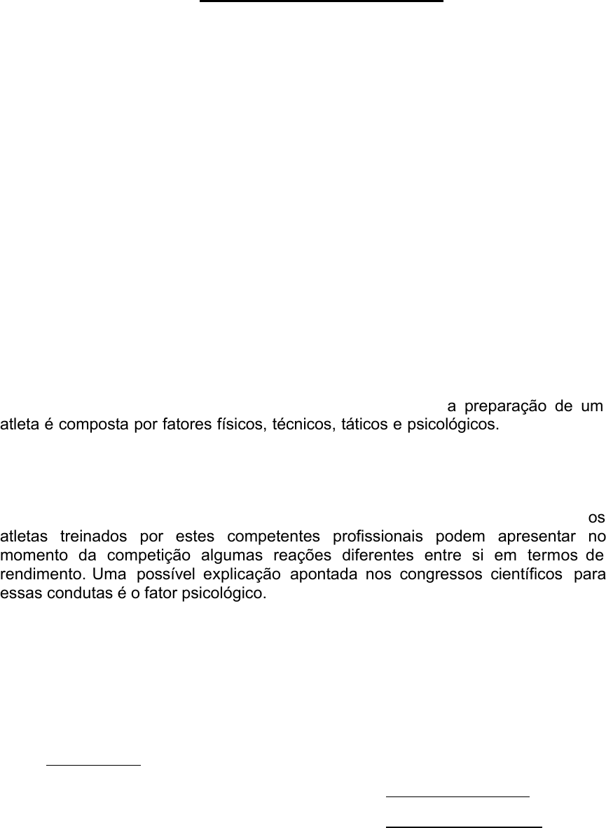 <p>1Prof. Dr. do Programa de Pós -Graduação em Educação Física Associado UEM/UEL,</p><p>Departamento de Educação Física-UEM, Maringá, Paraná; Discente em Psicologia - CESUMAR.</p><p>E-mail: lfvieira@uem.br</p><p>2 Psicólogo CRP08/12469; Mestrando em Educação Física pelo Programa de Pós-Graduação em</p><p>Educação Fïsica Associado UEM/UEL; Bolsista CAPES.E-mail: jrvissoci@yahoo.com.br</p><p>3 Psicólogo CRP08/12613; Mestrando em Educação Física pelo Programa de Pós-Graduação em</p><p>Educação Fïsica Associado UEM/UEL; Bolsista CAPES.E-mail: leopestillo@yahoo.com.br</p><p>AVALIAÇÃO PSICOLÓGICA NO ESPORTE</p><p>Lenamar Fiorese Vieira1, João Ricardo Nickenig Vissoci2 e Leonardo Pestillo</p><p>de Oliveira3.</p><p>RESUMO: O objetivo deste trabalho é fazer uma reflexão teórica sobre a avaliação</p><p>psicológica aplicada ao contexto esportivo. Para tanto discutiremos os campos de</p><p>atuação do psicólogo esportivo; as etapas de implantação de um programa de</p><p>intervenção psicológica no esporte e os principais testes psicométricos utilizados</p><p>nas avaliações psicológicas individuais e grupais.</p><p>PALAVRAS-CHAVE: Psicologia do Esporte, Avaliação Psicológica, Testes</p><p>Psicológicos.</p><p>INTRODUÇÃO</p><p>O esporte tem se constituído num dos fenômenos sócio-culturais mais</p><p>importantes do século XX. Por este motivo ele tem mobilizado um número enorme</p><p>de pessoas, materiais, instalações e recursos financeiros. Para que todos estes</p><p>recursos possam ser multiplicados é necessário o sucesso nas competições e este</p><p>está baseado na produção do atleta.</p><p>Nesse sentido, torna-se relevante entendermos que a preparação de um</p><p>atleta é composta por fatores físicos, técnicos, táticos e psicológicos. Embora estas</p><p>quatro áreas sejam reconhecidas como importantes para aumentar o rendimento</p><p>esportivo, devem ser apontadas algumas particularidades. Devemos reconhecer</p><p>que qualquer treinador moderno, além de bem formado participa de encontros</p><p>científicos e congressos técnicos científicos, portanto conhecem toda a</p><p>metodologia de treinamento fisico-técnico-tático de seu esporte. Mesmo assim, os</p><p>atletas treinados por estes competentes profissionais podem apresentar no</p><p>momento da competição algumas reações diferentes entre si em termos de</p><p>rendimento. Uma possível explicação apontada nos congressos científicos para</p><p>essas condutas é o fator psicológico.</p><p>A área do treinamento físico-técnico-tático, muito tem avançado para</p><p>aperfeiçoar os fundamentos dos mais diversos esportes, com uma abordagem</p><p>bastante renovada e criativa, entretanto, na área da psicologia do esporte faltam</p><p>publicações na América Latina bem como profissionais qualificados para</p><p>complementar a preparação dos atletas.</p><p>Neste contexto, devemos trabalhar com atenção e exatidão cientifica na</p><p>prática esportiva para não convertê-la em uma psicologia que simplifica todos os</p><p>fenômenos do esporte. Portanto, o objetivo deste artigo é fazer uma reflexão</p><p>teórica acerca do campo da avaliação psicológica aplicada ao contexto esportivo.</p><p>CAMPOS DE ATUAÇÃO DO PSICÓLOGO DO ESPORTE</p><p>Os psicólogos do esporte possuem três campos de atuação profissiona l de</p><p>acordo com Weinberg e Gould (2001): ensino, pesquisa e intervenção. No campo</p><p>do ensino o objetivo é transmitir conhecimentos e habilidades técnicas esportivas,</p><p>para tanto os profissionais necessitam ter conhecimentos das capacidades</p><p>psicológicas necessárias para melhor compreender o comportamento humano no</p><p>âmbito do esporte.</p><p>No campo da pesquisa, duas áreas são mais exploradas : os procedimentos</p><p>diagnósticos para medir características psicológicas de pessoas, situações e</p><p>de atividades esportivas (Por exemplo: motivação para o rendimento, ansiedade e</p><p>agressão no esporte, personalidade de atletas e treinadores) e medidas de</p><p>intervenção psicológica para competição e treinamento.</p><p>No campo da intervenção psicológica, são implantados programas de</p><p>preparação psicológica de treinamento mental, juntamente com medidas de</p><p>aconselhamento e acompanhamento dos atletas.</p><p>IMPLANTAÇÃO DE UM PROGRAMA DE INTERVENÇÃO PSICOLÓGICA NO</p><p>ESPORTE</p><p>Para implantação de um programa de psicologia aplicada ao esporte,</p><p>recomendamos que sejam seguidas algumas etapas, bem como as</p><p>particularidades de cada esporte sejam consideradas. As etapas são: 1)Contato</p><p>Inicial; 2)Avaliação Psicodiagnóstica; 3)Programa de Intervenção; 4)Avaliação</p><p>dos Resultados.</p><p>A etapa do Contato Inicial compreende a apresentação do psicólogo à</p><p>equipe (ou atleta) com quem irá trabalhar. Neste momento é informado a todos os</p><p>componentes do grupo esportivo no que consiste o trabalho de suporte psicológico</p><p>no esporte. Essa fase é de extrema importância para a continuidade do trabalho,</p><p>assim como em todo programa de intervenção psicológica, devido ao</p><p>estabelecimento do rapport (vínculo entre psicólogo e equipe de trabalho). Esta</p><p>fase é marcada por uma prática pedagógica na qual são estabelecidos os objetivos</p><p>do grupo, os quais são discutidos com os atletas e posteriormente estabelecido um</p><p>cronograma de trabalho (objetivos de curto, médio e longo prazo).</p><p>A importância da etapa do contato inicial se deve ao fato de que, geralmente</p><p>o psicólogo é contratado pela comissão técnica de uma equipe esportiva, a qual</p><p>percebe a necessidade do trabalho. Dessa forma, a iniciativa para a realização do</p><p>trabalho não parte dos ‘clientes’, fator que influencia na resistência, aderência e</p><p>efetividade do apoio psicológico. Portanto, a primeira tarefa do psi