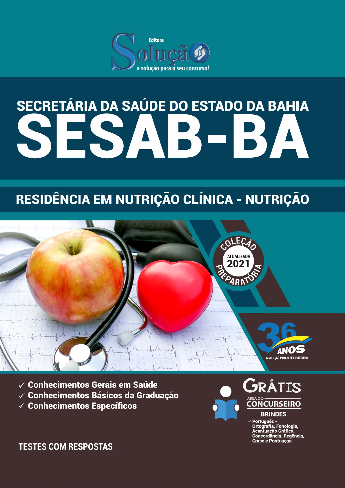 <p>SESAB-BA</p><p>SECRETARIA DA SAÚDE DO ESTADO DA BAHIA</p><p>Residência em Nutrição Clínica-Nutrição</p><p>A APOSTILA PREPARATÓRIA É ELABORADA</p><p>ANTES DA PUBLICAÇÃO DO EDITAL OFICIAL COM BASE NO EDITAL</p><p>ANTERIOR, PARA QUE O ALUNO ANTECIPE SEUS ESTUDOS.</p><p>SL-070JN-21</p><p>CÓD: 7891122040356</p><p>DICA</p><p>Como passar em um concurso público?</p><p>Todos nós sabemos que é um grande desafio ser aprovado em concurso público, dessa maneira é muito importante o concurseiro</p><p>estar focado e determinado em seus estudos e na sua preparação.</p><p>É verdade que não existe uma fórmula mágica ou uma regra de como estudar para concursos públicos, é importante cada pessoa</p><p>encontrar a melhor maneira para estar otimizando sua preparação.</p><p>Algumas dicas podem sempre ajudar a elevar o nível dos estudos, criando uma motivação para estudar. Pensando nisso, a Solução</p><p>preparou este artigo com algumas dicas que irão fazer toda a diferença na sua preparação.</p><p>Então mãos à obra!</p><p>• Esteja focado em seu objetivo: É de extrema importância você estar focado em seu objetivo: a aprovação no concurso. Você vai ter</p><p>que colocar em sua mente que sua prioridade é dedicar-se para a realização de seu sonho.</p><p>• Não saia atirando para todos os lados: Procure dar atenção a um concurso de cada vez, a dificuldade é muito maior quando você</p><p>tenta focar em vários certames, pois as matérias das diversas áreas são diferentes. Desta forma, é importante que você defina uma</p><p>área e especializando-se nela. Se for possível realize todos os concursos que saírem que englobe a mesma área.</p><p>• Defina um local, dias e horários para estudar: Uma maneira de organizar seus estudos é transformando isso em um hábito,</p><p>determinado um local, os horários e dias específicos para estudar cada disciplina que irá compor o concurso. O local de estudo não</p><p>pode ter uma distração com interrupções constantes, é preciso ter concentração total.</p><p>• Organização: Como dissemos anteriormente, é preciso evitar qualquer distração, suas horas de estudos são inegociáveis. É</p><p>praticamente impossível passar em um concurso público se você não for uma pessoa organizada, é importante ter uma planilha</p><p>contendo sua rotina diária de atividades definindo o melhor horário de estudo.</p><p>• Método de estudo: Um grande aliado para facilitar seus estudos, são os resumos. Isso irá te ajudar na hora da revisão sobre o assunto</p><p>estudado. É fundamental que você inicie seus estudos antes mesmo de sair o edital, buscando editais de concursos anteriores. Busque</p><p>refazer a provas dos concursos anteriores, isso irá te ajudar na preparação.</p><p>• Invista nos materiais: É essencial que você tenha um bom material voltado para concursos públicos, completo e atualizado. Esses</p><p>materiais devem trazer toda a teoria do edital de uma forma didática e esquematizada, contendo exercícios para praticar. Quanto mais</p><p>exercícios você realizar, melhor será sua preparação para realizar a prova do certame.</p><p>• Cuide de sua preparação: Não são só os estudos que são importantes na sua preparação, evite perder sono, isso te deixará com uma</p><p>menor energia e um cérebro cansado. É preciso que você tenha uma boa noite de sono. Outro fator importante na sua preparação, é</p><p>tirar ao menos 1 (um) dia na semana para descanso e lazer, renovando as energias e evitando o estresse.</p><p>Se prepare para o concurso público</p><p>O concurseiro preparado não é aquele que passa o dia todo estudando, mas está com a cabeça nas nuvens, e sim aquele que se</p><p>planeja pesquisando sobre o concurso de interesse, conferindo editais e provas anteriores, participando de grupos com enquetes sobre</p><p>seu interesse, conversando com pessoas que já foram aprovadas, absorvendo dicas e experiências, e analisando a banca examinadora do</p><p>certame.</p><p>O Plano de Estudos é essencial na otimização dos estudos, ele deve ser simples, com fácil compreensão e personalizado com sua</p><p>rotina, vai ser seu triunfo para aprovação, sendo responsável pelo seu crescimento contínuo.</p><p>Além do plano de estudos, é importante ter um Plano de Revisão, ele que irá te ajudar na memorização dos conteúdos estudados até</p><p>o dia da prova, evitando a correria para fazer uma revisão de última hora.</p><p>Está em dúvida por qual matéria começar a estudar? Vai mais uma dica: comece por Língua Portuguesa, é a matéria com maior</p><p>requisição nos concursos, a base para uma boa interpretação, indo bem aqui você estará com um passo dado para ir melhor nas outras</p><p>disciplinas.</p><p>Vida Social</p><p>Sabemos que faz parte algumas abdicações na vida de quem estuda para concursos públicos, mas sempre que possível é importante</p><p>conciliar os estudos com os momentos de lazer e bem-estar. A vida de concurseiro é temporária, quem determina o tempo é você,</p><p>através da sua dedicação e empenho. Você terá que fazer um esforço para deixar de lado um pouco a vida social intensa, é importante</p><p>compreender que quando for aprovado verá que todo o esforço valeu a pena para realização do seu sonho.</p><p>Uma boa dica, é fazer exercícios físicos, uma simples corrida por exemplo é capaz de melhorar o funcionamento do Sistema Nervoso</p><p>Central, um dos fatores que são chaves para produção de neurônios nas regiões associadas à aprendizagem e memória.</p><p>DICA</p><p>Motivação</p><p>A motivação é a chave do sucesso na vida dos concurseiros. Compreendemos que nem sempre é fácil, e às vezes bate aquele desânimo</p><p>com vários fatores ao nosso redor. Porém tenha garra ao focar na sua aprovação no concurso público dos seus sonhos.</p><p>Caso você não seja aprovado de primeira, é primordial que voc