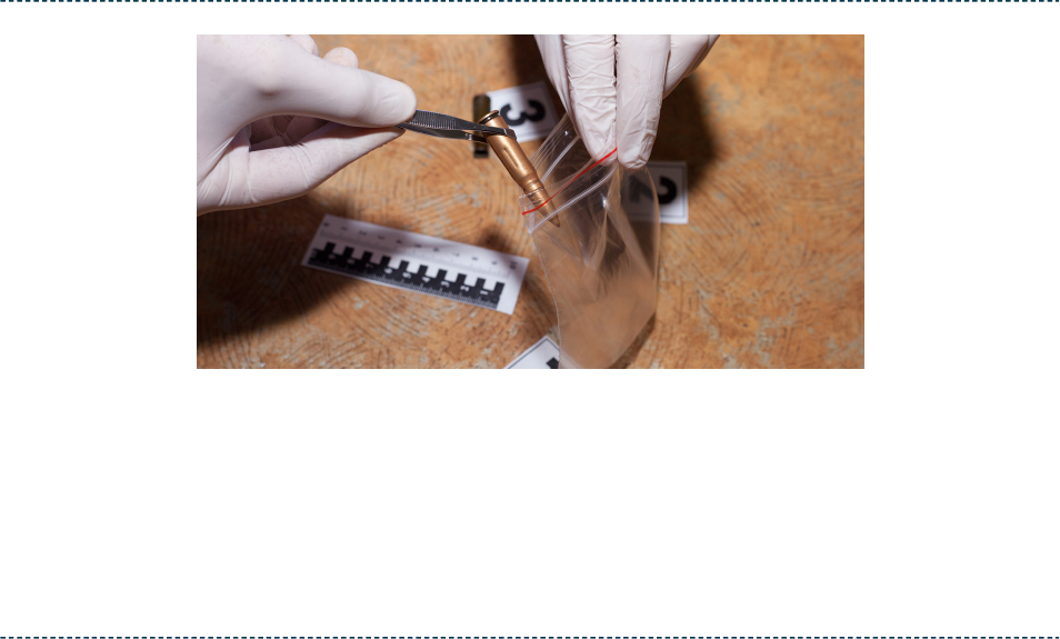 <p>Perícia Forense - Balística</p><p>Aula 6: Munição de arma de fogo</p><p>INTRODUÇÃO</p><p>Munição é o elemento essencial, o combustível para a utilização de uma arma. Sem ela, a arma não produz o resultado</p><p>para o qual foi produzida.</p><p>Nesta aula, estudaremos as características dos elementos da munição, para sabermos os efeitos de cada tipo de</p><p>munição.</p><p>OBJETIVOS</p><p>Identificar os cartuchos de armas de fogo, componentes e características.</p><p>Analisar a interação dos componentes da munição durante o disparo da arma.</p><p>Munição de armas de fogo</p><p>De acordo com o Decreto Nº 3.665, de 20 de novembro de 2000 Regulamento para a fiscalização de Produtos</p><p>Controlados (R-105), a definição de munição é:</p><p>"Art. 3º. Para os efeitos deste Regulamento e sua adequada aplicação, são adotadas as</p><p>seguintes definições:</p><p>[…]</p><p>LXIV – munição: artefato completo, pronto para carregamento e disparo de uma arma, cujo</p><p>efeito desejado pode ser: destruição, iluminação ou ocultamento do alvo; efeito moral sobre</p><p>pessoal; exercício; manejo; outros efeitos especiais"</p><p>A munição é formada por:</p><p>1. Estojo;</p><p>2. Espoleta;</p><p>3. Carga de projeção;</p><p>Vídeo.</p><p>4. Pólvora;</p><p>5. Projétil (chumbo), que é lançado por outros componentes de um cartucho no disparo de arma de fogo.</p><p>A seguir, conheceremos em detalhes cada um dos componentes. Vamos lá!</p><p>EXERCÍCIO</p><p>Conforme prescrito pela legislação brasileira, munição pode ser definida como:</p><p>Todo artefato que pode ser carregado na arma de fogo.</p><p>Artefato incompleto que pode ser carregado na arma de fogo, onde não necessariamente, pode ser utilizado para disparo.</p><p>Artefato completo, carregado somente na arma de fogo com capacidade de destruição.</p><p>Artefato completo, pronto para carregamento e disparo de uma arma, cujo efeito desejado pode ser: destruição, iluminação ou</p><p>ocultamento do alvo; efeito moral sobre pessoal; exercício; manejo; outros efeitos especiais.</p><p>Artefato completo, pronto para carregamento e disparo de uma arma, cujo efeito desejado pode ser: iluminação ou</p><p>ocultamento do alvo e manejo.</p><p>Justificativa</p><p>Estojo</p><p>O estojo é o componente externo e de maior extensão nos cartuchos. A forma do estojo varia, bem como o material</p><p>utilizado na sua produção. O calibre nominal da arma é determinado pela forma e dimensão do estojo a ser utilizado.</p><p>Forma do estojo</p><p>Nas armas raiadas, os estojos são cilíndricos ou levemente cônicos, lisos ou estrangulados em sua região anterior,</p><p>com gargalo;</p><p>O formato cônico facilita sua extração da câmara em que estiver alojado, após a execução do disparo;</p><p>Os estojos com gargalos são os do tipo garrafa, usados em carabinas, fuzis, rifles, mosquetões, e em algumas pistolas;</p><p>A parte aberta do estojo, anterior, é denominada de boca, e é onde fica engastado o projétil;</p><p>Na extremidade posterior, bastante espessada, fica o culote, em cuja base é escavado o alojamento cilíndrico para a</p><p>espoleta ou cápsula de espoletamento, que se comunica com o interior do estojo, onde fica a carga de projeção</p><p>(pólvora), por um ou dois orifícios, os eventos;</p><p>Dependendo do tipo de espoleta, poderá apresentar ou não a bigorna.</p><p>Observe a imagem de um estojo de calibre .38 em corte:</p><p>Estojo calibre .38 em corte</p><p>Cartucho ou Invólucro</p><p>Possibilita que todos os componentes necessários ao disparo fiquem unidos em uma só</p><p>peça, facilitando o manejo da arma, diminuindo o tempo de intervalo em cada disparo.</p><p>Evento</p><p>Orifício entre o propelente e a espoleta. Permite o contato do calor gerado pela queima da</p><p>mistura detonante contida na espoleta.</p><p>Bigorna</p><p>É o dispositivo de metal em contato com a pólvora. A bigorna é comprimida pela cápsula no</p><p>momento da percussão.</p><p>Mistura Detonante</p><p>A mistura detonante (Fulminato de mercúrio (II) Hg(CNO) ou Estifnato de chumbo (2,4,6-</p><p>trinitroresorcinato de chumbo, C HN O Pb) são compostos que queimam com facilidade,</p><p>com o atrito ou impacto gerado pelo amassamento da espoleta contra a bigorna, provocada</p><p>pelo precursor, para a incendiar. A queima dessa mistura gera calor, que passa para o</p><p>propelente (pólvora), pelo pequeno furo no estojo, chamado evento.</p><p>2</p><p>6 3 8</p><p>Espoleta</p><p>É compreendida pelos itens 3, 4 e 5. Ao ser atingida pelo precursor ou agulha, esmaga a</p><p>mistura detonante contra a bigorna iniciando a reação.</p><p>Os estojos das armas curtas e longas de repetição semiautomáticas e automáticas, com exceção os de calibre .22 e</p><p>de algumas armas de repetição não automáticas, podem apresentar, em sua base, culotes com orlas salientes (com</p><p>aro), semissalientes (semiaro), ou sem saliência (sem aro). Apresentam um estrangulamento ou gola próximo à base,</p><p>na qual se encaixa a garra do extrator.</p><p>Os estojos das espingardas, destinados a receber uma carga de chumbos ou balins, têm forma sempre cilíndrica ou</p><p>levemente cônica.</p><p>Material usado na produção dos estojos</p><p>A maioria é produzida em latão 70:30 (70% de cobre e 30% de zinco).</p><p>Alguns são feitos em cobre e alumínio. Os de alumínio não são reaproveitáveis, suportam o uso em um único tiro;</p><p>Estojos dos cartuchos para espingardas podem ser, na sua totalidade, de metal (latão), o que possibilita o</p><p>reaproveitamento;</p><p>Há estojos que apresentam sua porção posterior de metal e o restante do corpo cilíndrico de papelão ou plástico.</p><p>Existem estojos com seu corpo cilíndrico em teflon.</p><p>Espoleta</p><p>É um pequeno recipiente metálico, em forma de cápsula, que contém a mistura iniciadora (carga de inflamação)</p><p>montada no alojamento no