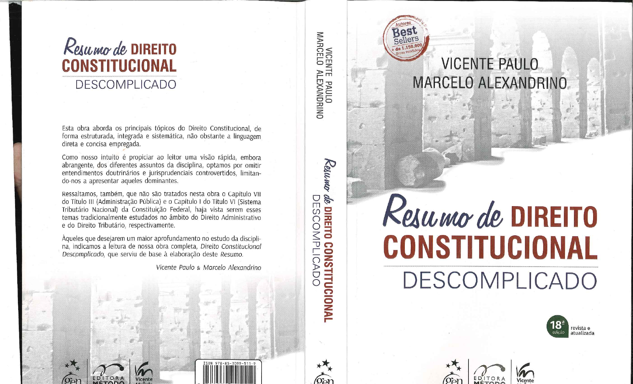 <p>Autores Best Sellers Resumo de DIREITO + de 1.150.000 livros vendidos CONSTITUCIONAL VICENTE PAULO DESCOMPLICADO MARCELO ALEXANDRINO Esta obra aborda os principais tópicos do Direito Constitucional, de forma estruturada, integrada e sistemática, não obstante a linguagem direta e concisa empregada. Como nosso intuito é propiciar ao leitor uma visão rápida, embora abrangente, dos diferentes assuntos da disciplina, optamos por omitir entendimentos doutrinários e jurisprudenciais controvertidos, limitan- do-nos a apresentar aqueles dominantes. Ressaltamos, também, que não são tratados nesta obra o Capítulo VII do Título III (Administração Pública) e o Capítulo I do Título VI (Sistema Tributário Nacional) da Constituição Federal, haja vista serem esses temas tradicionalmente estudados no âmbito do Direito Administrativo Resumo de DIREITO e do Direito Tributário, respectivamente. que desejarem um maior aprofundamento no estudo da discipli- na, indicamos a leitura de nossa obra completa, Direito Constitucional CONSTITUCIONAL Descomplicado, que serviu de base à elaboração deste Resumo. Vicente Paulo & Marcelo Alexandrino DESCOMPLICADO revista e edição atualizada EDITORA EDITORA Vicente Vicente</p><p>Autores Best Sellers + de 1.500.000 vendidos VICENTE PAULO MARCELO ALEXANDRINO Resumo de DIREITO gen CONSTITUCIONAL Grupo Editorial Nacional GEN Grupo Editorial Nacional - maior plataforma editorial brasileira no segmento científico, técnico e profissional - publica conteúdos nas áreas de concursos, ciências jurí- DESCOMPLICADO dicas, humanas, exatas, da saúde e sociais aplicadas, além de prover serviços direcionados à educação continuada. As editoras que integram o GEN, das mais respeitadas no mercado editorial, construíram catálogos inigualáveis, com obras decisivas para a formação acadêmica e o aperfeiçoamento de várias gerações de profissionais e estudantes, tendo se tornado sinônimo de qualidade e seriedade. revista e edição atualizada A missão do GEN e dos núcleos de conteúdo que o compõem é prover a melhor informação científica e distribuí-la de maneira flexível e conveniente, a preços justos, gerando benefícios e servindo a autores, docentes, livreiros, funcionários, colaboradores e acionistas. Nosso comportamento ético incondicional e nossa responsabilidade social e ambiental são reforçados pela natureza educacional de nossa atividade e dão sustentabilidade ao EDITORA crescimento contínuo e à rentabilidade do grupo. gen Vicente MÉTODO Marcelo</p><p>Os autores deste livro e a editora empenharam seus melhores esforços para assegurar que as informações e os procedimentos apresentados no texto estejam em acordo com os padrões aceitos à época da publicação, e todos os dados foram atualizados pelos autores até a data de fechamento do livro. Entretanto, tendo em conta a evolução das ciências, as atualizações legislativas, as mudanças regulamentares governamentais e o constante fluxo de novas informações sobre os temas que constam do livro, recomendamos enfaticamente que os leitores consultem sempre outras fontes fidedignas, de modo a se certificarem de que as informações contidas no texto estão corretas de que não houve alterações nas recomendações ou na legislação regulamentadora. Fechamento desta edição: 10.04.2024 Os autores e a editora se empenharam para citar adequadamente e dar o devido crédito a todos os detentores NOTA DA EDITORA de direitos autorais de qualquer material utilizado neste livro, dispondo-se a possíveis acertos posteriores caso, inadvertida e involuntariamente, a identificação de algum deles tenha sido omitida. Atendimento ao cliente: (11) 5080-0751 faleconosco@grupogen.com.br Com a missão de disponibilizar o melhor conteúdo científico e com a Direitos exclusivos para a língua portuguesa visão de ser o maior, mais eficiente e mais completo grupo provedor de con- Copyright 2024 by teúdo educacional do País, o GEN Grupo Editorial Nacional reuniu os dois Editora Forense Ltda. maiores nomes da literatura jurídica voltada aos concursos públicos: Vicente Uma editora integrante do GEN Grupo Editorial Nacional Travessa do Ouvidor, 11 Rio de Janeiro RJ 20040-040 Paulo e Marcelo Alexandrino, representados pela marca Vicente & Marcelo. www.grupogen.com.br O sucesso da dupla pode ser constatado a partir da grande aceitação de Reservados todos os direitos. É proibida a duplicação ou reprodução deste volume, no todo ou em parte, em suas obras pelo público e das inúmeras manifestações positivas de seus alunos. quaisquer formas ou por quaisquer meios (eletrônico, mecânico, gravação, fotocópia, distribuição pela Internet Um grande diferencial dos autores é a capacidade de transportar para o ou outros), sem permissão, por escrito, da Editora Forense Ltda. livro a didática utilizada nas salas de aula, tratando dos temas complexos de Capa: Aurélio Corrêa forma simples, clara e objetiva. o conceito descomplicado. A obra Resumo de Direito Constitucional Descomplicado é o reflexo das CIP-BRASIL. CATALOGAÇÃO NA PUBLICAÇÃO SINDICATO NACIONAL DOS EDITORES DE LIVROS, RJ características dos autores: a proximidade e familiaridade com os leitores, a habilidade didática e a clareza na apresentação dos temas. Contemplando P356r o conteúdo de editais dos principais concursos públicos, como também os 18. ed programas das universidades do País, a obra traz a técnica que exige a ma- Paulo, Vicente téria, aliada a recursos didáticos que levam a disciplina ao leitor de modo Resumo de direito constitucional descomplicado / Vicente Marcelo descomplicado. Alexandrino. 18. ed., rev. e atual. Rio de Janeiro Método, 2024. 480 p. 23 cm. Boa leitura a todos! Inclui bibliografia ISBN 978-85-3099-511-9 1. Direito constitucional Brasil. 2. Direito constitucional Problemas, questões, exercícios. 3. Serviço público Brasil Concursos. I. Marcelo. I. Alexandrino, Marcelo.