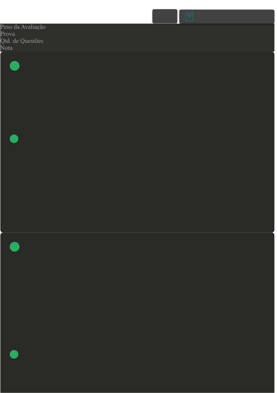 <p>11/03/24, 19:13 Avaliação da Disciplina</p><p>about:blank 1/12</p><p>Prova Impressa</p><p>GABARITO | Avaliação da Disciplina (Cod.:678424)</p><p>Peso da Avaliação 10,00</p><p>Prova 75748136</p><p>Qtd. de Questões 20</p><p>Nota 10,00</p><p>Considerando a variedade vocabular e de usos possíveis da linguagem, de acordo com os diferentes</p><p>contextos (acadêmico, jornalístico, poético, formal, informal etc.), imagine que quanto mais contato e</p><p>experiências o estudante tiver, mais conhecimento ele formará a partir dessas experiências com os</p><p>diferentes gêneros textuais e os seus contextos de uso.</p><p>Sobre a teoria que utiliza a explicação exposta, assinale a alternativa CORRETA:</p><p>A Teoria empirista.</p><p>B Teoria inatista.</p><p>C Teoria interacionista.</p><p>D Teoria social.</p><p>A Metodologia está relacionada com a prática docente e o desafio de adaptação e reelaboração das</p><p>escolhas metodológicas de acordo com práticas educativas particulares e específicas, as quais estão</p><p>diretamente relacionadas com o contexto. É por essa razão que se estuda metodologia, também, no</p><p>contexto da didática. Nesse âmbito, tem-se o envolvimento de dimensões que são essenciais e estão</p><p>inter-relacionadas.</p><p>Sobre essas dimensões, assinale a alternativa CORRETA:</p><p>A Social, teórica e política.</p><p>B Humana, técnica e político-social.</p><p>VOLTAR</p><p>A+ Alterar modo de visualização</p><p>1</p><p>2</p><p>11/03/24, 19:13 Avaliação da Disciplina</p><p>about:blank 2/12</p><p>C Prática, técnica e social.</p><p>D Ética, prática e político-social.</p><p>Os materiais didáticos podem ser classificados de diferentes formas. Podemos separá-los por formato,</p><p>recurso etc. Umas das classificações existentes os separa em estruturados e granulares. De acordo</p><p>com certas especificidades, é possível enquadrá-los em cada um desses tipos. Sobre o tipo de material</p><p>(estruturado e granular) e suas características, associe os itens, utilizando o código a seguir:</p><p>I- Estruturado.</p><p>II- Granular.</p><p>( ) É aquele que contempla algum aspecto do processo de ensino e de aprendizagem.</p><p>( ) É aquele que, em seu processo de produção, considera a sustentação e a organização de uma</p><p>proposta previamente elaborada de ensino e aprendizagem.</p><p>( ) Representa pequena estrutura que, ao ser combinada com outras, pode formar uma estrutura mais</p><p>ampla de material didático.</p><p>( ) O material é sistemático para atender a proposta de ensino e de aprendizagem.</p><p>( ) Coleções são exemplos deste tipo de material.</p><p>Assinale a alternativa que apresenta a sequência CORRETA:</p><p>A II – I – II – I – II.</p><p>B II – I – II – I – I.</p><p>C II – II – I – I – I.</p><p>D I – II – I – I – I.</p><p>Chomsky é um dos nomes de referência no campo das Teorias do desenvolvimento da</p><p>linguagem. O autor é reconhecido por mudar o objeto de estudo da linguística, ousando defender uma</p><p>teoria unificadora e inovando completamente no campo. De acordo com a abordagem proposta por</p><p>Chomsky, classifique V para as sentenças verdadeiras e F para as falsas:</p><p>FONTE: CHOMSKY, Noam. Novos horizontes no estudo da linguagem da mente. São Paulo, Unesp,</p><p>2005.</p><p>( ) Para Chomsky, existia uma insuficiência nas explicações dos empiristas; para ele, o conhecimento</p><p>linguístico da criança não pode ser delimitado em esquemas de aprendizado baseados em estímulo-</p><p>3</p><p>4</p><p>11/03/24, 19:13 Avaliação da Disciplina</p><p>about:blank 3/12</p><p>resposta.</p><p>( ) Para o pesquisador, existiria uma estrutura subjacente que poderia explicar porque uma criança de</p><p>2 anos consegue produzir e compreender frases que não tenham sido ditas por outros e ouvidas por</p><p>elas.</p><p>( ) Chomsky refuta a ideia de um dispositivo linguístico inato como constituinte dessa hipótese sobre</p><p>a aquisição da linguagem.</p><p>Assinale a alternativa que apresenta a sequência CORRETA:</p><p>A F – V – F.</p><p>B V – V – F.</p><p>C V – F – V.</p><p>D F – F – V.</p><p>Dentre as Teorias da linguagem, podemos citar: inatismo, empirismo e interacionismo. Cada uma</p><p>dessas correntes de pensamento é composta por princípios e parâmetros diferenciados. De acordo com</p><p>a teoria proposta, têm-se reflexões singulares e construção de conhecimento específico. Sobre os</p><p>elementos do inatismo, do empirismo e do interacionismo, associe os itens, utilizando o código a</p><p>seguir:</p><p>I- Inatismo.</p><p>II- Empirismo.</p><p>III- Interacionismo.</p><p>( ) Princípios racionais com o nascimento.</p><p>( ) Conhecimento absorvido pelos sentidos das pessoas.</p><p>( ) Movimento do conhecimento: dentro para fora.</p><p>( ) Conhecimentos pela experiência.</p><p>( ) O ambiente influencia na constituição das características humanas.</p><p>( ) Seres humanos são como folhas em branco.</p><p>Assinale a alternativa que apresenta a sequência CORRETA:</p><p>A II – I – III – II – II – III.</p><p>B I – II – I – III – III – II.</p><p>5</p><p>11/03/24, 19:13 Avaliação da Disciplina</p><p>about:blank 4/12</p><p>C II – III – I – III – II – III.</p><p>D I – II – II – III – II – III.</p><p>Conforme explica Candau, três dimensões fazem parte dos processos de ensino e de aprendizagem, as</p><p>quais são essenciais e estão inter-relacionadas: a dimensão humana, a dimensão técnica e a dimensão</p><p>político-social. Sobre elas, associe os itens, utilizando o código a seguir:</p><p>FONTE: CANDAU, Vera. Maria. A didática em questão. Petrópolis: Vozes, 2014.</p><p>I- Dimensão humana.</p><p>II- Dimensão técnica.</p><p>III- Dimensão político-social.</p><p>( ) Esta dimensão considera que os processos de ensinar e de aprender também estão situados em</p><p>contextos polític
