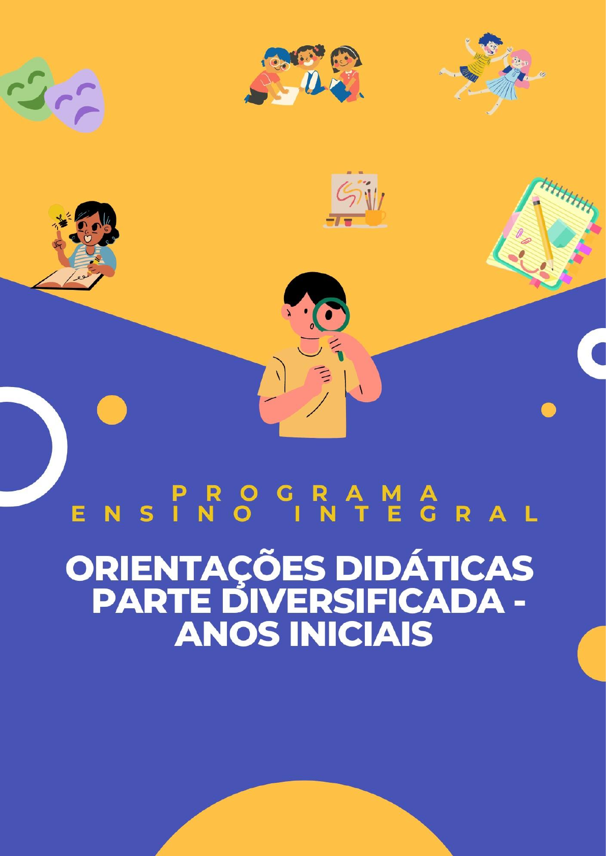 <p>GOVERNO DO ESTADO DE SÃO PAULO</p><p>SECRETARIA DE ESTADO DA EDUCAÇÃO</p><p>Coordenadoria Pedagógica - COPED</p><p>Departamento de Desenvolvimento Curricular e de Gestão Pedagógica – DECEGEP</p><p>Centro de Inovação - CEIN</p><p>Centro de Educação Infantil e Anos Iniciais – CEIAI</p><p>Centro de Anos Finais do Ensino Fundamental - CEFAF</p><p>ORIENTAÇÕES DIDÁTICAS</p><p>PARTE DIVERSIFICADA - ANOS INICIAIS</p><p>São Paulo</p><p>2023</p><p>Prezado(a) professor(a),</p><p>A Educação Integral, apresentada pela BNCC, é uma proposta formativa de</p><p>todos os segmentos escolares. Dessa forma, a "Educação Básica deve visar à</p><p>formação e ao desenvolvimento humano global, o que implica compreender a</p><p>complexidade e a não linearidade desse desenvolvimento". (BNCC, 2017, p. 14). A</p><p>Educação Integral "rompe as visões reducionistas que privilegiam a dimensão</p><p>intelectual (cognitiva) ou a dimensão afetiva" dicotomizadas; sendo assim, o</p><p>estudante é visto como um ser integral, sem priorizar apenas uma dimensão, mas</p><p>considerando suas dimensões1 intelectual, física, social, socioemocional e cultural,</p><p>para que o estudante possa exercer o protagonismo em sua vida.</p><p>Em 2012, a SEDUC/SP lançou as bases de um novo modelo de escola,</p><p>mediante a implantação do Programa Ensino Integral (PEI) em escolas de Ensino</p><p>Médio. Em 2013, este Programa foi ampliado para Escolas de Ensino Fundamental</p><p>Anos Finais e no ano de 2014, para os Anos Iniciais.</p><p>O Programa Ensino Integral define não apenas o tempo da jornada ampliada</p><p>dessas escolas, mas também a sua metodologia, o Modelo Pedagógico e o Modelo</p><p>de Gestão escolar. Esse modelo de escola propicia aos seus estudantes, além da</p><p>jornada ampliada, um currículo que contêm na sua parte diversificada composta por:</p><p>Língua Inglesa, Tecnologia e Inovação, Projeto de Convivência, Assembleia,</p><p>Linguagens Artísticas, Cultura do Movimento, Orientação de Estudos e Práticas</p><p>Experimentais, oportunidades para aprender e vivenciar práticas que irão apoiá-los</p><p>integralmente, com experiências em concepções democráticas, desenvolvimento e</p><p>a consolidação de conhecimentos, valores e atitudes.</p><p>Estas Orientações Didáticas têm como objetivo apoiar as unidades escolares</p><p>que atendem o segmento de Anos Iniciais que fazem parte do Programa,</p><p>possibilitando aos gestores e demais profissionais a construção de espaços de</p><p>formação e práticas pedagógicas, a partir das metodologias do Programa, bem como</p><p>apoiar os professores no planejamento e execução das aulas dos componentes da</p><p>Parte Diversificada da Matriz Curricular.</p><p>Coordenadoria Pedagógica - COPED</p><p>Secretaria da Educação do Estado de São Paulo</p><p>1 Currículo Paulista. Disponível em: https://efape.educacao.sp.gov.br/curriculopaulista/wp-</p><p>content/uploads/2019/09/curriculo-paulista-26-07.pdf p.28. Acesso em: 04 jan. 2023</p><p>https://efape.educacao.sp.gov.br/curriculopaulista/wp-content/uploads/2019/09/curriculo-paulista-26-07.pdf</p><p>https://efape.educacao.sp.gov.br/curriculopaulista/wp-content/uploads/2019/09/curriculo-paulista-26-07.pdf</p><p>SUMÁRIO</p><p>Concepções do Programa Ensino Integral ................................................................ 4</p><p>Língua Inglesa ........................................................................................................ 13</p><p>Projeto de Convivência............................................................................................ 13</p><p>Tecnologia e Inovação ........................................................................................... 14</p><p>Assembleia ............................................................................................................. 15</p><p>Orientação de Estudos ........................................................................................... 27</p><p>Práticas Experimentais ............................................................................................ 56</p><p>Linguagens Artísticas ............................................................................................. 87</p><p>Cultura do Movimento .......................................................................................... 109</p><p>Referências bibliográficas. ................................................................................... 134</p><p>4</p><p>CONCEPÇÕES DO PROGRAMA ENSINO INTEGRAL</p><p>O Programa parte da concepção de que a educação ocorre nas diversas</p><p>dimensões de desenvolvimento da pessoa, envolvendo os aspectos físicos,</p><p>cognitivos, socioemocionais e culturais. Desse modo, todas as escolas do PEI</p><p>pautam-se no desenvolvimento de um ideal formativo que deve proporcionar a</p><p>formação de estudantes com conhecimentos, procedimentos, valores e habilidades</p><p>dirigidas ao pleno desenvolvimento da pessoa humana e seu preparo para o</p><p>exercício da cidadania.</p><p>Para consolidar a formação integral, é importante incentivar o</p><p>desenvolvimento das potencialidades dos estudantes, para isso o Programa se</p><p>utiliza do Modelo Pedagógico orientado pelos seguintes princípios: os Quatro Pilares</p><p>da Educação, a Pedagogia da Presença, a Educação Interdimensional e o</p><p>Protagonismo Infantil.</p><p>Quatro Pilares da Educação para o Século XXI</p><p>Segundo essa concepção, a educação está fundamentada em quatro pilares:</p><p>“aprender a conhecer”, “aprender a fazer”, “aprender a conviver” e “aprender a ser”.</p><p>No Programa Ensino Integral, o desenvolvimento das competências</p><p>associadas aos Quatro Pilares da Educação é um dos princípios para a formação</p><p>integral dos estudantes. São elas:</p><p>● aprender a conhecer: competência cognitiva (domínio da leitura, da