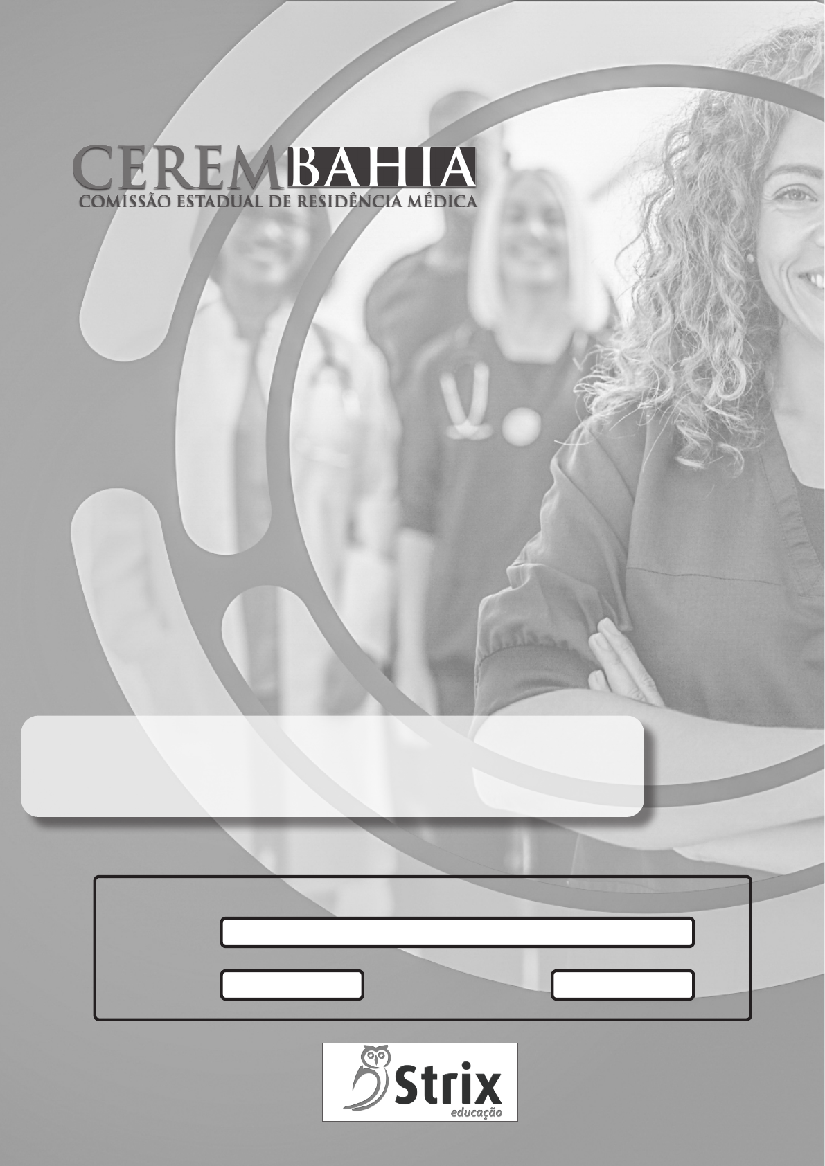 <p>DADOS DO CANDIDATO</p><p>NOME:</p><p>INSCRIÇÃO: CADEIRA:</p><p>Processo Seletivo Unificado</p><p>de Residência Médica Bahia 2021</p><p>► PROVA PARA ESPECIALIDADES PEDIÁTRICAS</p><p>COMISSÃO ESTADUAL DE RESIDÊNCIA MÉDICA – CEREM BAHIA</p><p>Processo Seletivo Unificado</p><p>de Residência Médica Bahia 2021</p><p>• Este Caderno de Prova contém 45 (quarenta e cinco) questões objetivas de múltipla escolha.</p><p>• Cada questão apresenta quatro alternativas de resposta, identificadas por A, B, C e D, sendo apenas uma</p><p>correta.</p><p>• Antes de iniciar a Prova, confira a sequência das páginas e da numeração das questões do seu Caderno</p><p>de Prova. Se identificar qualquer equívoco, informe-o imediatamente ao aplicador da prova.</p><p>• Leia atentamente as orientações de cada questão.</p><p>• Utilize caneta de tinta azul ou preta, fabricada em material transparente.</p><p>• As respostas das questões objetivas de múltipla escolha devem ser registradas na Folha de Respostas,</p><p>conforme o exemplo:</p><p>• Assine no espaço próprio da Folha de Respostas. Folha de Respostas identificada fora desse espaço</p><p>implicará na anulação da sua Prova e sua consequente eliminação do Processo Seletivo. Questão com</p><p>resposta rasurada ou com mais de uma alternativa marcada ou marcada a lápis não será considerada.</p><p>• O tempo total para realização desta prova é de três horas, sendo o tempo mínimo de permanência do</p><p>candidato em sala de prova de uma hora e trinta minutos. A saída da sala de prova com o Caderno de Prova</p><p>só será permitida nos últimos trinta minutos finais do período de realização da prova.</p><p>• Ao concluir sua Prova, sinalize para o aplicador de prova, aguarde para entregar a Folha de Respostas,</p><p>cumprindo os procedimentos por ele recomendados.</p><p>CEREM BAHIA - PROCESSO SELETIVO UNIFICADO DE RESIDÊNCIA MÉDICA BAHIA 2021 - ESPECIALIDADES PEDIÁTRICAS 1</p><p>Indique o agente etiológico mais frequente desta doença.</p><p>(Pontuação: 0,3 pontos)</p><p>A) Pseudomonas aeruginosa.</p><p>B) Streptococos viridans.</p><p>C) Legionella pneumophila.</p><p>D) Chlamydia psittaci.</p><p>Situação-Problema: Questões de 1 a 3</p><p>Especifique o principal exame a ser solicitado para</p><p>confirmar o diagnóstico. (Pontuação: 0,3 pontos)</p><p>A) Ecocardiograma.</p><p>B) Eletrocardiograma.</p><p>C) Cintilografia miocárdica.</p><p>D) Arteriografia.</p><p>Menina, 12 anos de idade, chega ao Pronto</p><p>Atendimento com relato de febre há 10 dias,</p><p>apresentando mialgia generalizada, artralgias</p><p>e palpitações. Ao exame, REG, PR: 110bpm;</p><p>FR: 22ipm; Temperatura: 39.2ºC; PA: 110x60mmHg.</p><p>Ausculta mostra bulhas taquicárdicas, normofonéticas,</p><p>com sopro sistólico regurgitante em FM. Ausculta</p><p>respiratória sem alterações. Fígado palpável</p><p>a 2cm do rebordo costal direito. Polo de baço</p><p>palpável. Extremidades apresentam pequenas lesões</p><p>hemorrágicas, indolores, em região palmares,</p><p>bilateralmente.</p><p>Diante do caso descrito,</p><p>Identifique o esquema terapêutico de escolha (inicial) na</p><p>situação apresentada. (Pontuação: 0,4 pontos)</p><p>A) Ceftriaxona (IV) por 2 semanas.</p><p>B) Penicilina G (IV) por 4 semanas.</p><p>C) Penicilina G (IV) + Gentamicina (IV) por 2 semanas.</p><p>D) Penicilina G (IV) + Ceftriaxcona (IV) + Vancomicina (IV)</p><p>por 4 semanas.</p><p>PROVA COM QUESTÕES OBJETIVAS</p><p>Questões de 1 a 45</p><p>Para responder a essas questões, identifique APENAS UMA ÚNICA alternativa correta e marque a letra correspondente na Folha de RespostasInstrução</p><p>Indique a principal suspeita diagnóstica com base nos</p><p>dados apresentados. (Pontuação: 0,3 pontos)</p><p>A) Hepatite crônica.</p><p>B) Leismaniose visceral.</p><p>C) Doença hepática autoimune.</p><p>D) Esquistossomose hepatoesplênica.</p><p>Identifique o exame considerado padrão ouro para</p><p>confirmação diagnóstica da principal suspeita.</p><p>(Pontuação: 0,4 pontos)</p><p>A) Parasitológico de fezes.</p><p>B) Pesquisa de Anticorpos.</p><p>C) Anátomo-patológico pós-biópsia.</p><p>D) Pesquisa direta em material de medula óssea.</p><p>Especifique a droga preferencial, disponível no SUS,</p><p>para o tratamento de pacientes com essa doença.</p><p>(Pontuação: 0,3 pontos)</p><p>A) Antimoniais pentavalentes.</p><p>B) Interferon Gama.</p><p>C) Oxaminiquine.</p><p>D) Pentamidina.</p><p>Menina, 7 anos de idade, é regulada do</p><p>interior para internamento, com quadro de febre</p><p>há, aproximadamente, 40 dias, fraqueza,</p><p>palidez, perda do apetite e do peso, diarreia e</p><p>aumento do volume abdominal. Ao exame, está</p><p>hipoativa, febril. Ausculta cardíaca com</p><p>bulhas rítmicas, taquicárdicas e campos</p><p>pulmonares com murmúrios vesiculares</p><p>rudes. Há hepatoesplenomegalia. Os exames</p><p>laboratoriais mostram hemoglobina: 8.2g/dL;</p><p>leucócitos: 1.080/mm³ (linfócitos 60%;</p><p>segmentados 35%; 1% bastões; 2% eosinófilos);</p><p>plaquetas: 50.000/mm³; VHS: 70%. Albumina:</p><p>2,5g/dL; Globulina: 3,1/dL.</p><p>Situação-Problema: Questões de 4 a 6</p><p>CEREM BAHIA - PROCESSO SELETIVO UNIFICADO DE RESIDÊNCIA MÉDICA BAHIA 2021 - ESPECIALIDADES PEDIÁTRICAS2</p><p>Considerando as informações do caso e os conhecimentos</p><p>de epidemiologia, indique a principal suspeita diagnóstica.</p><p>(Pontuação: 0,3 pontos)</p><p>A) Asma brônquica.</p><p>B) Broncopneumonia.</p><p>C) Bronquiolite Aguda Viral.</p><p>D) Aspiração de secreção respiratória.</p><p>Situação-Problema: Questões de 10 a 12</p><p>Tendo providenciado oxigenoterapia, indique a(s)</p><p>classe(s) da(s) droga(s) e a(s) via(s) de administração</p><p>recomendada(s) para essa criança, como primeira escolha.</p><p>(Pontuação: 0,4 pontos)</p><p>A) Corticoide por via oral.</p><p>B) Corticoide por via intravenosa.</