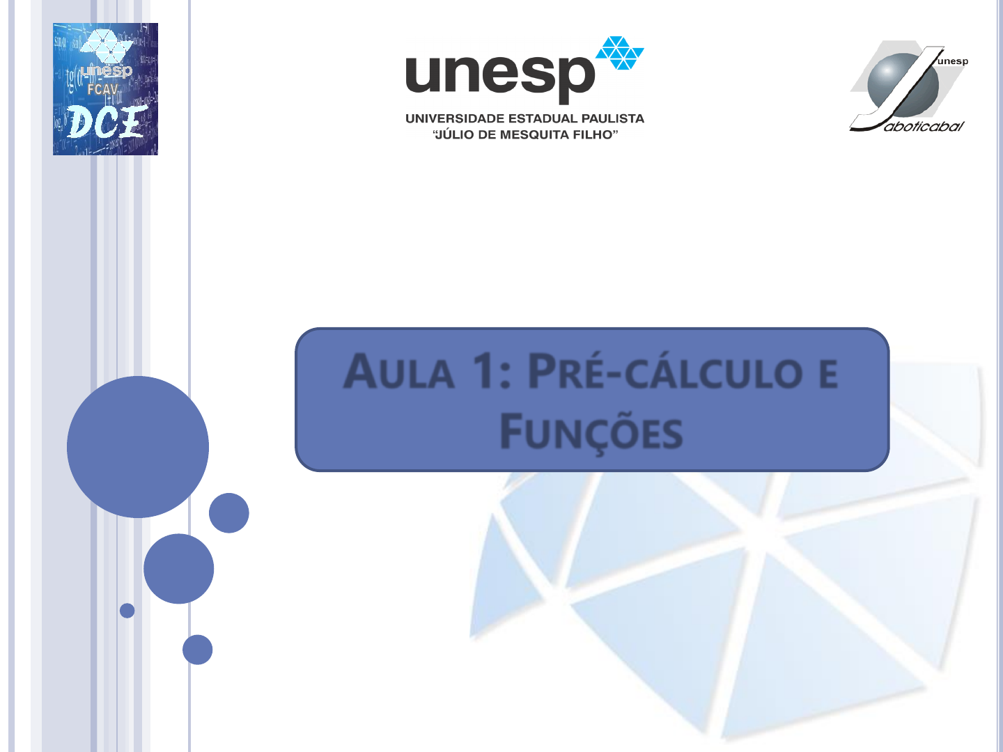 <p>MATEMÁTICA I</p><p>AULA 1: PRÉ-CÁLCULO E</p><p>FUNÇÕES</p><p>Prof. Dr. Nelson J. Peruzzi</p><p>Profa. Dra. Amanda L. P. M. Perticarrari</p><p>Parte 1</p><p>• Conjuntos numéricos</p><p>• A reta real</p><p>• Intervalos Numéricos</p><p>• Valor absoluto de um número</p><p>• Potências</p><p>• Produtos notáveis e binômio de Newton</p><p>Parte 2</p><p>• Função</p><p>• Variáveis</p><p>• Traçando Gráficos</p><p>• Domínio e Imagem</p><p>• Família de Funções</p><p>• Funções Polinomiais</p><p>• Funções Exponenciais e Logarítmicas</p><p>• Funções Trigonométricas</p><p>CONJUNTOS NUMÉRICOS</p><p>São, em geral, subconjuntos de ℝ, o conjunto dos números reais.</p><p> Números naturais ℕ: São os números empregados em processos de contagem.</p><p> Exemplos: 0,1, 2, 3, 4,...</p><p> Números Inteiros ℤ : São os números empregados em processos de contagem,</p><p>acrescidos de seus opostos.</p><p> Exemplos: ..., −3, −2, −1, 0, 1, 2, 3, ...</p><p> Números racionais ℚ : É o conjunto de todos os números que podem ser</p><p>escritos como quocientes</p><p>𝑎</p><p>𝑏</p><p>, 𝒃 ≠ 𝟎.</p><p> Exemplos:−</p><p>1</p><p>4</p><p>, −</p><p>1</p><p>18</p><p>,</p><p>1</p><p>2</p><p>,</p><p>7</p><p>10</p><p>,</p><p>10</p><p>50</p><p>,</p><p>20</p><p>20</p><p>, ...</p><p> Números irracionais ℚ′ ou I : Todos os números reais que não são racionais</p><p> Exemplos: 𝜋 = 3,141592653589793…, 2 = 1,414213562373095… ,</p><p>Exemplo 1.1 Verifique a qual ou quais conjuntos numéricos os</p><p>números abaixo pertencem</p><p>a) −7 b) 0,7 c) 7 d)</p><p>𝟕</p><p>𝟎</p><p>e) −7 f)</p><p>0</p><p>7</p><p>OBS.: 7 = 2,645751311064591</p><p>ℂ</p><p>ℝ ℚ</p><p>I</p><p>ℤ ℕ</p><p>CONJUNTOS NUMÉRICOS</p><p> Números reais podem ser representados por pontos em</p><p>uma reta 𝑟, tal que</p><p> a cada número real 𝑎 corresponda exatamente a um ponto</p><p>sobre a reta 𝑟, e reciprocamente.</p><p>Exemplo. Represente o conjunto 3; −5;</p><p>2</p><p>3</p><p>; 5; −1,5; −𝜋 sobre uma reta</p><p>real.</p><p>ℝ</p><p>A RETA REAL</p><p> O intervalo fechado 𝑎, 𝑏 é o conjunto de todos números</p><p>reais 𝑥 tais que 𝑎 ≤ 𝑥 ≤ 𝑏.</p><p>𝑎, 𝑏 = 𝑥 ∈ ℝ: 𝑎 ≤ 𝑥 ≤ 𝑏</p><p> Costumamos simplificar a notação acima como {x : a ≤ x ≤ b},</p><p>𝑎, 𝑏 = 𝑥: 𝑎 ≤ 𝑥 ≤ 𝑏</p><p>ficando entendido que 𝑥 ∈ ℝ.</p><p>INTERVALOS NUMÉRICOS</p><p> O intervalo aberto e os intervalos semi-abertos são os conjuntos:</p><p> O intervalo infinito −∞,∞ é toda a reta real ℝ.</p><p> Um intervalo semi-infinito pode ser aberto ou fechado.</p><p>INTERVALOS NUMÉRICOS</p><p> Os intervalos abertos e fechados são descritos por desigualdades.</p><p> Representação:</p><p> Generalizando, para todo 𝑐 ∈ ℝ,</p><p>Representação:</p><p> Nesse caso o intervalo 𝑎, 𝑏 = 𝑐 − 𝑟, 𝑐 + 𝑟 , onde 𝑐 =</p><p>𝑎+𝑏</p><p>2</p><p>e 𝑟 =</p><p>𝑏−𝑎</p><p>2</p><p>INTERVALOS NUMÉRICOS</p><p>Exemplo 2.2 (Descrevendo desigualdade com intervalo)</p><p>Descreva o conjunto 𝑆 = 𝑥:</p><p>1</p><p>2</p><p>𝑥 − 3 > 4 em termos de intervalos.</p><p>Solução. É mais fácil considerar primeiro a desigualdade oposta</p><p>1</p><p>2</p><p>𝑥 − 3 ≤ 4, assim</p><p>1</p><p>2</p><p>𝑥 − 3 ≤ 4 ⇒ −4 ≤</p><p>1</p><p>2</p><p>𝑥 − 3 ≤ 4 ⇒ −4 + 3 ≤</p><p>1</p><p>2</p><p>𝑥 − 3 + 3 ≤ 4 + 3</p><p>−1 ≤</p><p>1</p><p>2</p><p>𝑥 ≤ 7 ⇒ −1 ∙ 2 ≤</p><p>1</p><p>2</p><p>𝑥 ∙ 2 ≤ 7 ∙ 2 ⇒ −2 ≤ 𝑥 ≤ 14</p><p> Note que</p><p>1</p><p>2</p><p>𝑥 − 3 ≤ 4 está satisfeito quando 𝑥 ∈ −2, 14 .</p><p> O conjunto S é o complementar, consistindo em todos números x que não</p><p>estão em −2, 14 , ou seja, 𝑺 = −∞,−𝟐 ∪ 𝟏𝟒,∞</p><p> Representação.</p><p>INTERVALOS NUMÉRICOS</p><p>O valor absoluto de um número real 𝑥, denotado por 𝑥 ,</p><p>é definido por:</p><p>𝒙 = 𝐝𝐢𝐬𝐭â𝐧𝐜𝐢𝐚 𝐝𝐚 𝐨𝐫𝐢𝐠𝐞𝐦 =</p><p>𝒙, 𝐬𝐞 𝒙 ≥ 𝟎</p><p>−𝒙, 𝐬𝐞 𝒙 < 𝟎</p><p> Representação</p><p> Distância entre dois números reais</p><p> A distância entre dois números reais 𝑎 e b é |b − 𝑎 |, que é o</p><p>comprimento do segmento de reta que liga 𝑎 a b</p><p>|𝑥|</p><p>𝑥</p><p>VALOR ABSOLUTO DE UM NÚMERO</p><p>Observação. 𝑎 + 𝑏 não é igual a 𝑎 + 𝑏</p><p> A menos que 𝑎 e 𝑏 tenham o mesmo sinal ou pelo menos</p><p>um dos dois for zero.</p><p> Se a e b tiverem sinais opostos, então</p><p>𝑎 + 𝑏 < 𝑎 + 𝑏</p><p>• Por exemplo,</p><p> |2 + 5| = |2| + |5|</p><p> |−2 + 5| = 3 < 7 =|−2| + |5| .</p><p>• Em todo caso, |a + b| nunca é maior do que |a| + |b|</p><p>e assim temos a importante desigualdade triangular:</p><p>VALOR ABSOLUTO DE UM NÚMERO</p><p>Definição. Se 𝑎 ≠ 0 e 𝑛 ∈ ℕ , então a expressão 𝑎𝑛 é</p><p>chamada de potência na base 𝑎 e expoente 𝑛.</p><p> Note que: 𝒂</p><p>𝟎 = 𝟏</p><p>𝒂𝒏+𝟏 = 𝒂 ∙ 𝒂𝒏</p><p> Exemplo:</p><p>100 = 1</p><p>101 = 10 ∙ 100 = 10</p><p>102 = 10 ∙ 101 = 100</p><p>103 = 10 ∙ 102 = 1.000</p><p>104 = 10 ∙ 103 = 10.000</p><p>POTÊNCIAS</p><p> Propriedades: Se 𝑎 ≠ 0</p><p>e 𝑚, 𝑛 ∈ ℕ então:</p><p>i) 𝑎𝑚 ∙ 𝑎𝑛 = 𝑎𝑚+𝑛</p><p>ii)</p><p>𝑎𝑚</p><p>𝑎𝑛 = 𝑎𝑚−𝑛</p><p>iii) 𝑎𝑚 𝑛 = 𝑎𝑚∙𝑛</p><p>iv) 𝑎 ∙ 𝑏 𝑛 = 𝑎𝑛 ∙ 𝑏𝑛</p><p>POTÊNCIAS</p><p> Potência com expoente negativo</p><p>Se 𝑎 ≠ 0 e 𝑛 ∈ ℕ , então 𝑎−𝑛 =</p><p>1</p><p>𝑎𝑛</p><p> Exemplo: 10−1 =</p><p>1</p><p>10</p><p>= 0,1; 10−2 =</p><p>1</p><p>10∙101 =</p><p>1</p><p>100</p><p>= 0,01</p><p>10−3 =</p><p>1</p><p>10∙102 =</p><p>1</p><p>1.000</p><p>= 0,001; ...</p><p> Potência fracionária</p><p>Se 𝑎 > 0 e 𝑚, 