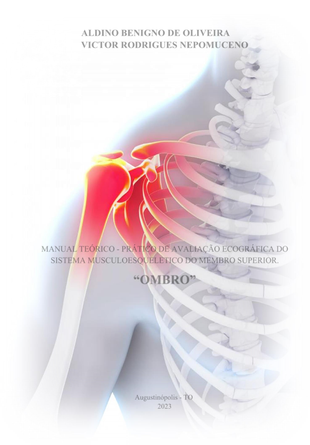 <p>ALDINO BENIGNO DE OLIVEIRA</p><p>VICTOR RODRIGUES NEPOMUCENO</p><p>MANUAL TEÓRICO - PRÁTICO DE AVALIAÇÃO ECOGRÁFICA DO</p><p>SISTEMA MUSCULOESQUELETICO DO MEMBRO SUPERIOR.</p><p>“OMBRO”</p><p>Augustinópolis - TO</p><p>2023</p><p>ORGANIZADORES</p><p>ALDINO BENIGNO DE OLIVEIRA</p><p>VICTOR RODRIGUES NEPOMUCENO</p><p>MANUAL TEÓRICO - PRÁTICO DE AVALIAÇÃO ECOGRÁFICA DO</p><p>SISTEMA MUSCULOESQUELETICO DO MEMBRO SUPERIOR.</p><p>“OMBRO”</p><p>Augustinópolis - TO</p><p>2023</p><p>ORGANIZADORES</p><p>Aldino Benigno de Oliveira</p><p>Graduado em Medicina pela Universidade de Oriente (Venezuela) em 2003 com diploma</p><p>revalidado Pela Universidade Federal do Mato Grosso. Título de especialista em</p><p>ultrassonografia geral pelo Colégio Brasileiro de Radiologia-CBR/AMB, Habilitação em</p><p>ultrassonografia geral pela sociedade brasileira de ultrassonografia - SBUS e Federação</p><p>Internacional Latino Americana em ecografia- FISUSAL. Título de atuação em Mamografia</p><p>pelo colégio Brasileiro de Radiologia CBR/AMB e Título de atuação em ecografia vascular</p><p>pelo Colégio Brasileiro de Radiologia CBR/AMB. Pós-graduação em ecografia Vascular pela</p><p>FATESA/EURP. Pós-graduado em ultrassonografia em medicina fetal pela FATESA/EURP,</p><p>Pós-graduação em medicina interna pela FATESA/EURP e pós-graduação Latu Sensu em</p><p>cardiologia clínica pela SOET - Sociedade Nacional de Educação Ciência e Tecnologia (PR).</p><p>Mestrando em ciência da saúde pela Universidade federal do Tocantins e Professor voluntário</p><p>do curso de medicina da Universidade estadual do Tocantins (UNITINS).</p><p>Victor Rodrigues Nepomuceno</p><p>Possui Bacharelado em Fisioterapia, pela Universidade Ibirapuera (2000); Mestrado em</p><p>Ciências Morfofuncionais pela Universidade de São Paulo - USP (2004); Doutorado em</p><p>Ciências pela Universidade de São Paulo - Ribeirão Preto - USP (2016). É Professor Doutor do</p><p>Curso de Medicina e docente permanente do Programa de Pós-graduação em Ciências da Saúde</p><p>da Universidade Federal do Tocantins. Tem experiência na área de Morfologia, com ênfase em</p><p>Anatomia Humana, Neuroanatomia e Eletromiografia Cinesiológica do Sistema</p><p>Musculoesquelético.</p><p>APRESENTAÇÃO</p><p>Bem-vindos à apresentação do Manual Teórico-Prático de Avaliação Ecográfica</p><p>Musculoesquelética do membro superior. “OMBRO”. Este manual é uma referência</p><p>indispensável para profissionais da área de saúde interessados em aprimorar suas habilidades</p><p>na avaliação ecográfica do complexo musculoesquelético do ombro. Nesta apresentação,</p><p>exploraremos as principais características e benefícios dessa obra essencial. O ombro é uma</p><p>articulação complexa que desempenha um papel crucial na mobilidade e funcionalidade do</p><p>membro superior. Avaliar as estruturas musculoesqueléticas dessa região é fundamental para o</p><p>diagnóstico e tratamento eficaz de lesões e condições dolorosas. Nesse contexto o Manual</p><p>Teórico-Prático de Avaliação Ecográfica Musculoesquelética do membro superior. “OMBRO”,</p><p>oferece um guia completo e atualizado para a avaliação ecográfica dessa região específica com</p><p>uma abordagem abrangente que combina teoria e prática, permitindo aos leitores adquirirem</p><p>um conhecimento aprofundado sobre a avaliação ecográfica do ombro.</p><p>Alguns dos aspectos incluem: Anatomia e fisiologia do ombro: Uma revisão detalhada</p><p>das estruturas anatômicas e seu funcionamento específico no ombro. Princípios da</p><p>ultrassonografia musculoesquelética: Explicações sobre os princípios físicos e técnicas</p><p>utilizadas na avaliação ecográfica do ombro. Avaliação ecográfica de estruturas específicas:</p><p>Uma análise detalhada das estruturas musculares, tendões, ligamentos e outras estruturas</p><p>relevantes do ombro, explorando sua avaliação ecográfica de forma sistêmica. Lesões e</p><p>patologias comuns: Uma visão geral das lesões e patologias mais comuns que tiveram o</p><p>complexo musculoesquelético do ombro, destacando seus aspectos ecográficos distintos.</p><p>Portanto, não hesite em adquirir o Manual Teórico-Prático de Avaliação Ecográfica</p><p>Musculoesquelética do membro superior. “Ombro” como uma fonte de referência indispensável</p><p>para capacitá-lo na avaliação ecográfica do ombro, permitindo um diagnóstico mais preciso,</p><p>um tratamento mais eficaz e, em última análise, uma melhoria na qualidade de vida dos</p><p>pacientes.</p><p>LISTA DE FIGURAS</p><p>FIGURA 1 – Anatomia do Ombro...........................................................................................11</p><p>FIGURA 2 – Articulação do Ombro........................................................................................11</p><p>FIGURA 3 – O ligamento transverso do úmero une os tubérculos maior e menor,</p><p>convertendo o sulco intertubercular em um canal por onde passa o tendão da cabeça longa do</p><p>músculo bíceps braquial (A1) que se insere no tubérculo supraglenoidal da escápula. Porção</p><p>longa do bíceps (A)...................................................................................................................16</p><p>FIGURA 4 – Aspecto normal do tendão da cabeça longa do bíceps braquial, corte</p><p>transversal.................................................................................................................................17</p><p>FIGURA 5 – Rotura total do tendão da cabeça longa do bíceps braquial, corte longitudinal e</p><p>transversal (sinal do Popeye) ...................................................................................................17</p><p>FIGURA 6 – Sinal de Popeye I................................................................................................17</p><p>FIGURA 7 – Sinal 