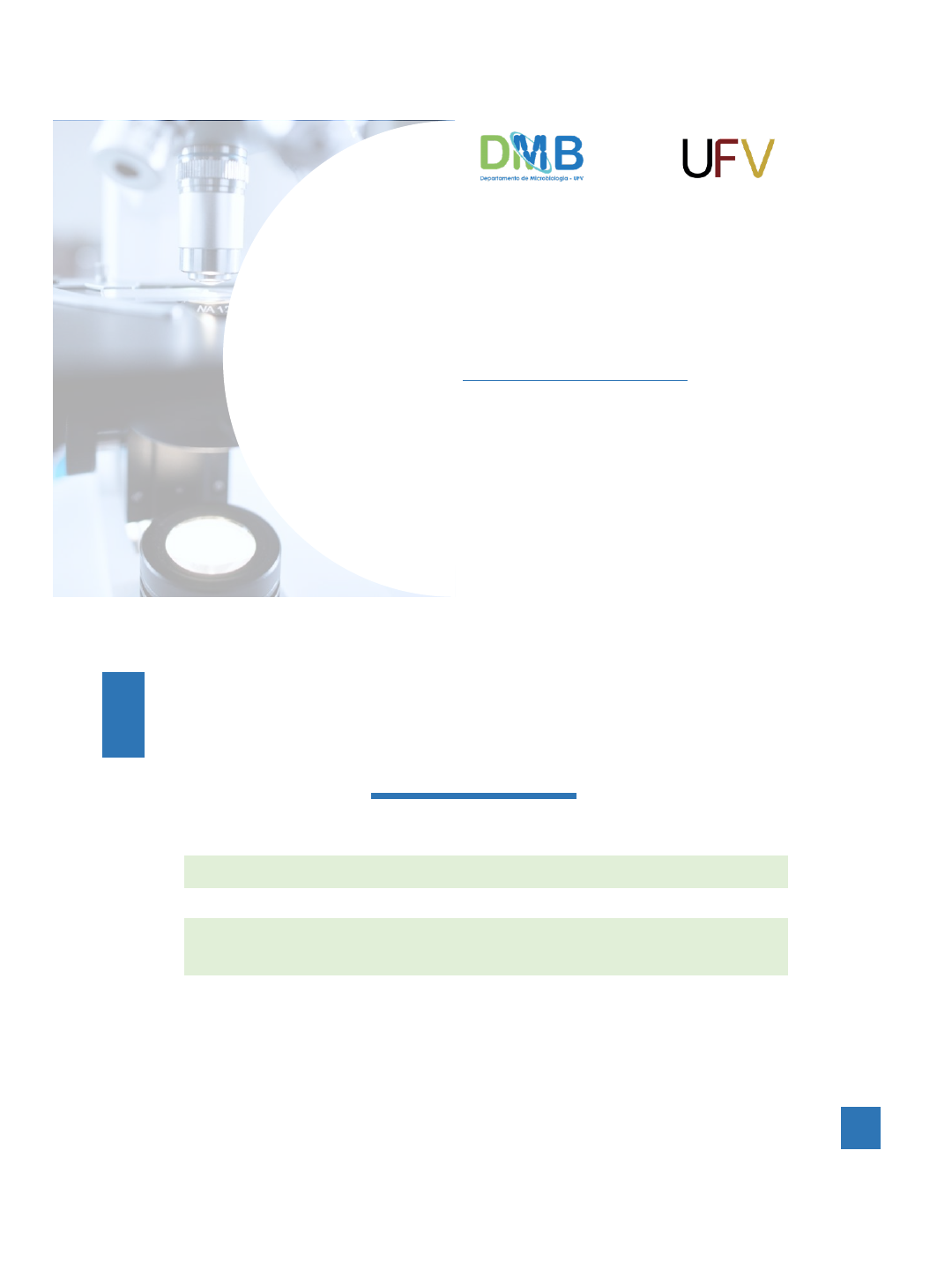 <p>10/26/2023</p><p>1</p><p>Titulação de Bacteriófagos</p><p>2</p><p>Titulação de bacteriófagos</p><p>Objetivos:</p><p>1. Determinar o título de bacteriófagos em uma amostra</p><p>2. Verificar o efeito da infecção viral por meio da formação</p><p>de placas de lise</p><p>10/26/2023</p><p>2</p><p>3</p><p>Titulação de Bacteriófagos</p><p>Procedimento experimental:</p><p>Obtenção dos colífagos</p><p>4</p><p>10/26/2023</p><p>3</p><p>5</p><p>Titulação de Bacteriófagos</p><p>Formação de placas de lise:</p><p>6</p><p>Titulação de Bacteriófagos</p><p>Procedimento experimental:</p><p>Mistura/Incubação/Plaqueamento</p><p>Contagem de</p><p>placas de lise</p><p>Sobrecamada em meio sólido</p><p>10/26/2023</p><p>4</p><p>BACTERIÓFAGOS</p><p>0,1 mL0,1 mL0,1 mL</p><p>0,1 mL</p><p>0,1 mL</p><p>20 minutos, 37 °C</p><p>10-1 10-2 10-3 10-4</p><p>10-5</p><p>BACTERIÓFAGO +</p><p>BACTÉRIAS</p><p>0,2 mL</p><p>BACTERIÓFAGO +</p><p>BACTÉRIAS</p><p>0,2 mL</p><p>ÁPÓS A INCUBAÇÃO DE 20 MINUTOS, REALIZAR O PLAQUEAMENTO:</p><p>Meio semi-sólido</p><p>Fundido</p><p>Meio semi-sólido</p><p>(sobrecamada)</p><p>Meio sólido</p><p>Obs.: A mistura de</p><p>bacteriófagos e bactérias fica</p><p>espalhada na sobre-camada de</p><p>meio semi-sólido.</p><p>10/26/2023</p><p>5</p><p>9</p><p>Colônias isoladas</p><p>de bactérias</p><p>Crescimento confluente de bactérias</p><p>Placas de lise</p><p>confluentes</p><p>Placas de lise</p><p>isoladas</p><p>1010</p><p>Crescimento confluente de bactérias,</p><p>com placas de lise</p><p>Isoladas.</p><p>Crescimento confluente de bactérias,</p><p>na ausência de placas de lise.</p><p>10/26/2023</p><p>6</p><p>1111</p><p>Placas de lise</p><p>confluentes</p><p>Placas de lise</p><p>isoladas</p><p>12</p><p>Titulação de Bacteriófagos</p><p>Determinação do título (UFP/mL) - Cálculo</p><p>TÍTULO = Nº de placas de lise x FD</p><p>Volume da alíquota (mL)</p><p>Nº de placas de lise entre 25 e 300</p><p>10/26/2023</p><p>7</p><p>RESULTADOS EXPERIMENTAIS</p><p>14</p><p>Determinação do título - Exemplo</p><p>TÍTULO = número de placas de lise x fator de diluição</p><p>volume da alíquota plaqueada (mL)</p><p>Volume plaqueado foi de 0,1mL.</p><p>Diluição 10-1 : incontável</p><p>Diluição 10-2: > 300 placas</p><p>Diluição 10-3: 132 placas</p><p>Diluição 10-4: 39 placas</p><p>Diluição 10-5: 3 placas</p><p>10/26/2023</p><p>8</p><p>15</p><p>Titulação de Bacteriófagos</p><p>TÍTULO = número de placas de lise x fator de diluição</p><p>volume da alíquota plaqueada (mL)</p><p>Volume plaqueado foi de 0,1mL.</p><p>10-1 : incontável</p><p>10-2: > 300 placas</p><p>10-3: 132 placas</p><p>10-4: 39 placas</p><p>10-5: 3 placas</p><p>TÍTULO = 132 x 103</p><p>0,1 mL</p><p>TÍTULO = 1,3 x 106 UFP/mL</p><p>Obrigado (a)!</p><p>Slide 1: Titulação de Bacteriófagos</p><p>Slide 2</p><p>Slide 3</p><p>Slide 4</p><p>Slide 5</p><p>Slide 6</p><p>Slide 7</p><p>Slide 8</p><p>Slide 9</p><p>Slide 10</p><p>Slide 11</p><p>Slide 12</p><p>Slide 13: RESULTADOS EXPERIMENTAIS</p><p>Slide 14</p><p>Slide 15</p><p>Slide 16</p>